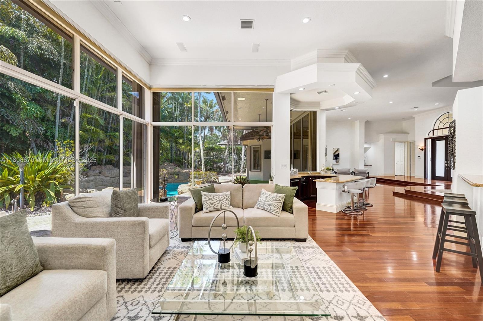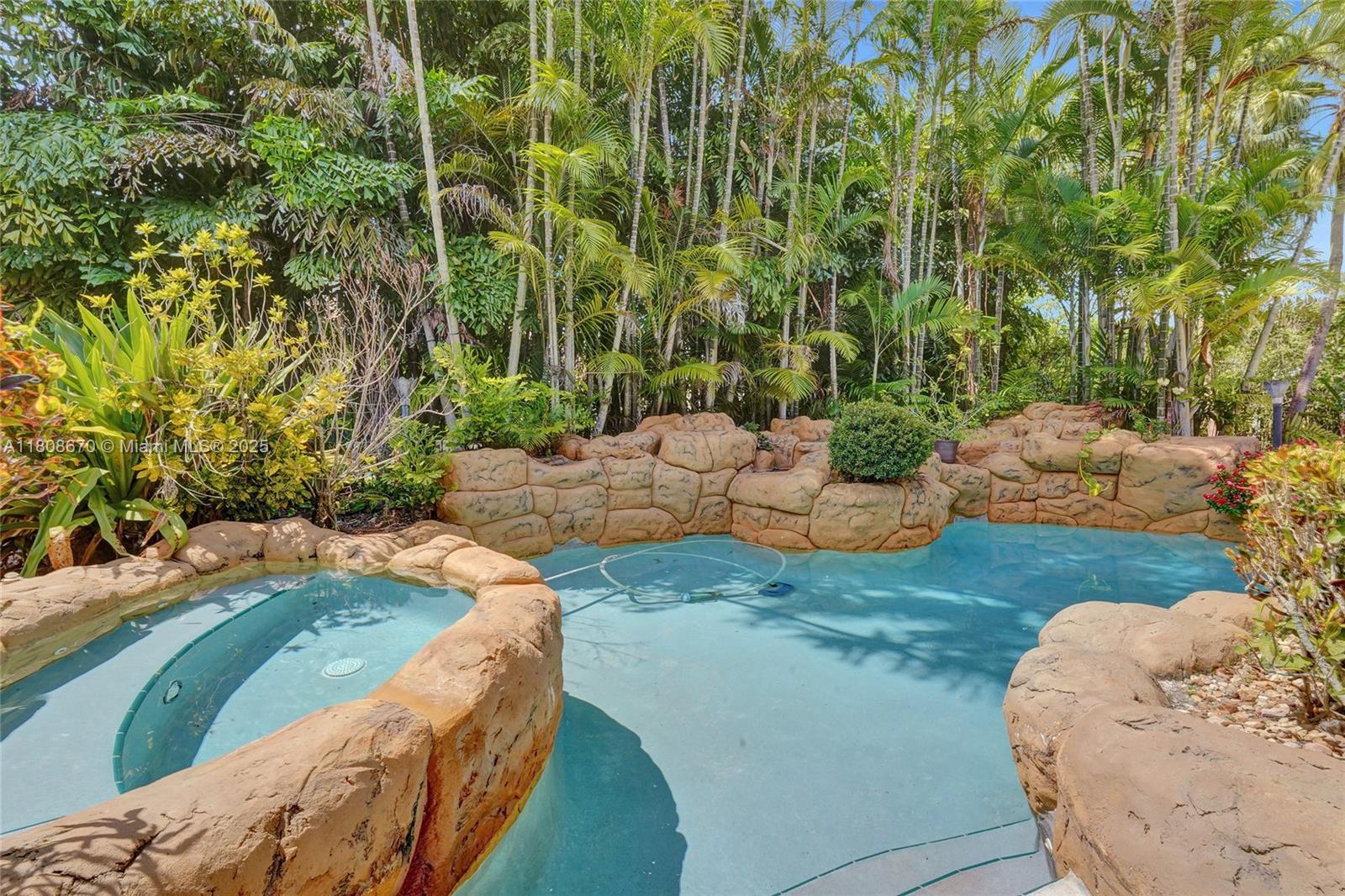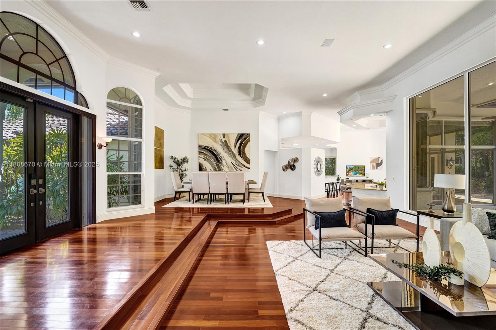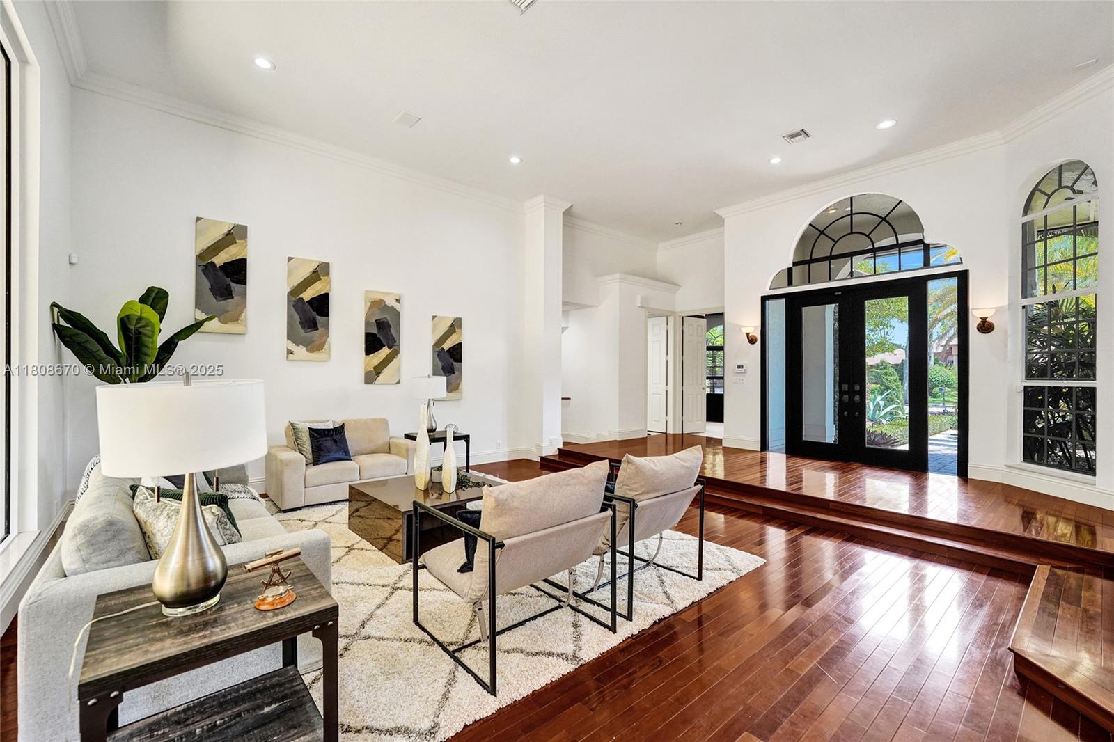 Set on beautifully landscaped 14418 sqft lot, this custom 3,818 sqft residence offers 2020 roof, paver driveway, and accordion shutters. Inside, rich wood flooring, fresh paint, and refined crown molding. At heart of the home, chef’s kitchen showcasing white cabinetry, granite countertops, Sub-Zero refrigerator, and Thermador cooking appliances. Expansive primary suite is a retreat with tray ceilings, dual closets, spa-inspired bath, and direct access to backyard. Three additional bedrooms, private office, and 3.2 baths ensure ample space for family and guests, while thoughtful upgrades: LED lighting, cabana bath, and epoxy-finished garage. Outside, unwind in your own paradise: saltwater pool and spa framed by travertine deck. Perfect blend of luxury, function, and style!