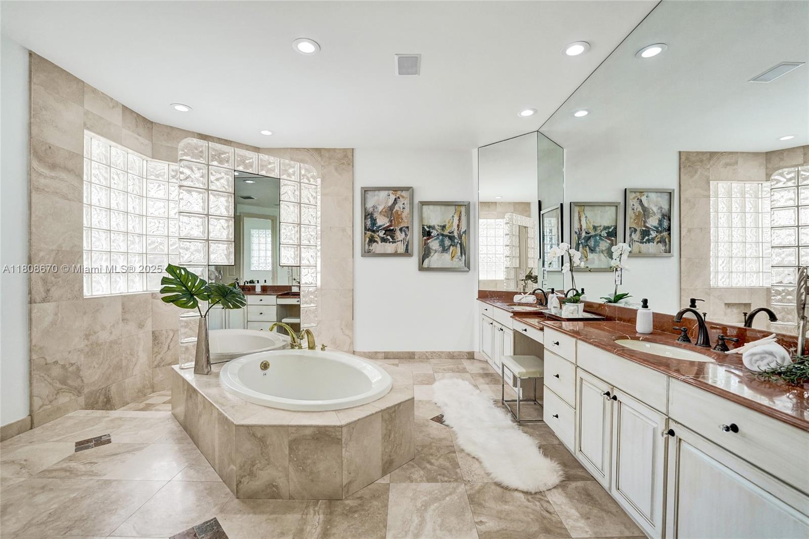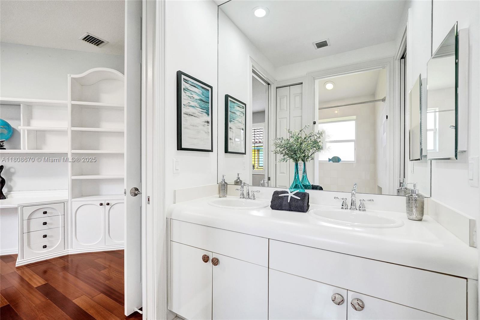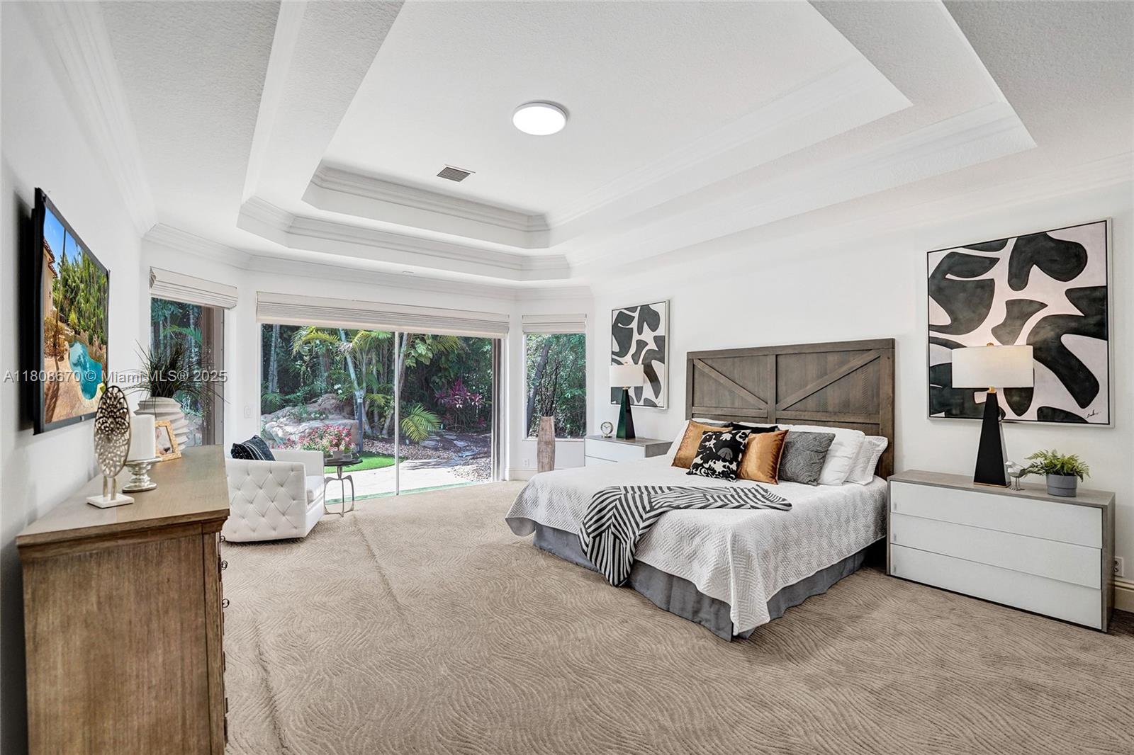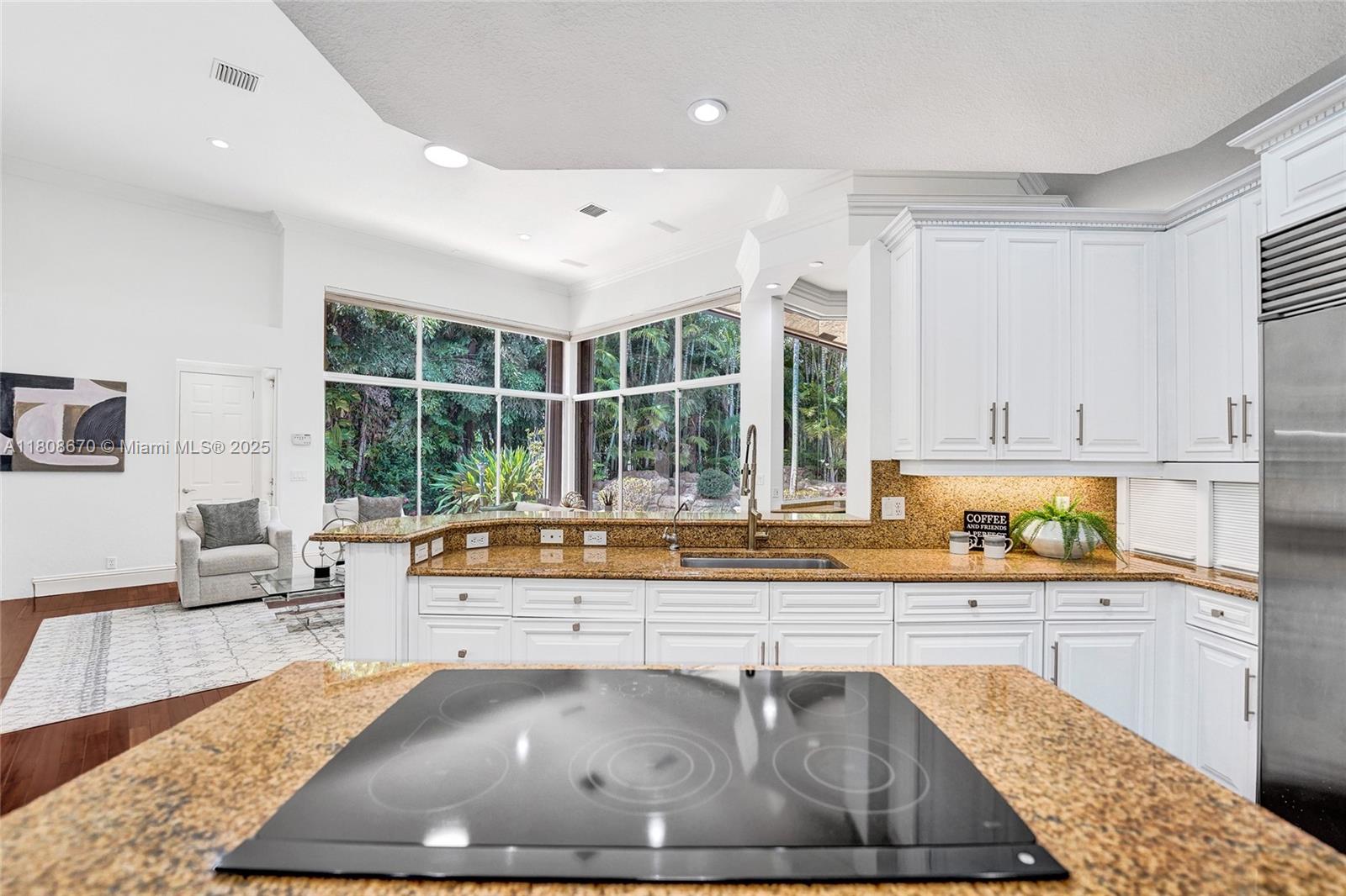 Set on beautifully landscaped 14418 sqft lot, this custom 3,818 sqft residence offers 2020 roof, paver driveway, and accordion shutters. Inside, rich wood flooring, fresh paint, and refined crown molding. At heart of the home, chef’s kitchen showcasing white cabinetry, granite countertops, Sub-Zero refrigerator, and Thermador cooking appliances. Expansive primary suite is a retreat with tray ceilings, dual closets, spa-inspired bath, and direct access to backyard. Three additional bedrooms, private office, and 3.2 baths ensure ample space for family and guests, while thoughtful upgrades: LED lighting, cabana bath, and epoxy-finished garage. Outside, unwind in your own paradise: saltwater pool and spa framed by travertine deck. Perfect blend of luxury, function, and style!