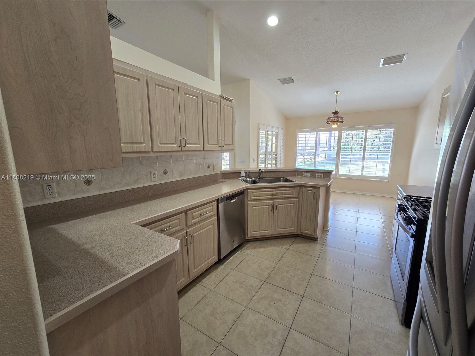 This custom home offers over 3,000 sq ft under the roof and 2,400 sq ft under air on a spacious 12,000 sq ft lot with a storage shed. The 4-bedroom split floor plan has two bedrooms and a bath on each side. new matching granite vanity counters in both bathrooms The main suite opens to a screened, tiled patio. Patio includes ceiling fans and gas hookup for grill. The kitchen includes a breakfast nook Plantation shutters throughout, vaulted living room ceilings, a tray ceiling in the main bedroom, and a laundry room with a gas dryer and sink. Enjoy a 2-car garage, a gas stove, and a tankless water heater. The roof is just one year old with metal-covered fascia and soffit. Ask about other upgrades.