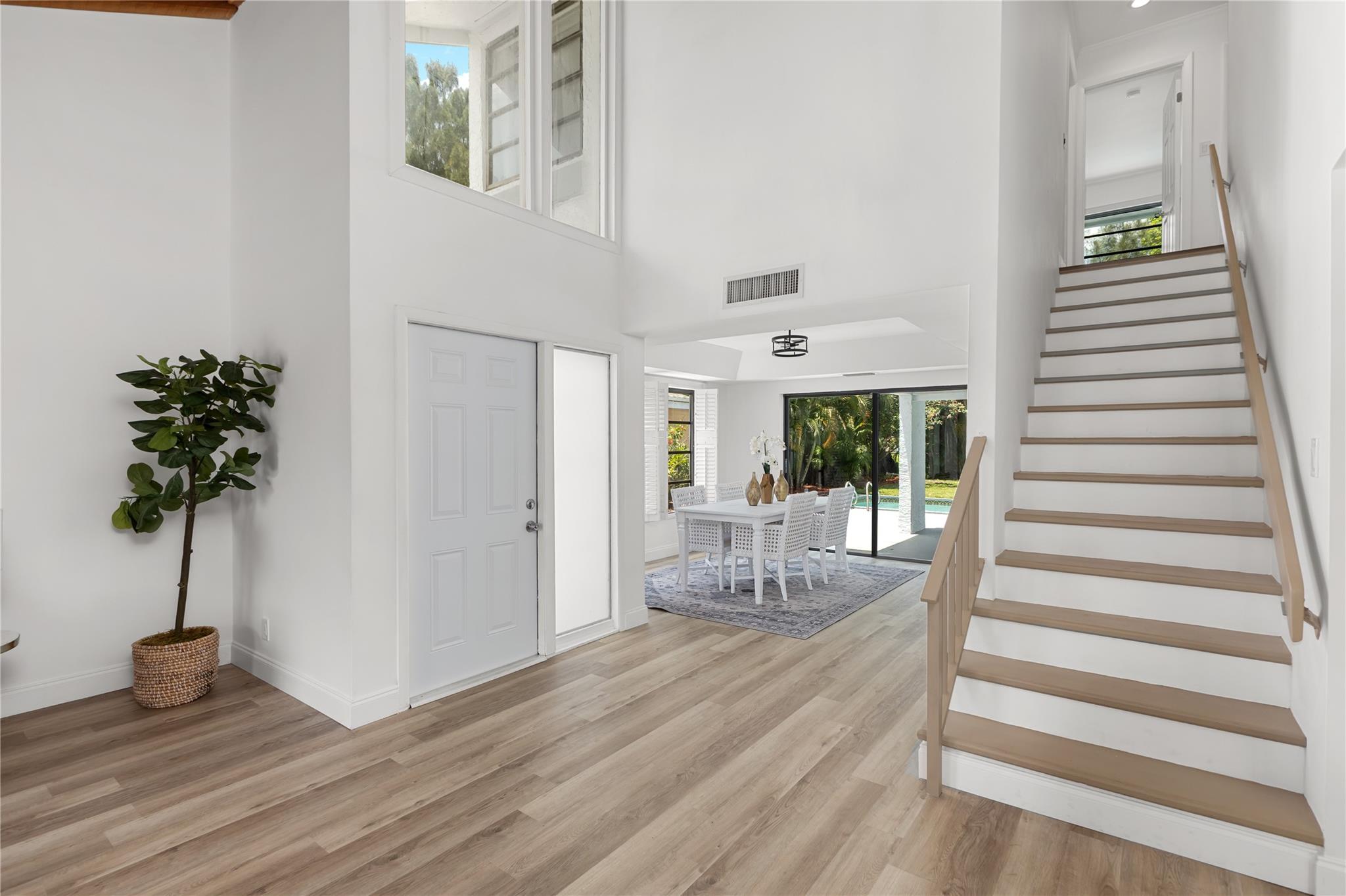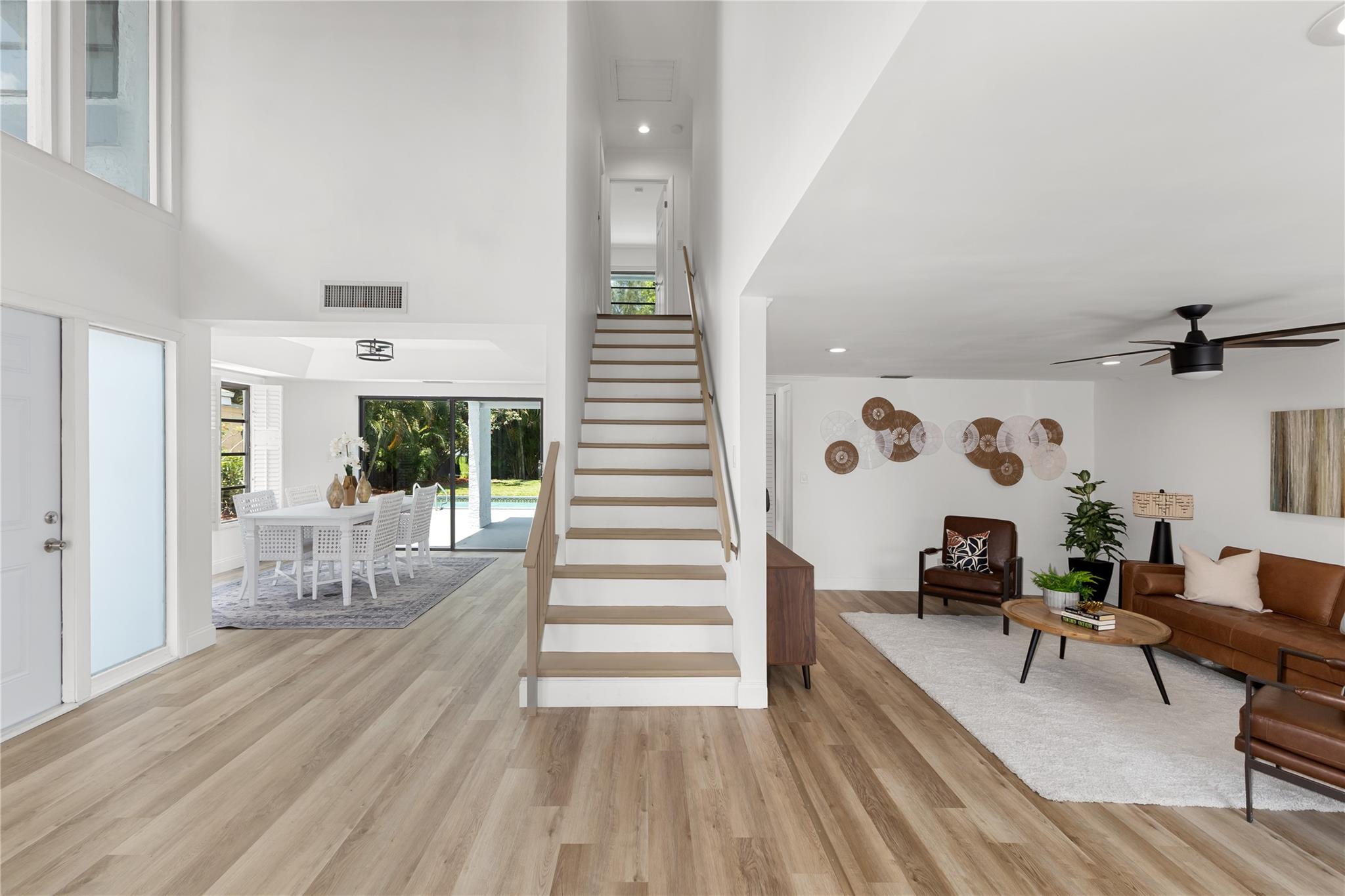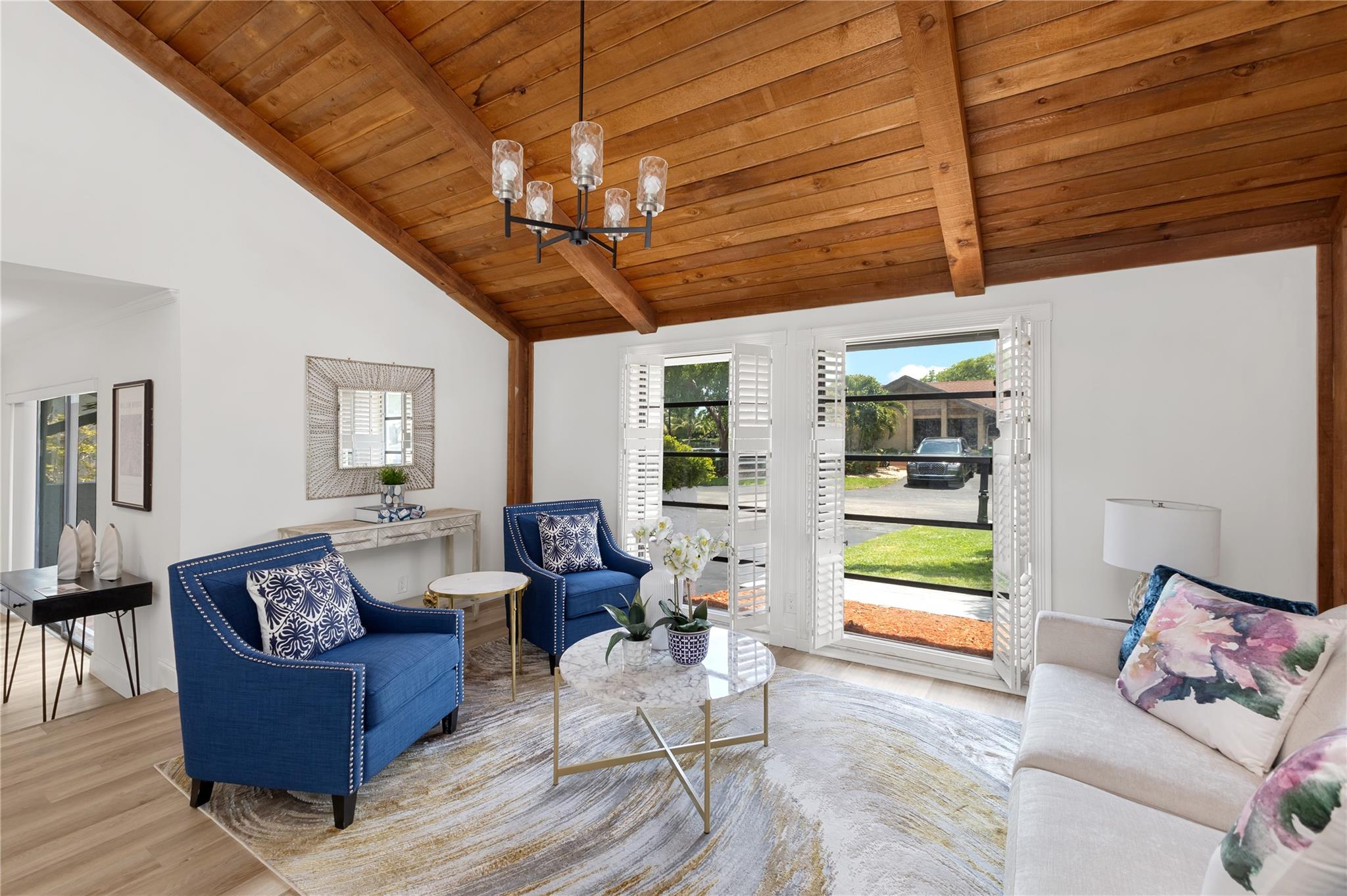 Beautifully restyled 3/2.5 Waterfront Pool Home located in prime Davie location. Upon entry you are welcomed with high vaulted ceilings & wide open living spaces with dedicated living room, entertainment room, dining room & kitchen with breakfast area. Home offers over 2,000sqft under air, Brand new roof, Full hurricane protection, Updated bathrooms & kitchen with SS appliances, New flooring throughout, Freshly painted inside & out & New landscaping with sprinkler system. The expansive back patio & yard is the perfect oasis with pool, large trees & waterfront access for fishing, small electric boats, paddle boarding & kayaking. Property is nestled in a quiet serene Davie neighborhood with A+ schools, local parks, great restaurants & everything Davie has to offer. Easy to show. Come see.