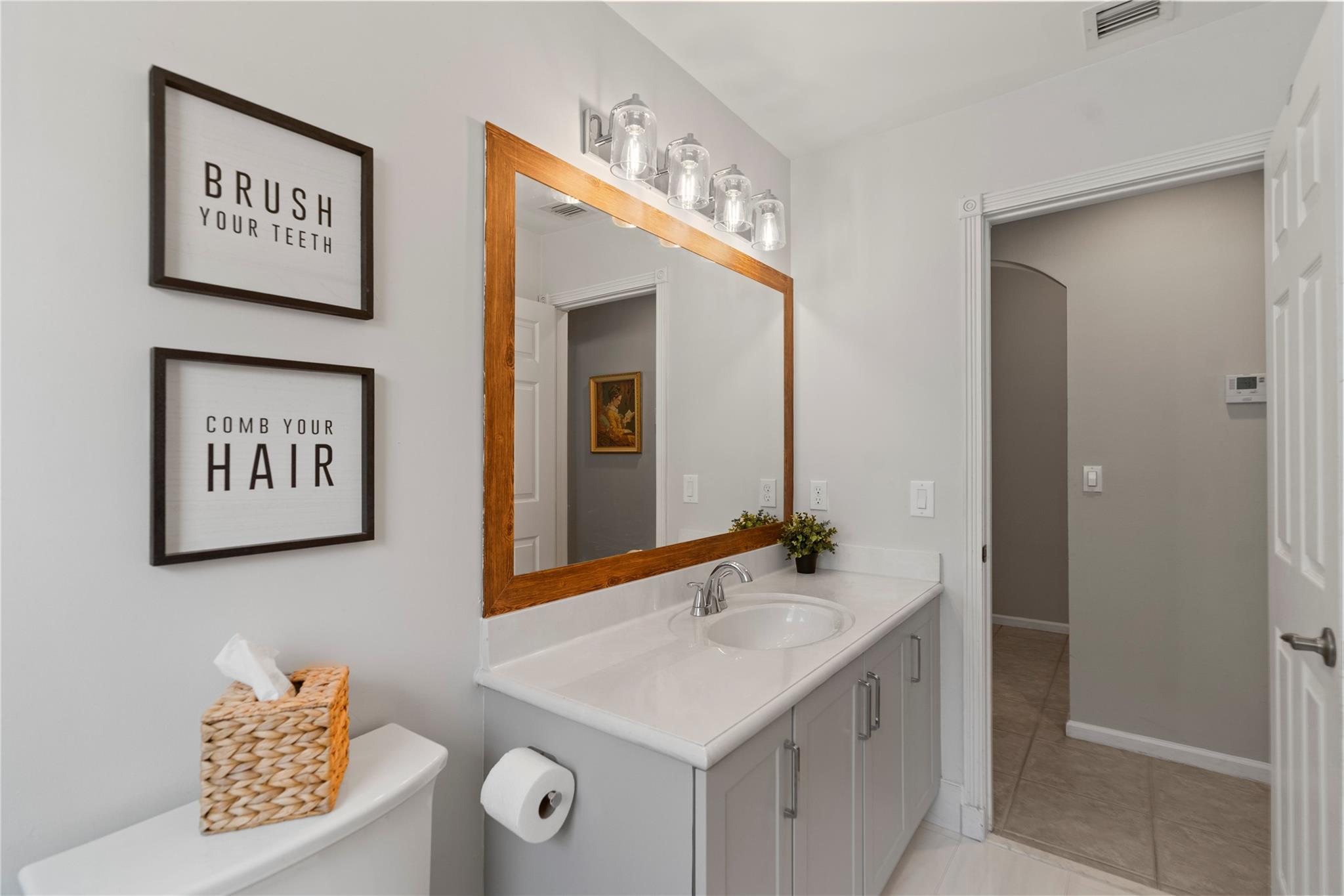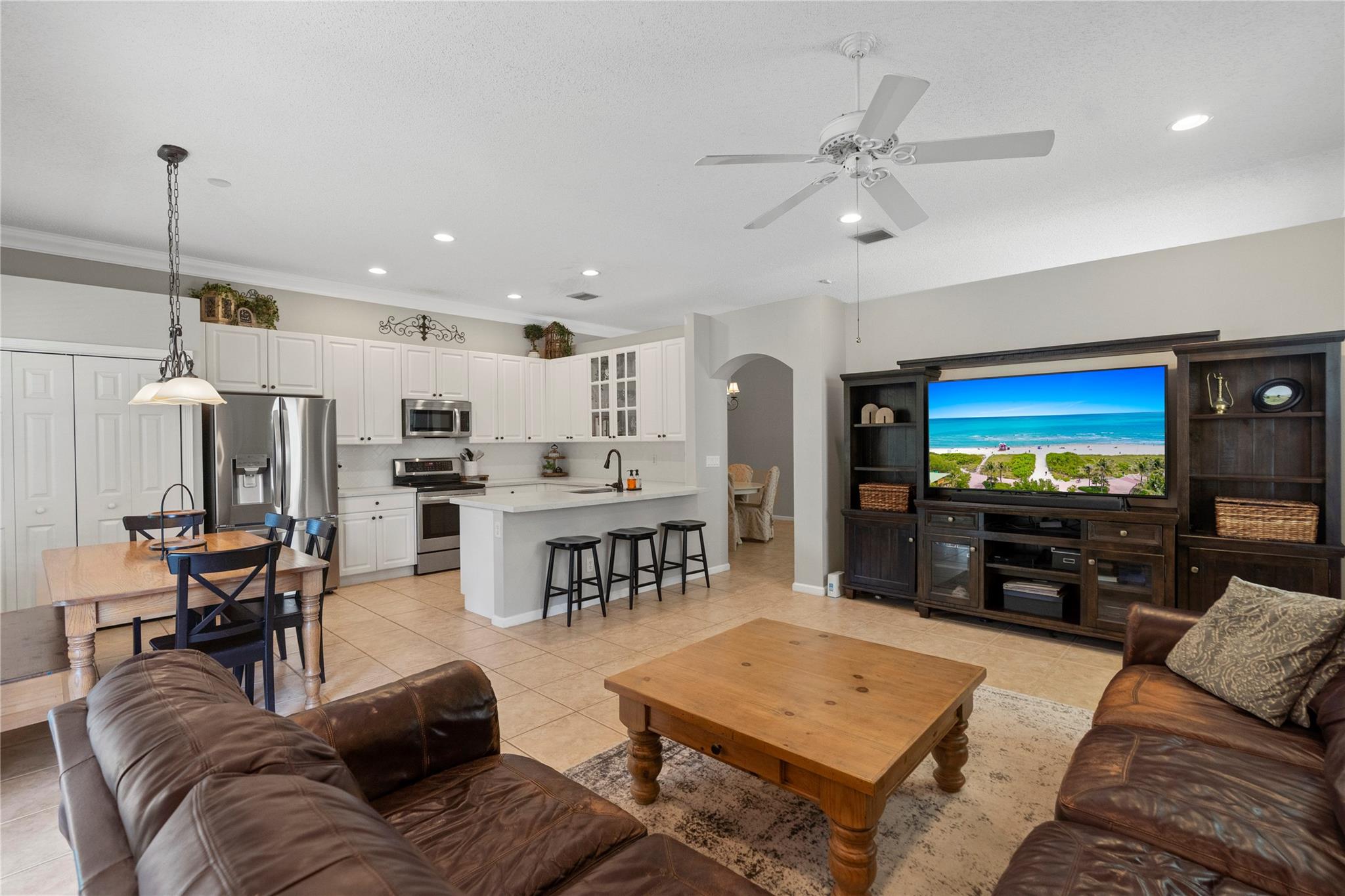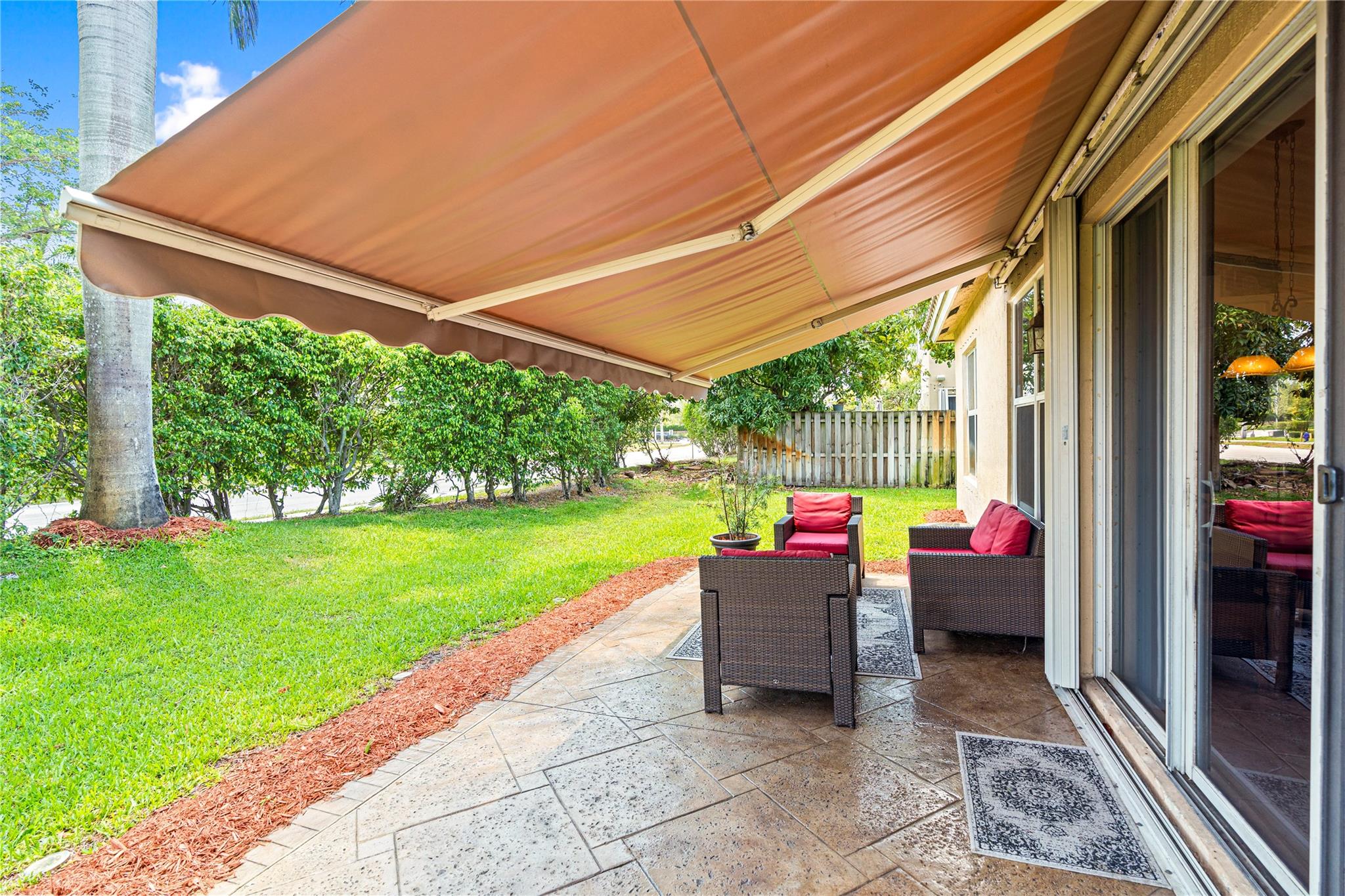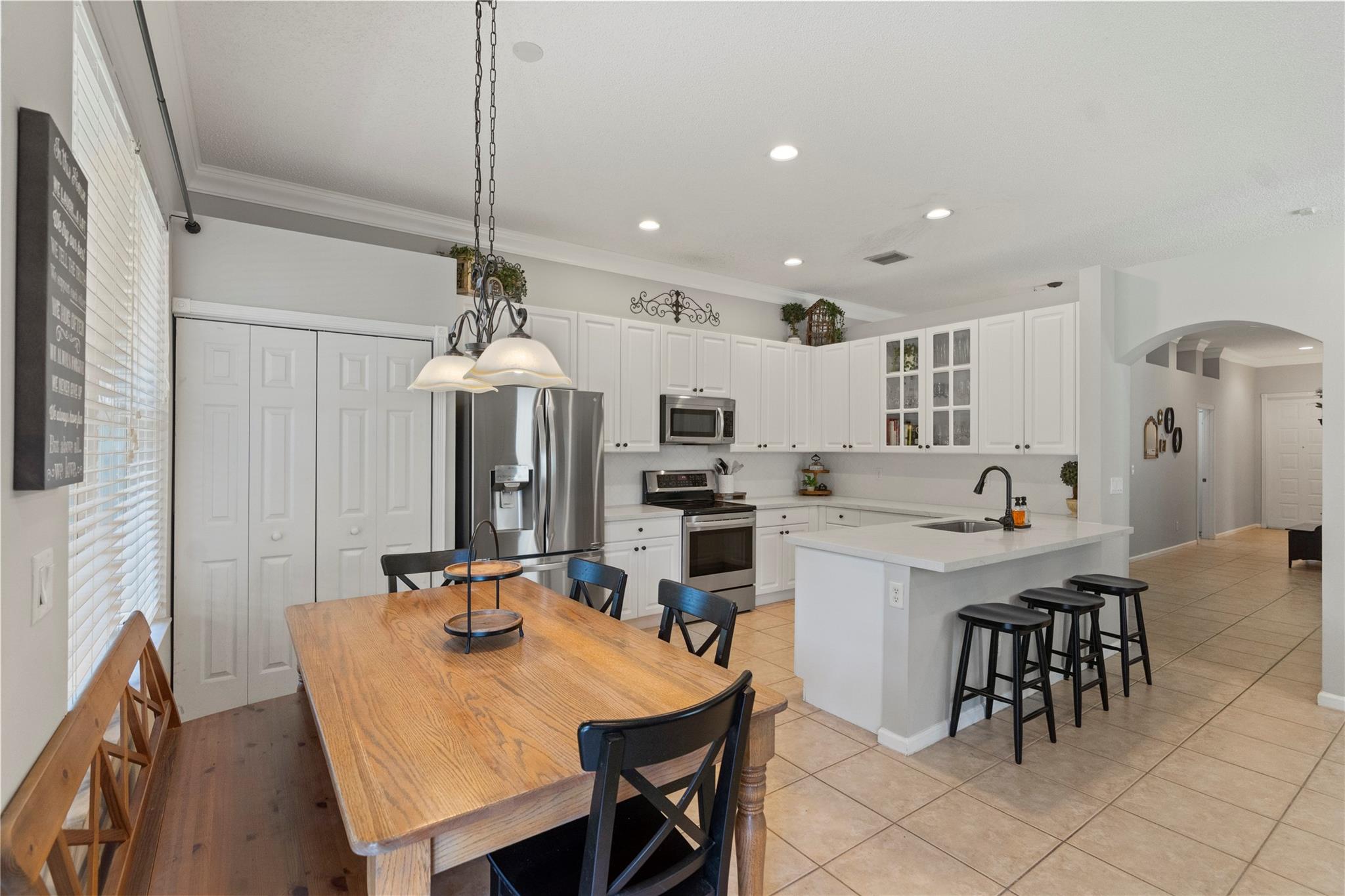 ** Seller will give a $10,000 credit to the buyer at closing towards updates** Beautifully updated 4 BD, 3 BA one-story home with a new roof (2023). A modern kitchen with quartz countertops and stainless appliances opens to a spacious family room ideal for entertaining. Fabulous split floor plan with volume ceilings & crown molding features recent updates including the water heater (2024), washer/dryer (2023), AC (2017) plus a renovated subway tiled guest bath with a frameless glass shower door. The spacious primary suite has a walk-in closet and a spa-like bath with a soaking tub & separate shower. Extended patio with retractable awning offers shaded outdoor relaxation. Full hurricane protection: partial impact windows. Downpayment assistance programs welcome.