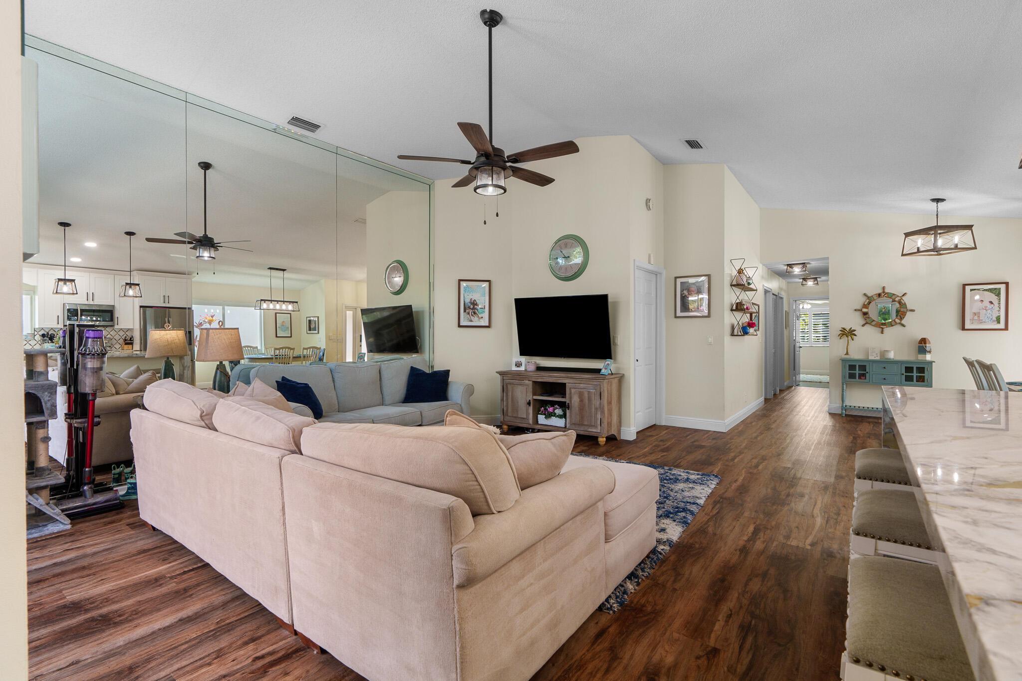 FULLY Renovated single story home in one of Boca Raton's most desired school zones. Boasting volume ceilings, a luxurious open kitchen and two fully renovated modern bathrooms. Kitchen has wood cabinetry, 10ft waterfall quartzite island. Bonus custom built-in office/workspace. The primary suite has an oversized walk-in closet and gorgeous modern marble bathroom. Luxury vinyl flooring throughout. Hurricane Impact Windows. Kitchen & living room sliders open to the spacious screened patio, great for entertaining guests. Garage ceiling storage & epoxy floors. Rare massive fully fenced & private backyard. NEW Water Heater, AC-3yrs old. Roof-2018. HOA covers TV/Internet, home painting and pressure cleaning, all landscaping including tree trimming as well as a guarded gate and community pool.