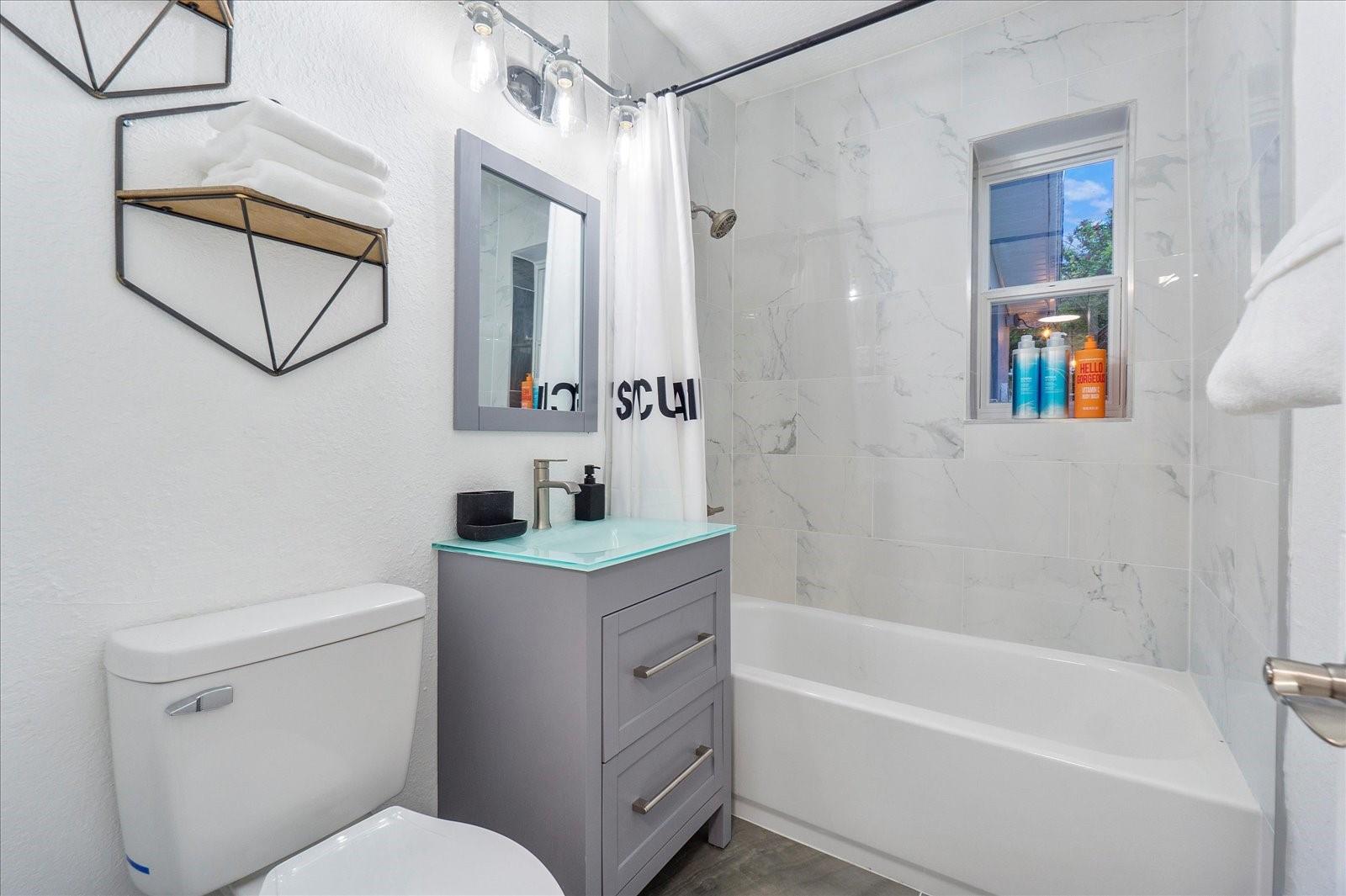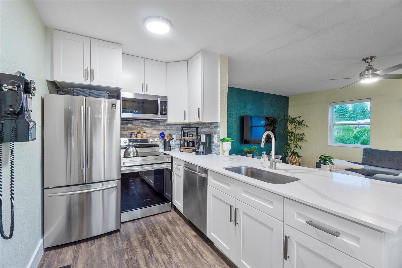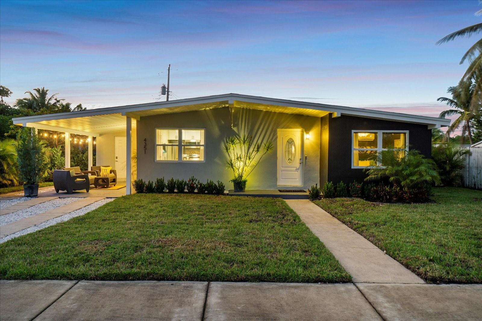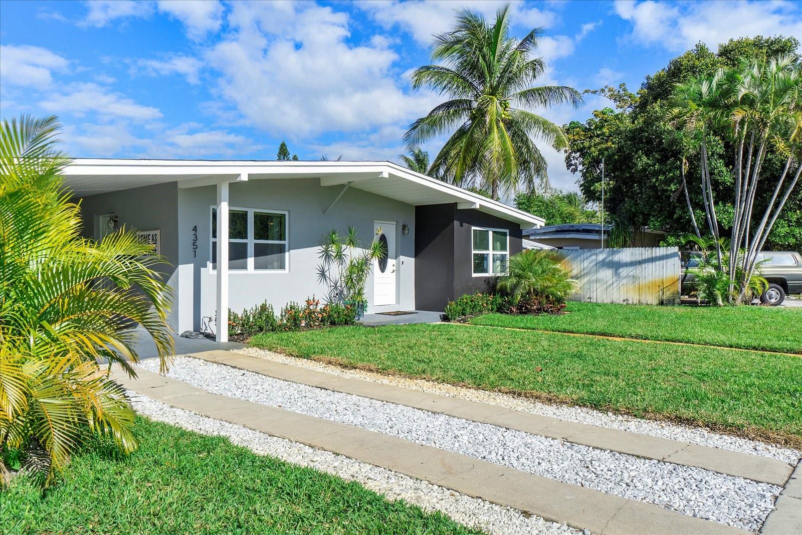This amazing 3/1 mid century updated home in Pompano Beach is all ready for you! Kitchen features modern cabinets, quartz countertops, stainless steel appliances. Features include 2021 roof, dual air conditioning units and ceiling fans. The property also features impact windows, providing an extra layer of safety. Stepping outside, you'll find a generous grassy yard equipped with an outdoor shower. The property also includes a storage room/laundry room with a full-sized front-loading washer and dryer. No HOA. Only 4 miles to the beach this quiet homes location can’t be beat. This won’t last long, make an appointment to see for yourself!