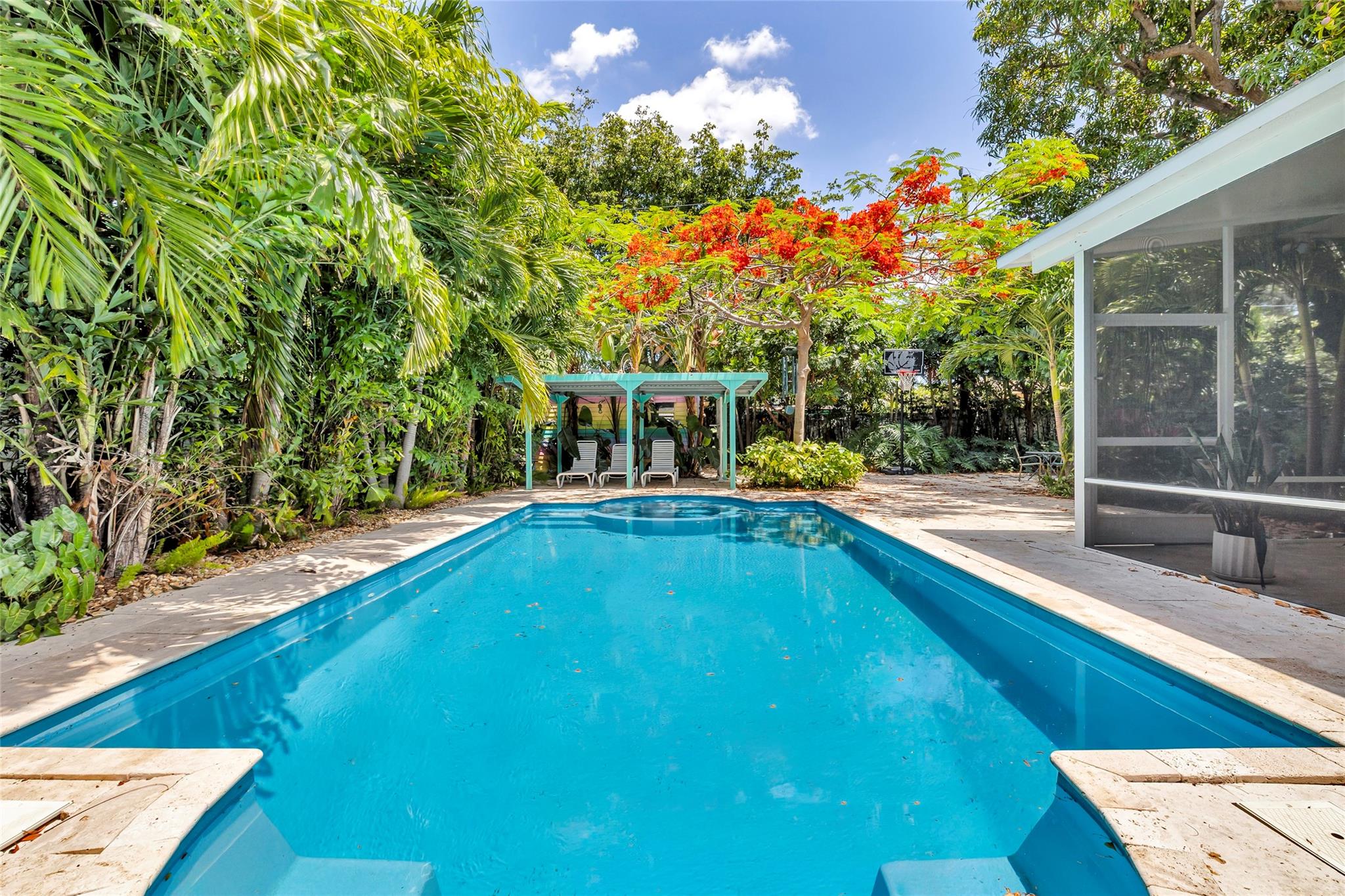Unique Oasis in Historic Pompano Beach! Spacious & bright 4 bedroom & 3 bathroom + den pool home located on a large oversized lot. This Florida Keys inspired property features a private mother-in-law suite ideal for guests or multigenerational living. The home is surrounded by lush tropical landscaping, mature fruit trees, and both a resort style pool/spa, pergola and screened in porch perfect for outdoor entertaining and relaxation. Interior highlights include a light filled open floor plan, large kitchen, impact windows and doors, newer roof, coastal finishes, and a light & bright area atmosphere throughout. Home has split unit air-conditioning system = efficient electricity bills. Unique tropical retreat, neat beaches, shopping, dining & major highways. Private side yard for boat or RV.