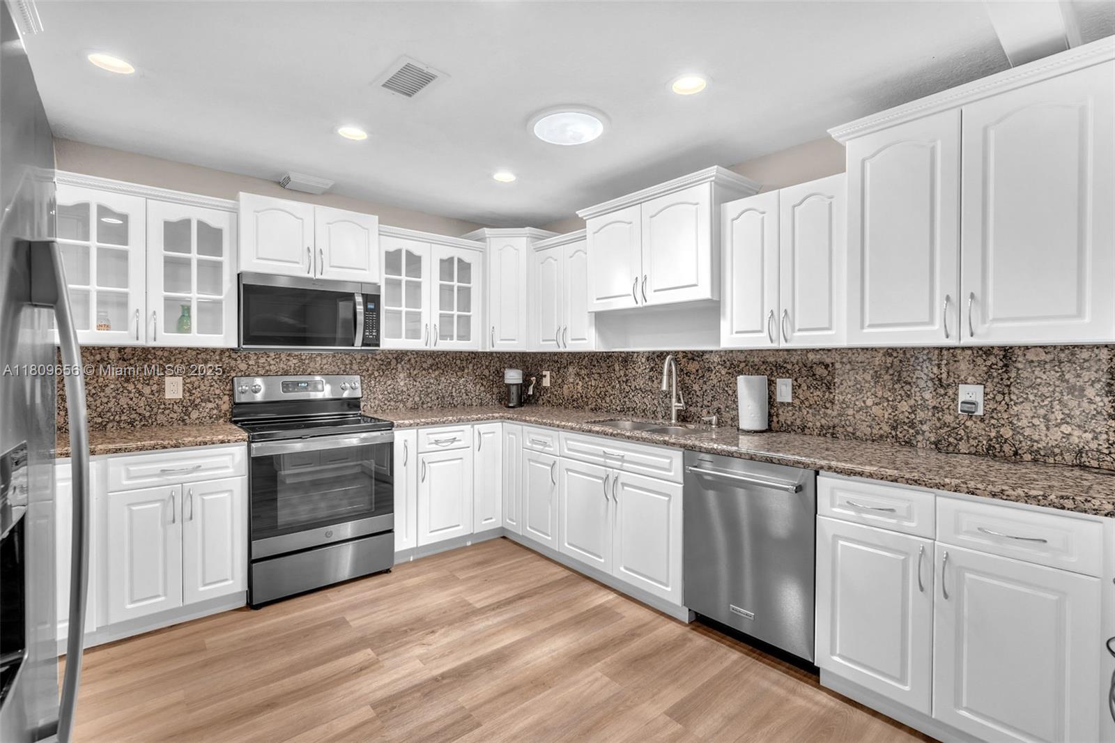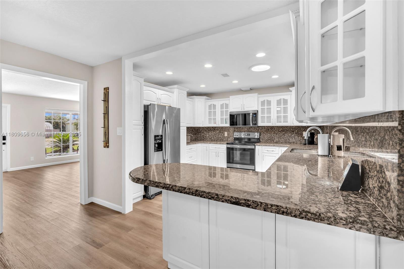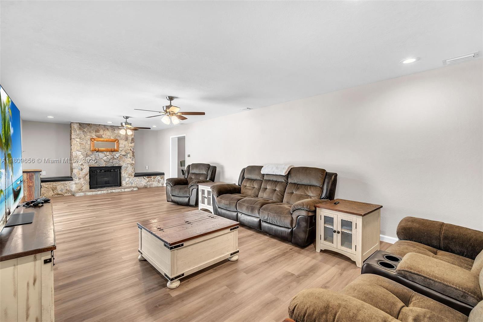 REDUCED!! Gorgeous Davie Home! Tastefully remodeled, spacious 3 bed, 2.5 bath. Open living areas. Large family room! Beautiful stone fireplace. Open eat in kitchen with wood cabinets, granite counters & stainless-steel appliances. Large bedrooms. Walk in closets. Completely remodeled in 2023- New roof, new bathrooms, new flooring, new water heater, freshly painted interior & exterior, new electrical components, lighting & ceiling fans. Covered terrace and swimming pool ideal for entertaining. The pool area is an oasis, with landscaped rocks, palm trees and a beautiful gazebo. Asphalt parking areas for a large RV & a large boat. No rear neighbors. No HOA. Securely fenced. Quiet and private dead-end street. Close proximity to Nova University, highways, shopping centers, horse trails & parks.