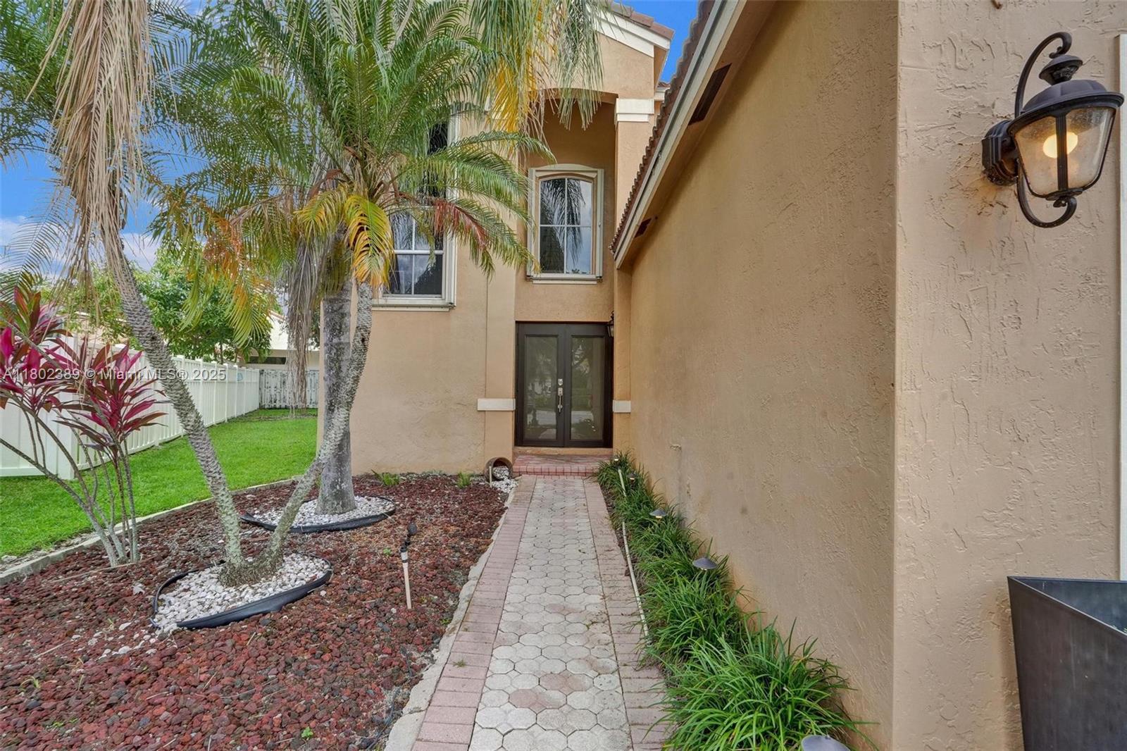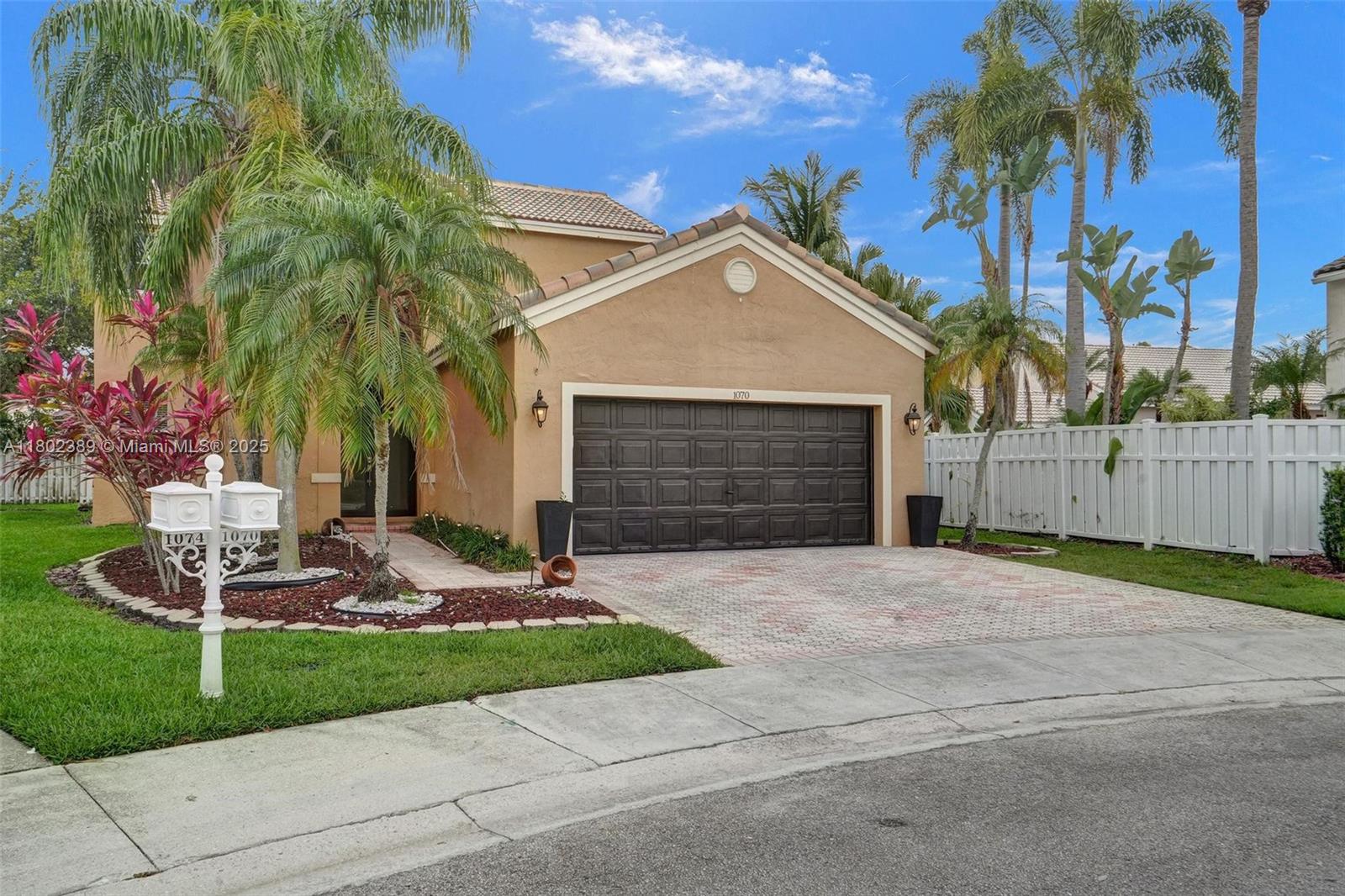 Beautiful 4-bed, 2.5-bath home in The Falls, Weston, nestled on a quiet cul-de-sac in a guard-gated community. This updated home also has a Roof & AC approximately 6.5 years new. Master suite on the first floor features a custom closet & upgraded bath with large shower and dual sinks. Upstairs offers three spacious bedrooms and a fully renovated bathroom. Open floor plan with high ceilings & abundant natural light. Updated kitchen with updated appliances, wood cabinets, and granite countertops. Extended covered patio perfect for entertaining, with plenty of space for a pool, gazebo and more. Tile flooring on the first floor, vinyl on stairs and second floor. Additional features include newer roof, AC, recessed lighting, updated half bath downstairs, laundry room under air, & 2-car garage.