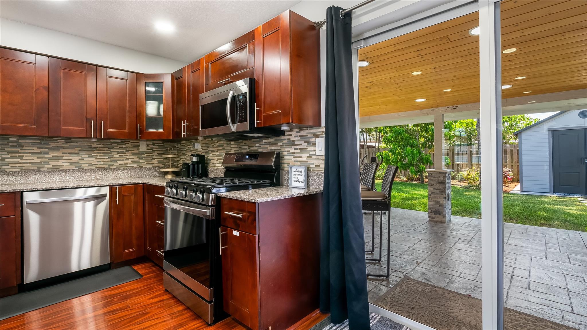 No HOA. No fees. Just pure Florida living in this fully renovated Plantation gem! This 3 bed, 2 bath single-family home is move-in ready with a 2021 roof & impact windows & doors. Inside, the stylish kitchen shines with SS appliances, gas stove & ample counter space. Freshly painted walls, plantation shutters, 2020 A/C, and beautifully updated bathrooms! Entertain with ease in your spacious covered patio complete with electric, fan, mounted TV, two dining areas & outdoor bar! Fully fenced yard with large storage shed for yard equipment (or keep the yard crew & use as toys shed). Furniture optional - just bring your toothbrush! Ideal for first-time home buyers or VA loans. Prime central location: 10 mins to Broward Mall, 20 mins to Downtown , 20 mins to Ft Lauderdale/Hollywood airport.