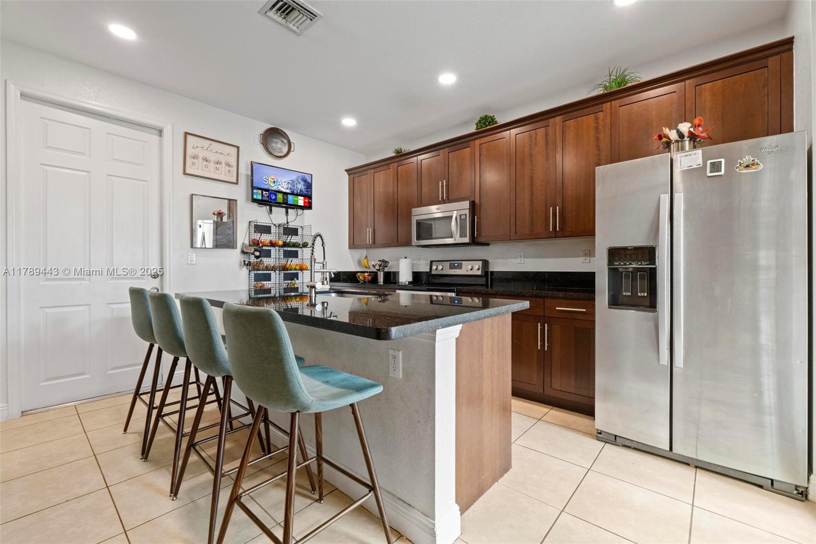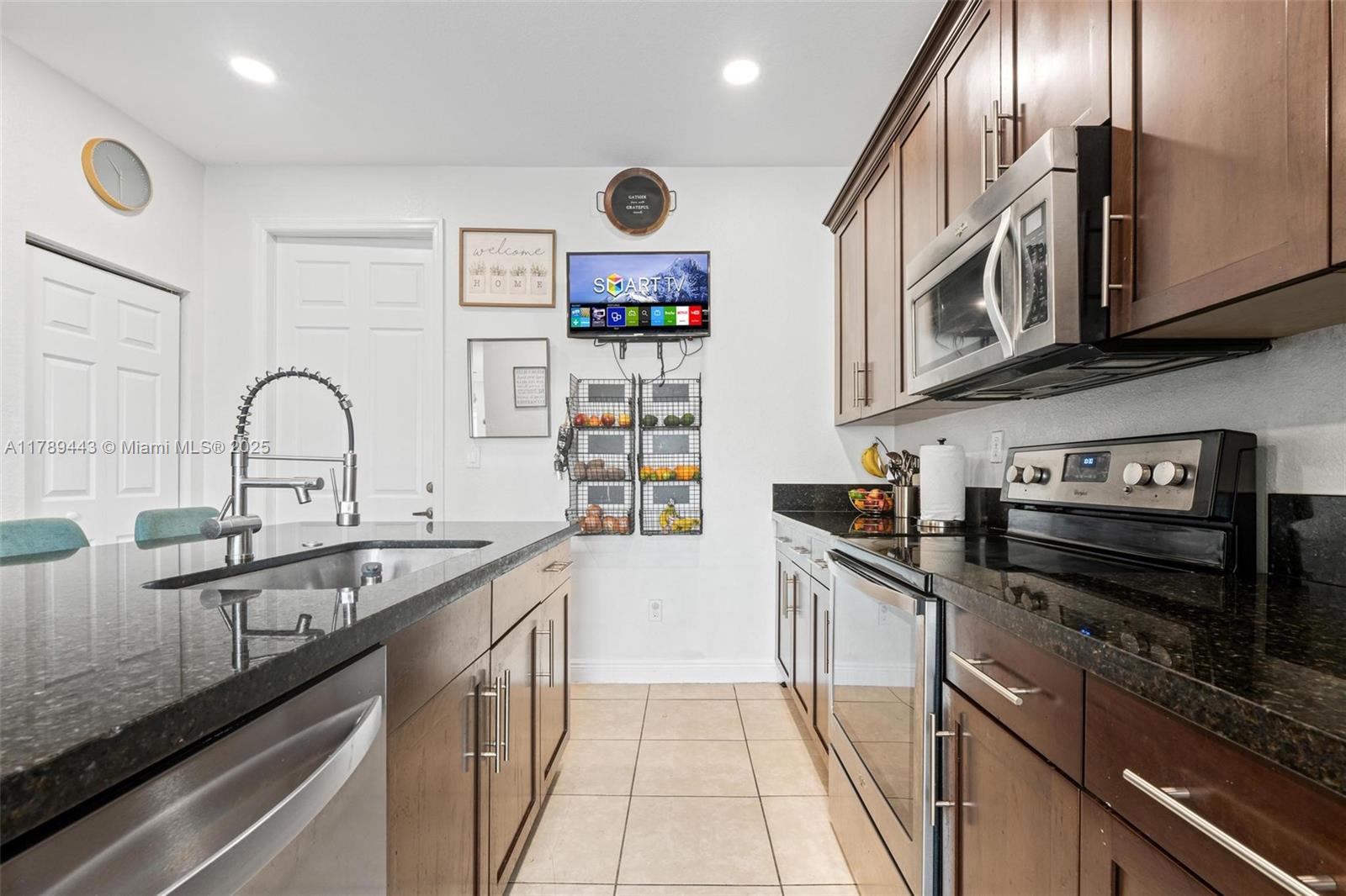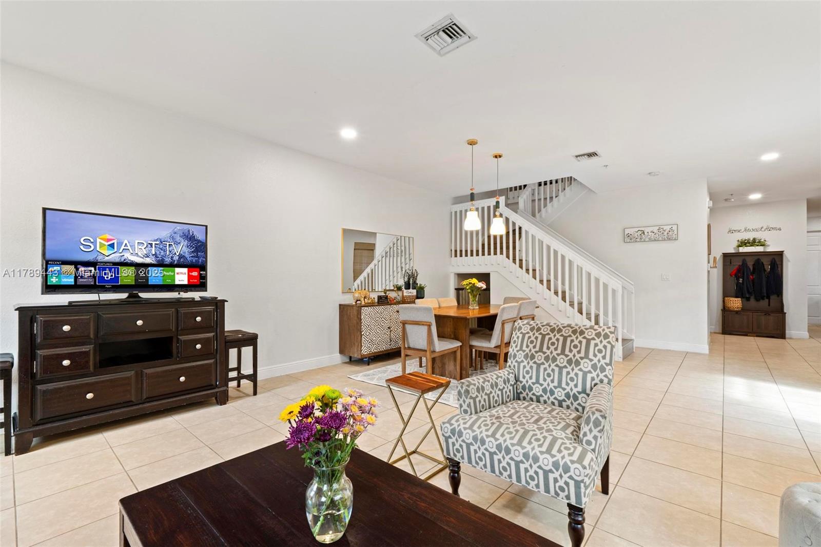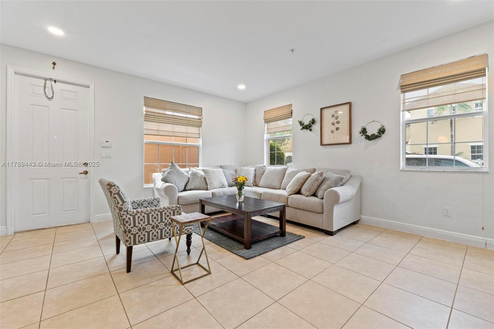 Beautifully maintained 3-bedroom, 3-bathroom home located in a prime Pembroke Pines neighborhood! This spacious property features a modern kitchen with stainless steel appliances, ceramic tile flooring throughout the main living areas, and laminate flooring in all bedrooms and on the staircase—no carpet anywhere! The functional layout includes a full bedroom and bathroom on the first floor, ideal for guests or multigenerational living. Laundry is conveniently located downstairs. The home also features an attached garage equipped with a Tesla charger, plus plenty of surrounding guest parking. Located near top-rated schools, shopping, dining, and major highways.