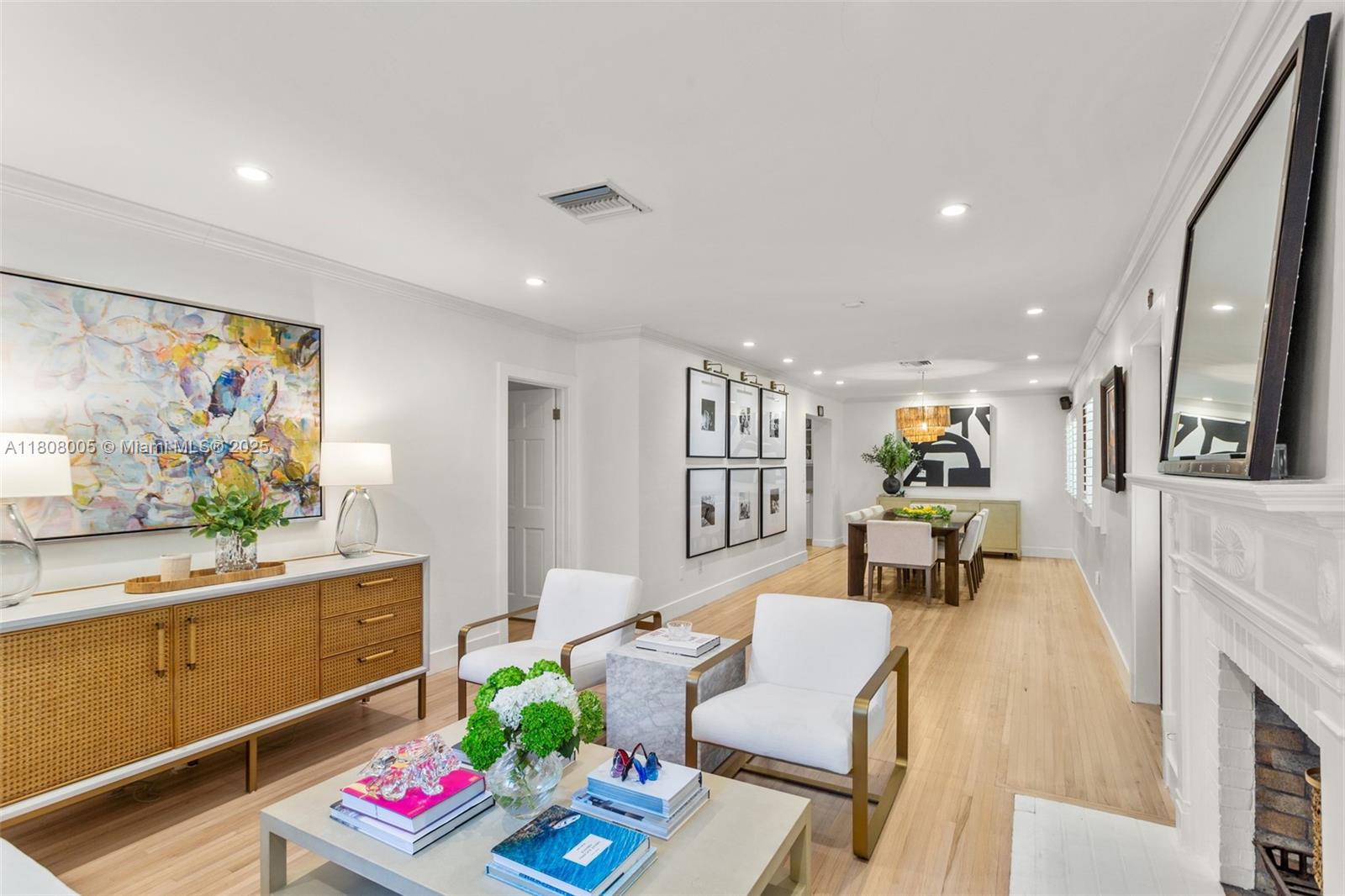 Charming 4BD/3BA family home on a oak-lined street in the prestigious South Gables neighborhood. This beautifully updated residence offers 2,612 LIV SF on a large 10,625 SF lot w/ saltwater pool & large backyard! The home ftrs a large living & dining room upon entry, adjacent to the kitchen w/ a bar that seamlessly flows to your oversized family room, ideal for everyday living and entertaining. Large primary suite ftrs a walk in closet & spacious bathroom w/ double vanity. Enjoy outdoor living w/ a generous covered terrace, pool, jacuzzi, lushly landscaped yard for privacy, large turfed area, & spacious side yard. Additional ftrs include: wood & marble floors, plantation shutters, impact windows / doors, fireplace, & a 1-car gar. Walking to Jaycee Park & much more. Coral Gables Living!