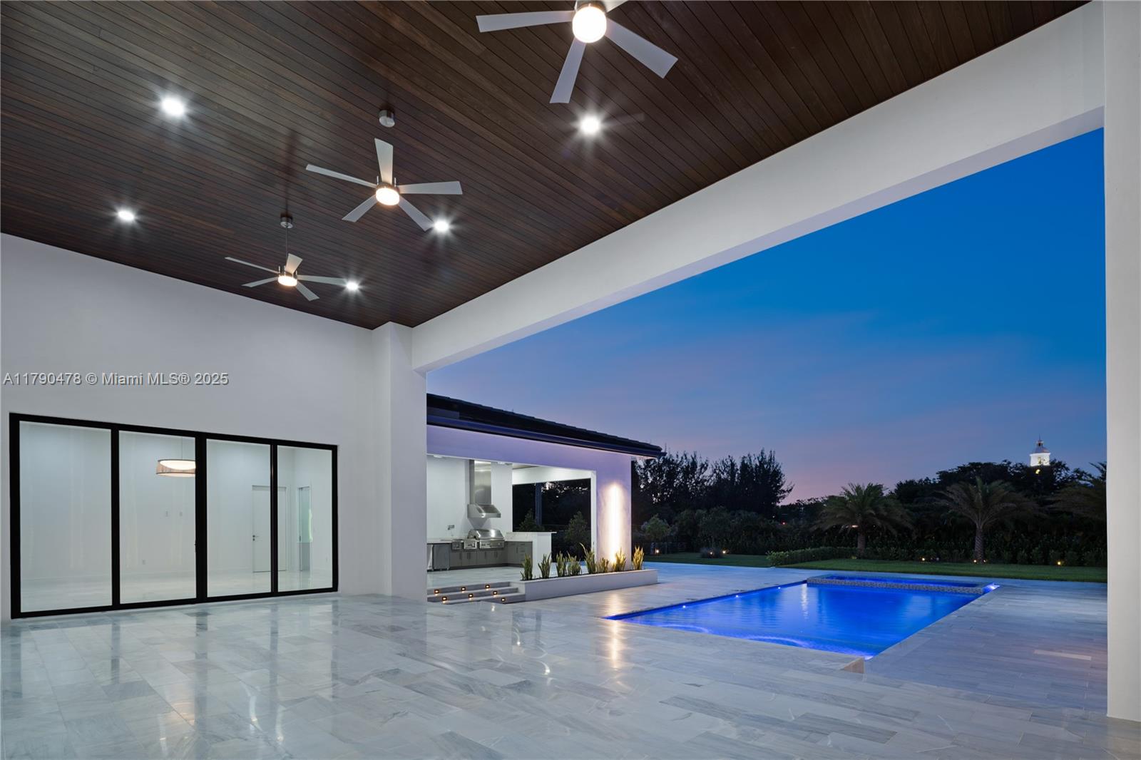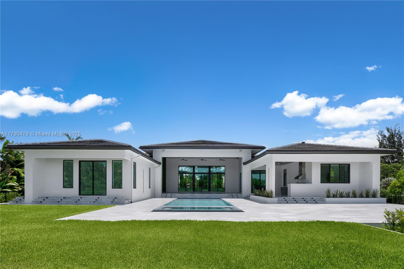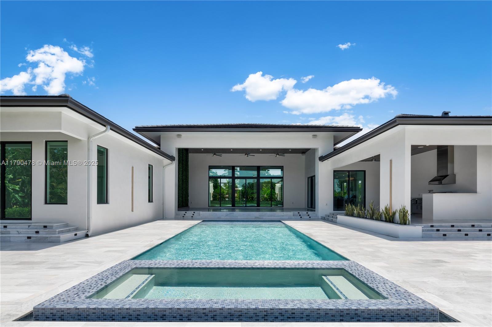 Modern residence in Plantation, FL: contemporary luxury on a private 1.1-acre lot. 5,599 sq ft climate-controlled. A 27-ft porch, 10-ft door, high ceilings, marble floors. 4 bedrooms, including primary suite with spacious closets and expansive shower. Italian-designed kitchen with 7x11 island and THERMADOR appliances. Includes a fully equipped movie theatre, sound system SONOS interior & exterior, spacious office, 3-car garage, 2 covered parking and driveway for up to 6 additional cars. Outside, 48x17 pool with jacuzzi, LED lighting, waterfalls, Viking summer kitchen, and 1,000 sq ft terrace. Tech-ready smart systems and surveillance cameras. High-end design and amenities. Close to AHS school, Supermarket, gas station, Major intersections and highway.