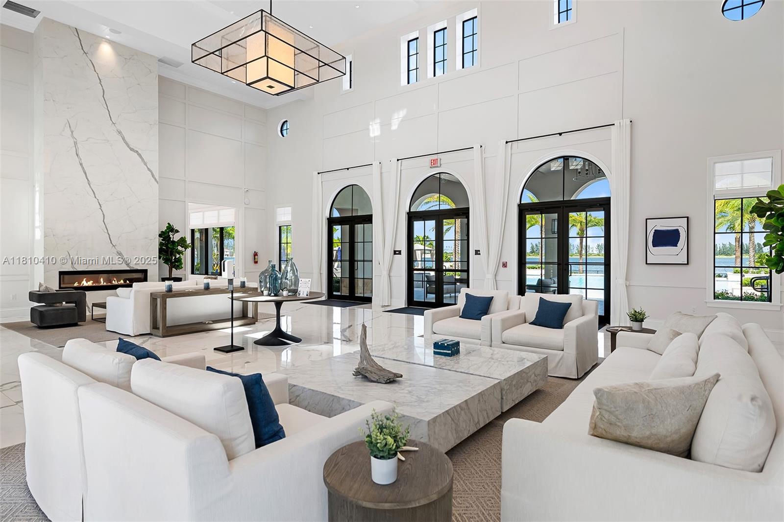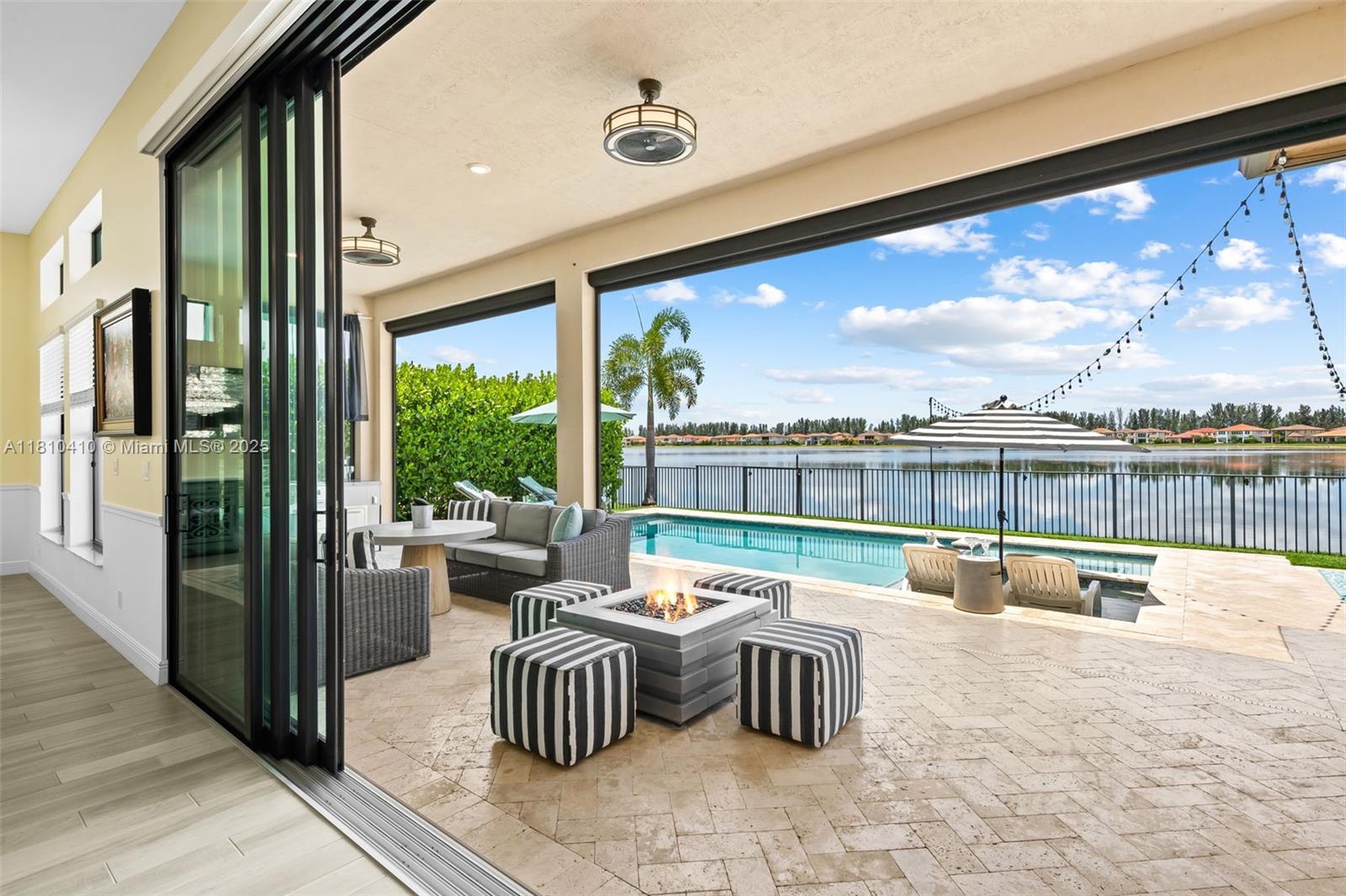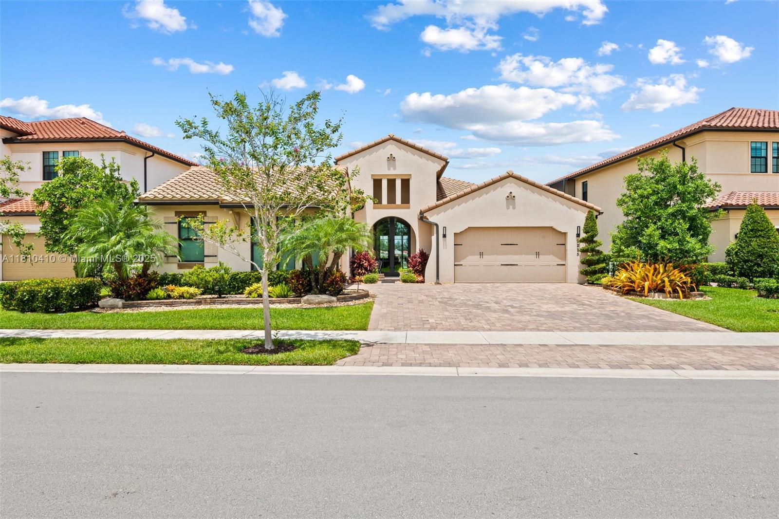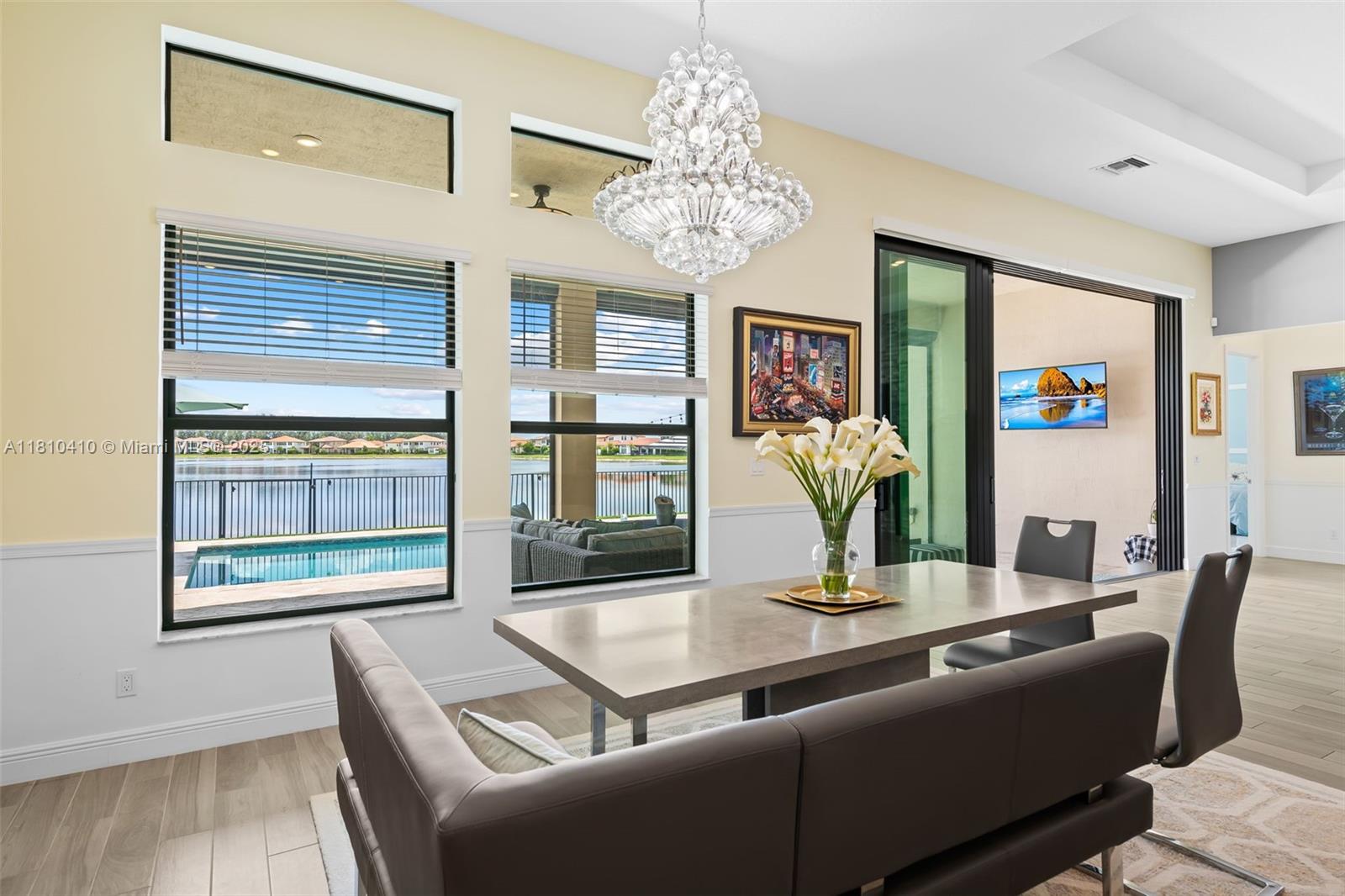 Discover refined elegance in this immaculate 4B/4B Catamaran model in Parkland Bay’s prestigious Waterfront Collection. Nestled on a 69’ lot along the coveted big lake with panoramic water views, this smart home dazzles with 12' ceilings, beautiful wood-look tile flooring, & a chef’s kitchen with quartz countertops, high-end appliances, & quality cabinetry. Smart home features include Alexa integration & Ring Alarm. IMPACT WINDOWS AND NEWER ROOF. Relax in your private saltwater pool with sunshelf & spa, expansive travertine deck, and lush turf yard. With spacious living areas and open-concept floor plan - this home is a true oasis. 3-car split garage with oversized pavered driveway is PERFECT FOR ENTERTAINING! Community Pool & Luxury Amenities! GREAT SCHOOLS. 24/7 guard-gated community.
