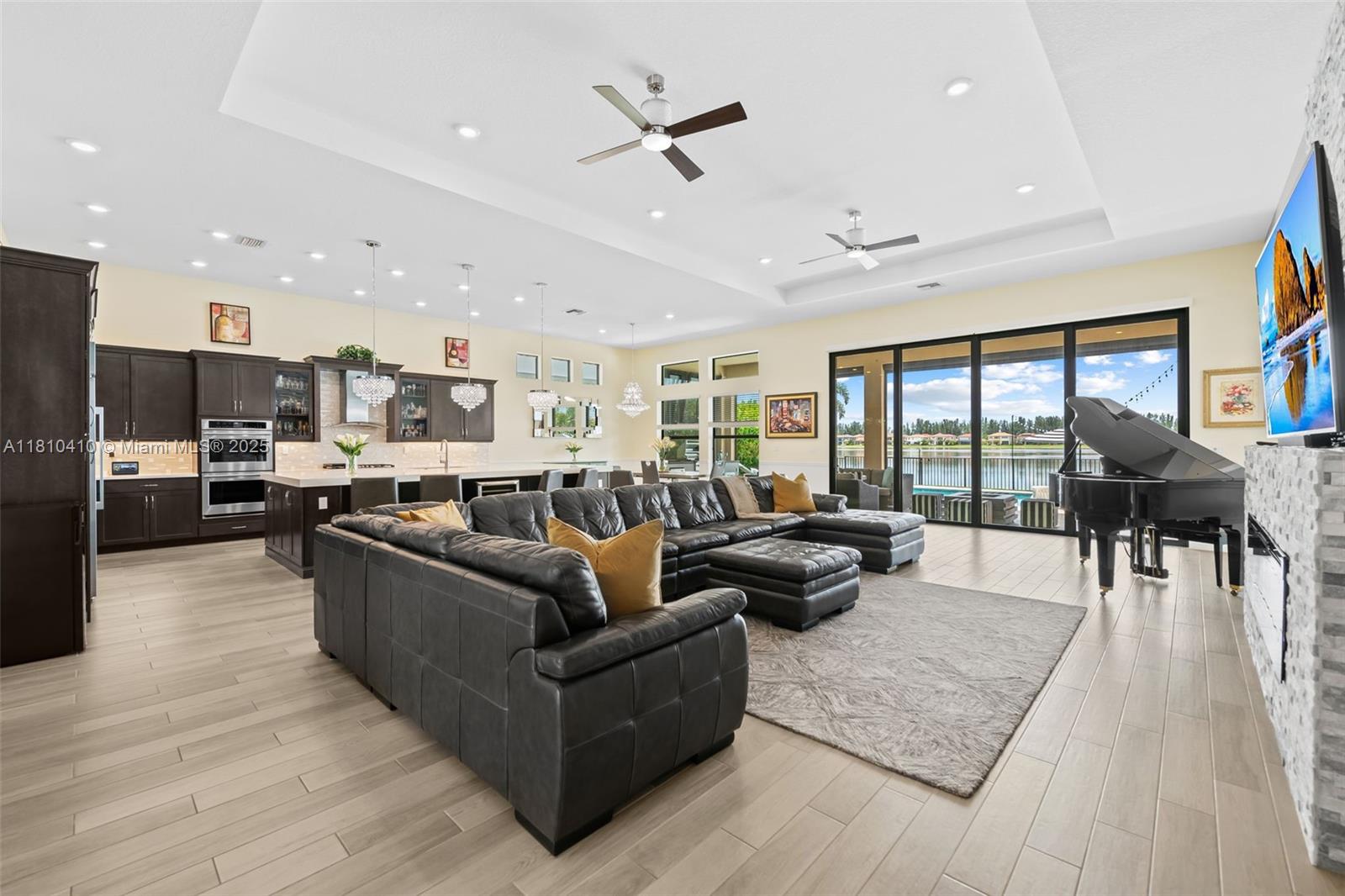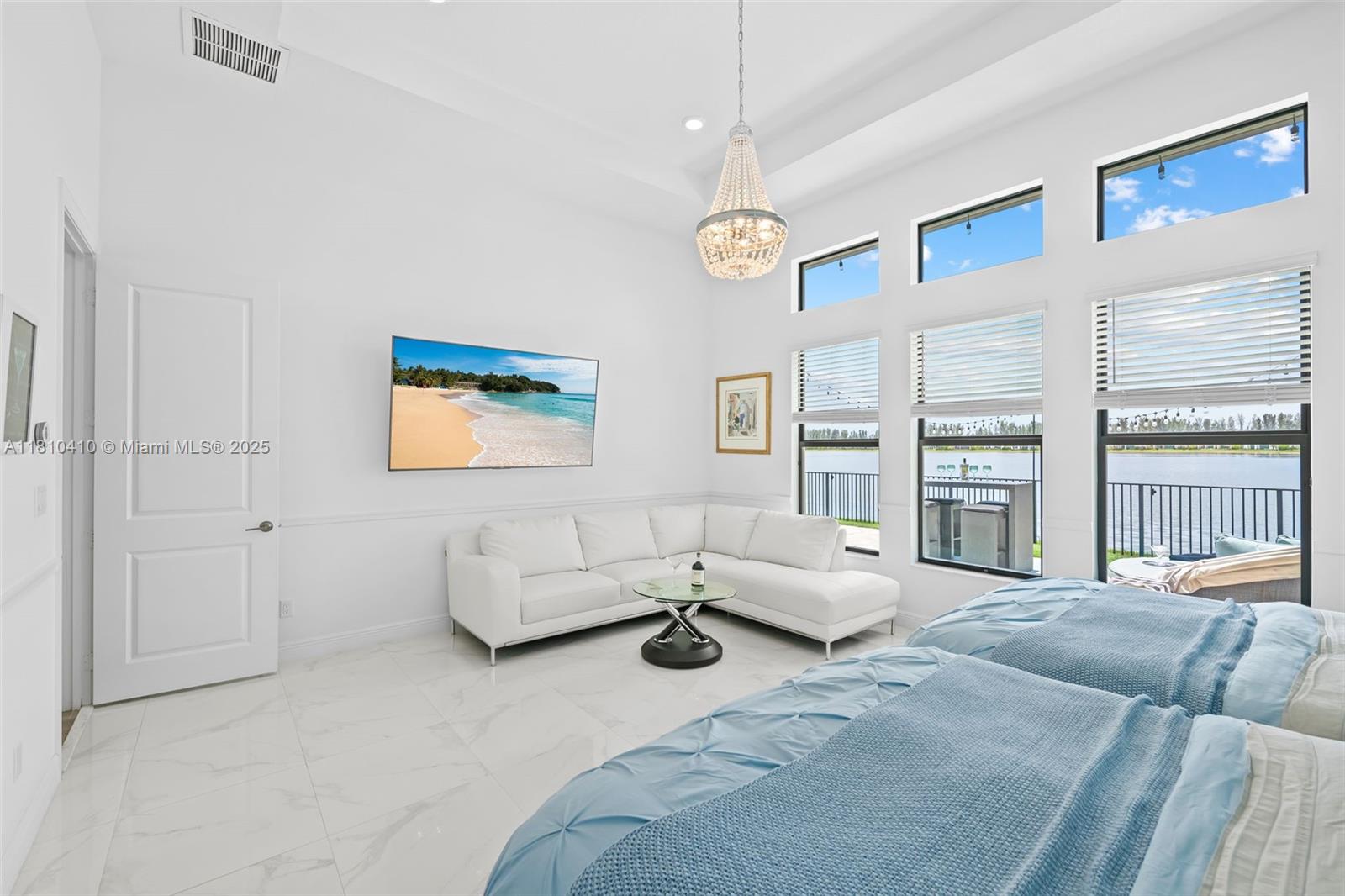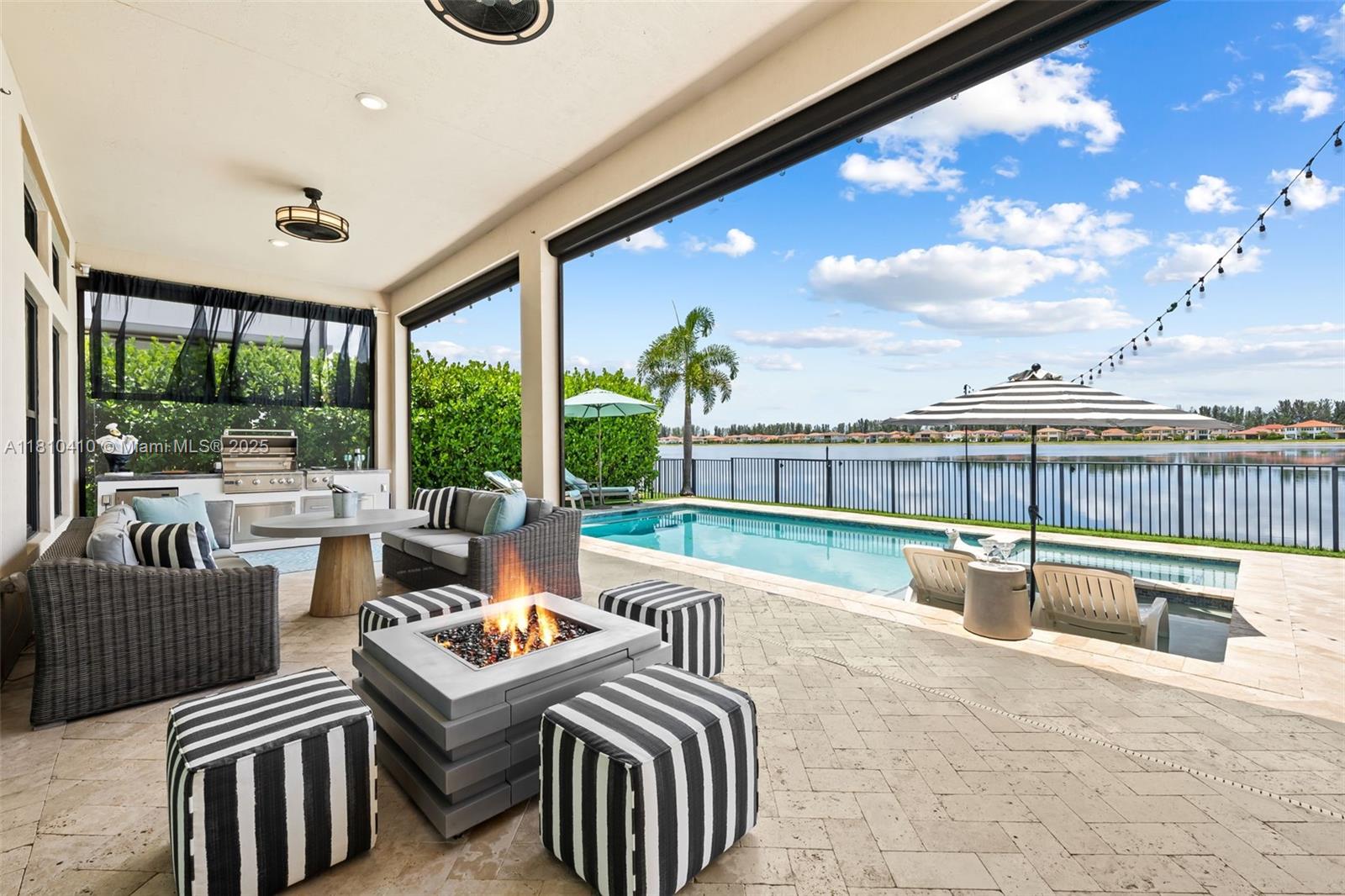 Discover refined elegance in this immaculate 4B/4B Catamaran model in Parkland Bay’s prestigious Waterfront Collection. Nestled on a 69’ lot along the coveted big lake with panoramic water views, this smart home dazzles with 12' ceilings, beautiful wood-look tile flooring, & a chef’s kitchen with quartz countertops, high-end appliances, & quality cabinetry. Smart home features include Alexa integration & Ring Alarm. IMPACT WINDOWS AND NEWER ROOF. Relax in your private saltwater pool with sunshelf & spa, expansive travertine deck, and lush turf yard. With spacious living areas and open-concept floor plan - this home is a true oasis. 3-car split garage with oversized pavered driveway is PERFECT FOR ENTERTAINING! Community Pool & Luxury Amenities! GREAT SCHOOLS. 24/7 guard-gated community.
