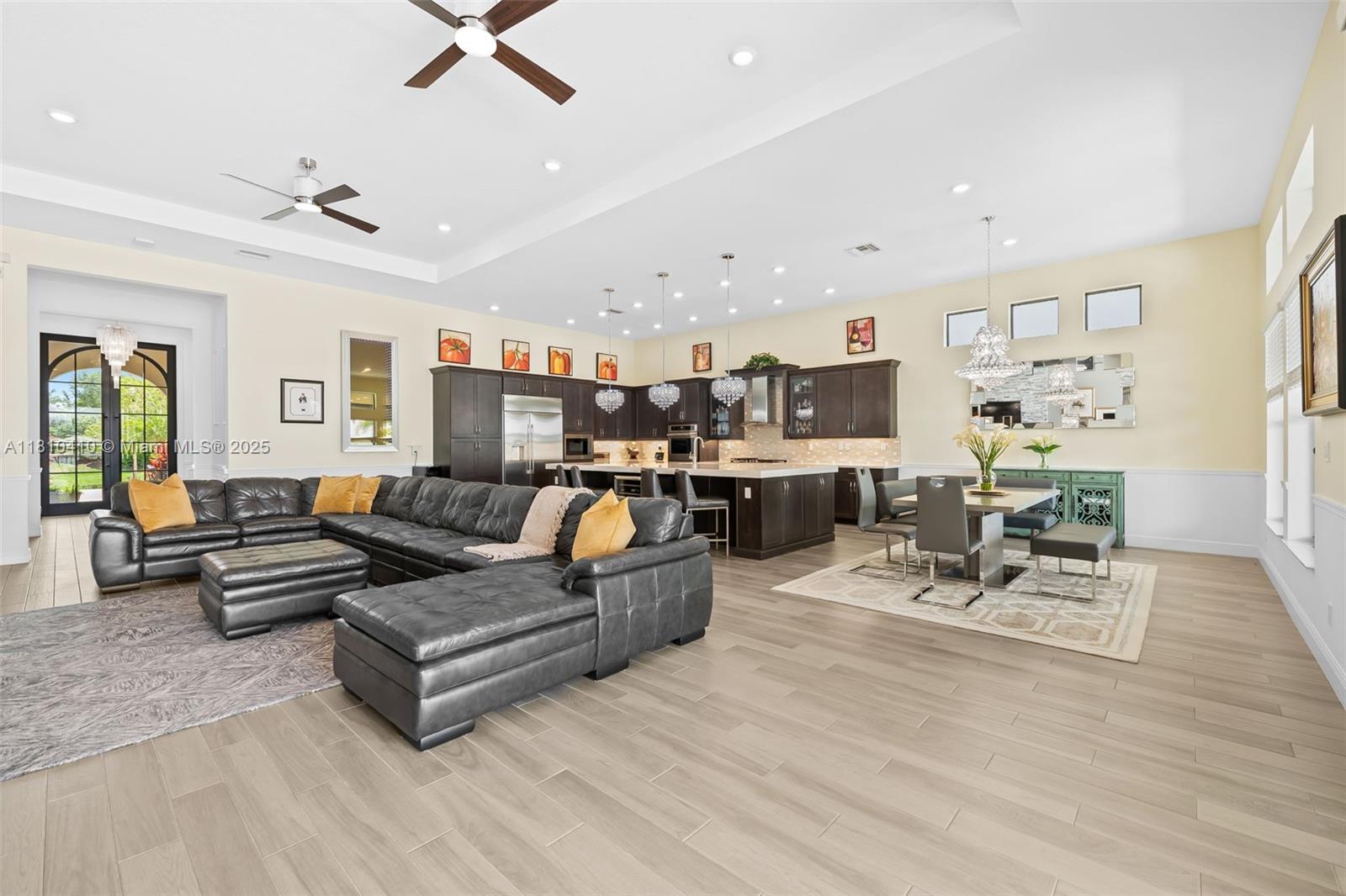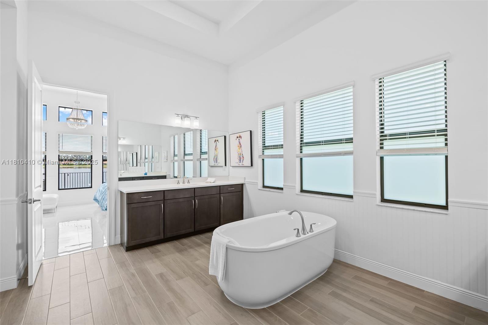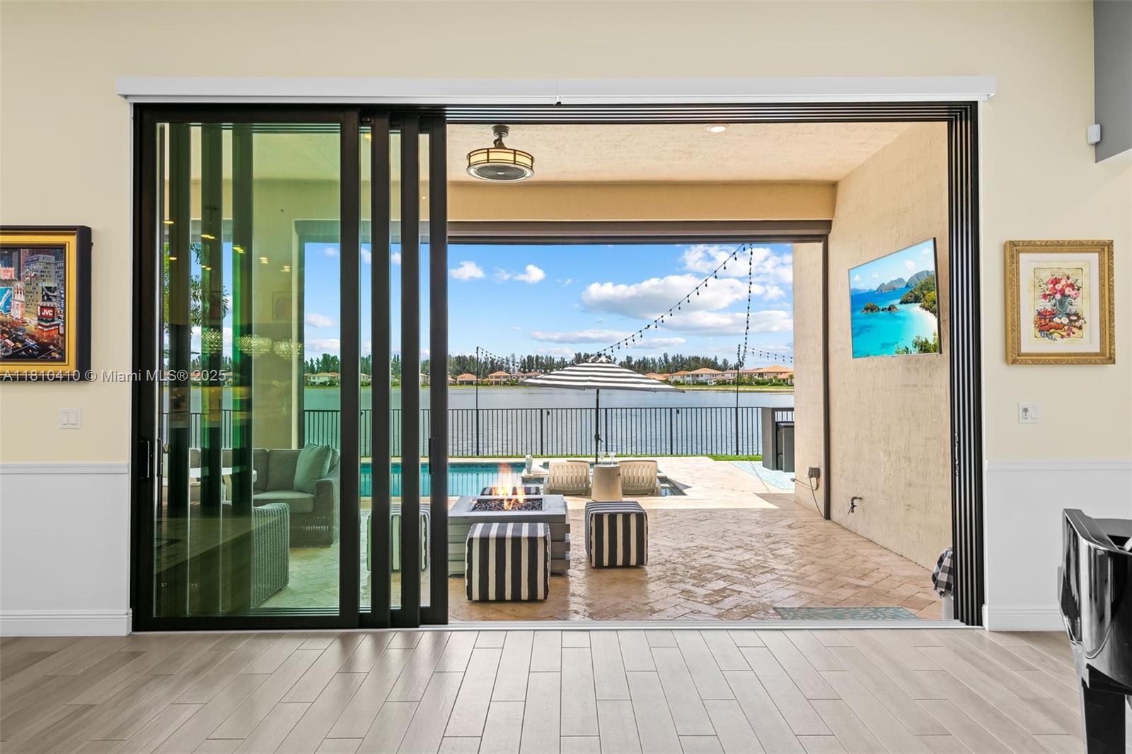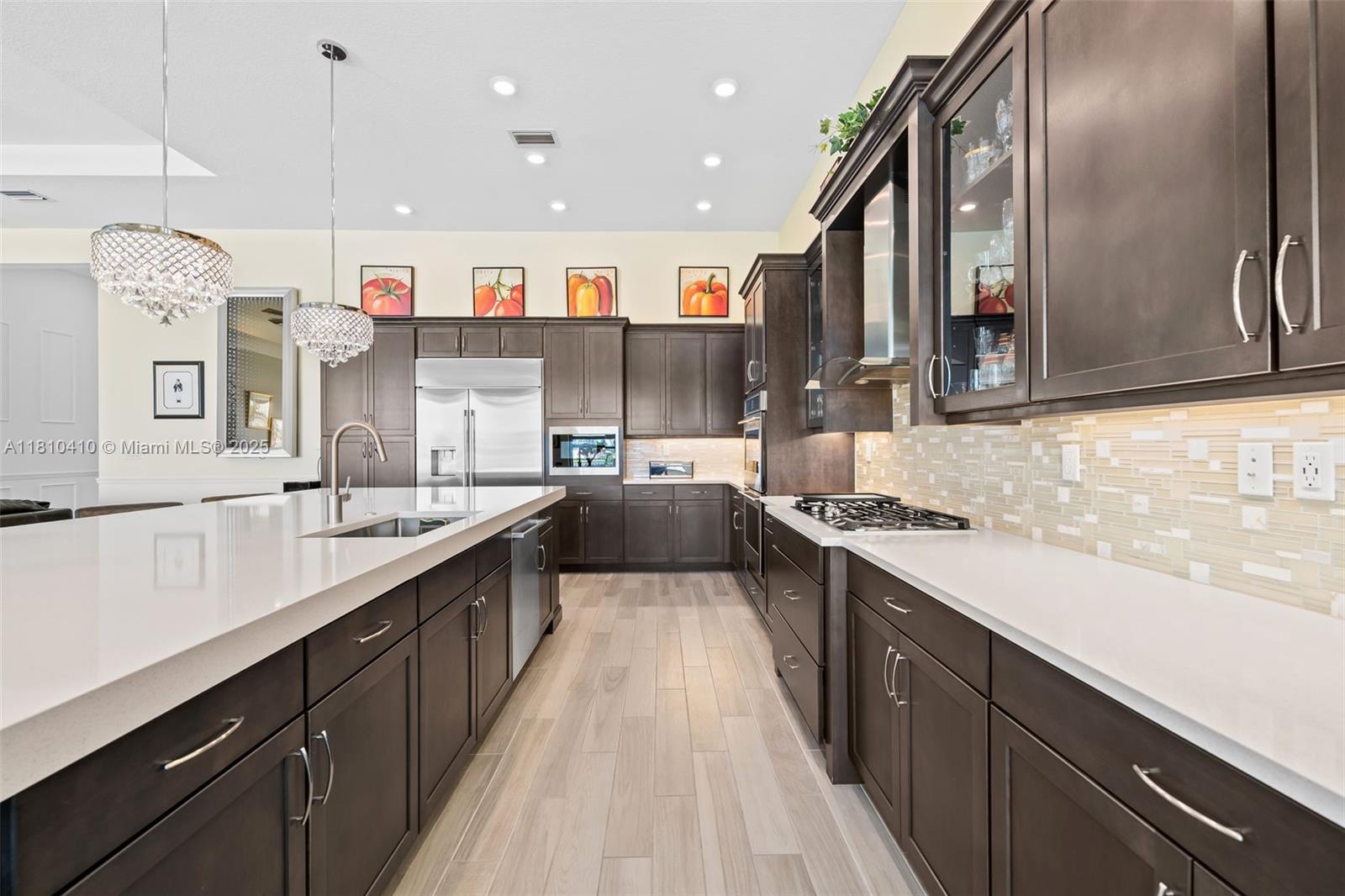 Discover refined elegance in this immaculate 4B/4B Catamaran model in Parkland Bay’s prestigious Waterfront Collection. Nestled on a 69’ lot along the coveted big lake with panoramic water views, this smart home dazzles with 12' ceilings, beautiful wood-look tile flooring, & a chef’s kitchen with quartz countertops, high-end appliances, & quality cabinetry. Smart home features include Alexa integration & Ring Alarm. IMPACT WINDOWS AND NEWER ROOF. Relax in your private saltwater pool with sunshelf & spa, expansive travertine deck, and lush turf yard. With spacious living areas and open-concept floor plan - this home is a true oasis. 3-car split garage with oversized pavered driveway is PERFECT FOR ENTERTAINING! Community Pool & Luxury Amenities! GREAT SCHOOLS. 24/7 guard-gated community.