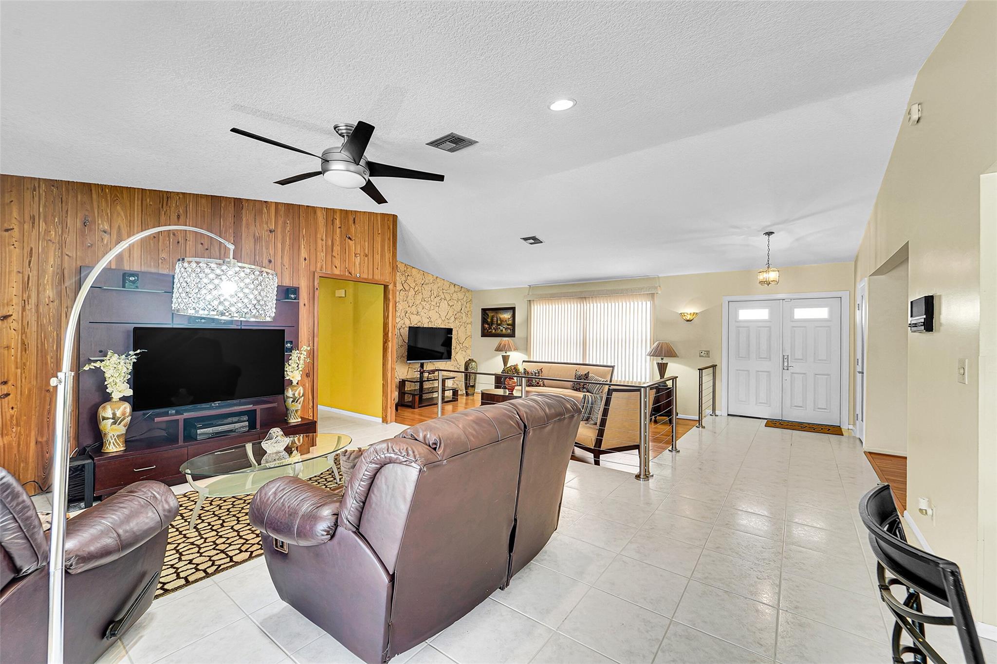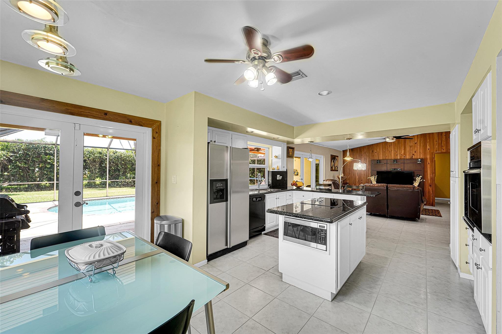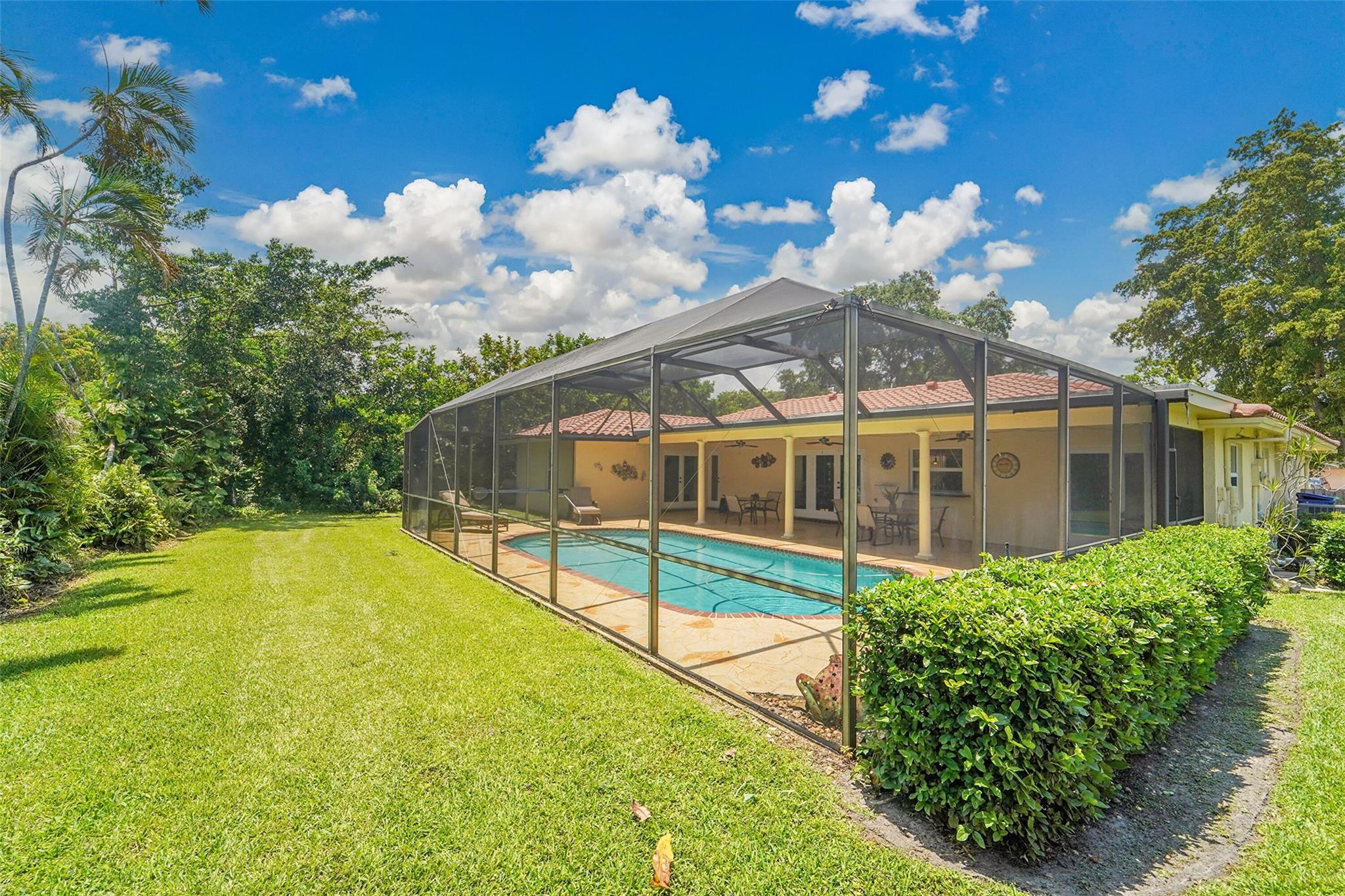 Updated home in the highly desirable Oakwood neighborhood! On over 1/4 acre of land, this home features a large circular driveway for all your family's cars, impact windows, roof (2010)! Vaulted tongue and groove ceilings in the living area. Kitchen features updated cabinets, granite counters w/ island, stainless steel appliances, and eat-in kitchen. Formal dining room can fit the whole family for holidays. Master bedroom features large walk-in closet and doors leading out to pool. All bedrooms good sized. 2nd bathroom also updated. Screened in & remodeled pool area overlooks the large backyard - perfect for pets or kids to run around and enjoy! Move into this home just in time for summer & the new school year!