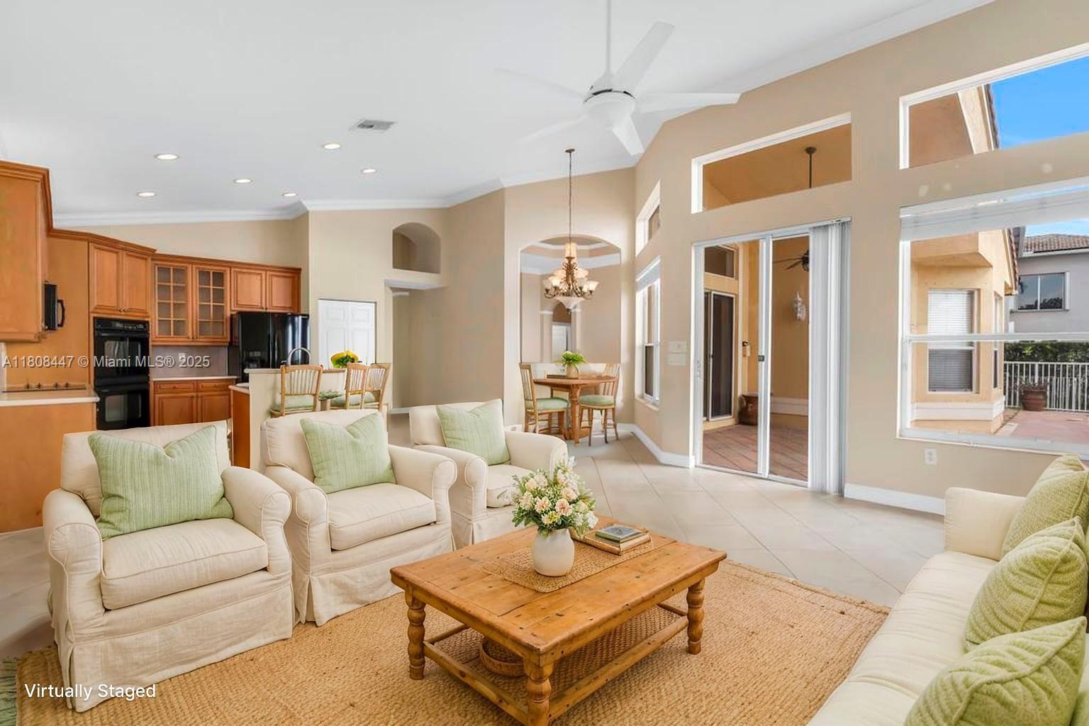 Nestled on a spacious lot along the largest lake in Sunset Lakes, this stunning one-story home offers breathtaking panoramic water views. Enjoy spectacular sunsets each evening from the comfort of your private retreat. This beautifully designed home features 5 bedrooms, 3 full bathrooms, a formal living room, a formal dining room, and an open-concept kitchen with a cozy eat-in area that flows seamlessly into the family room—perfect for both everyday living and entertaining. sunset Lakes offers resort style amenities and is a guard gated community centrally located to shopping, restaurants, schools, and all major highways.