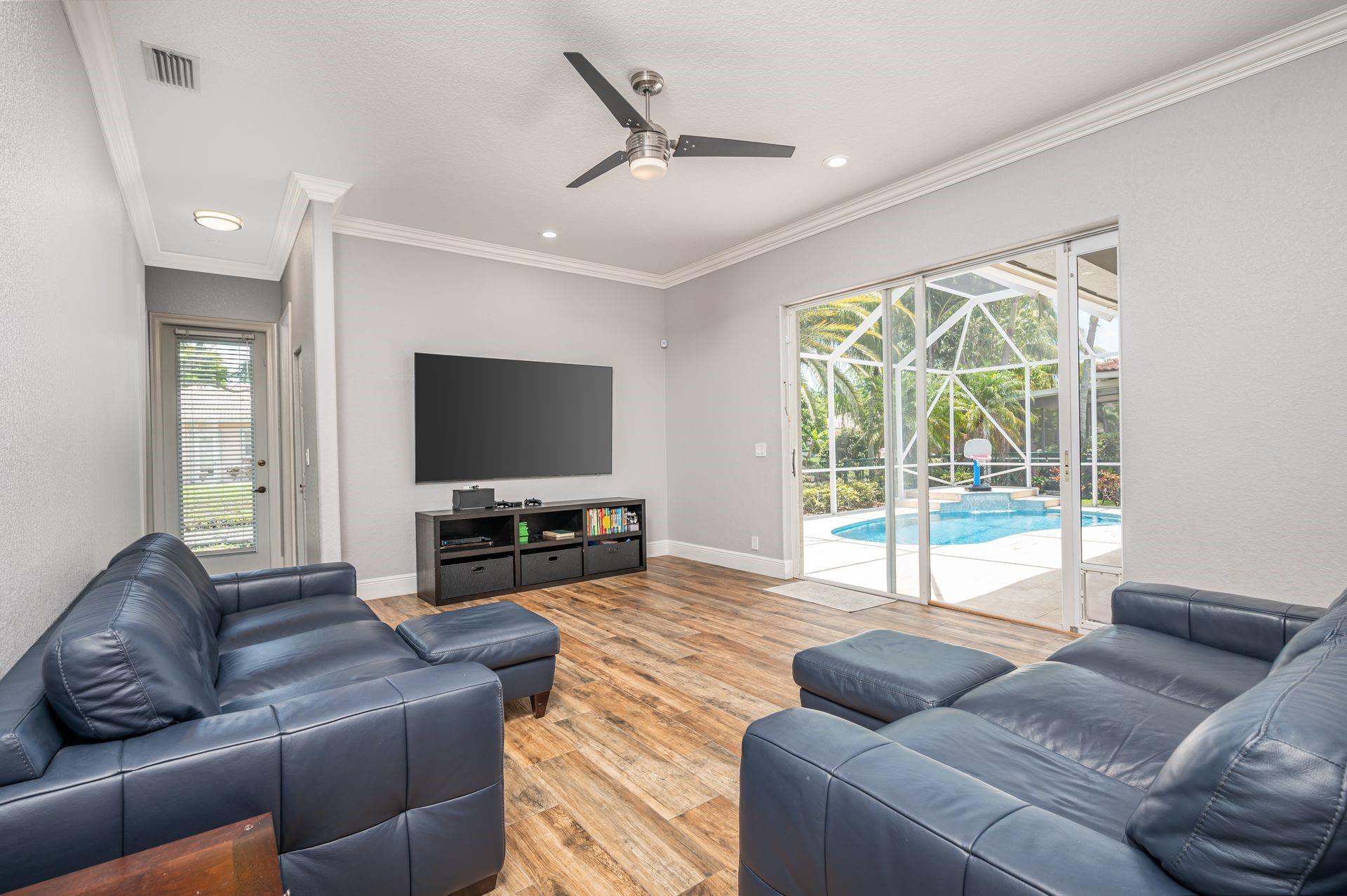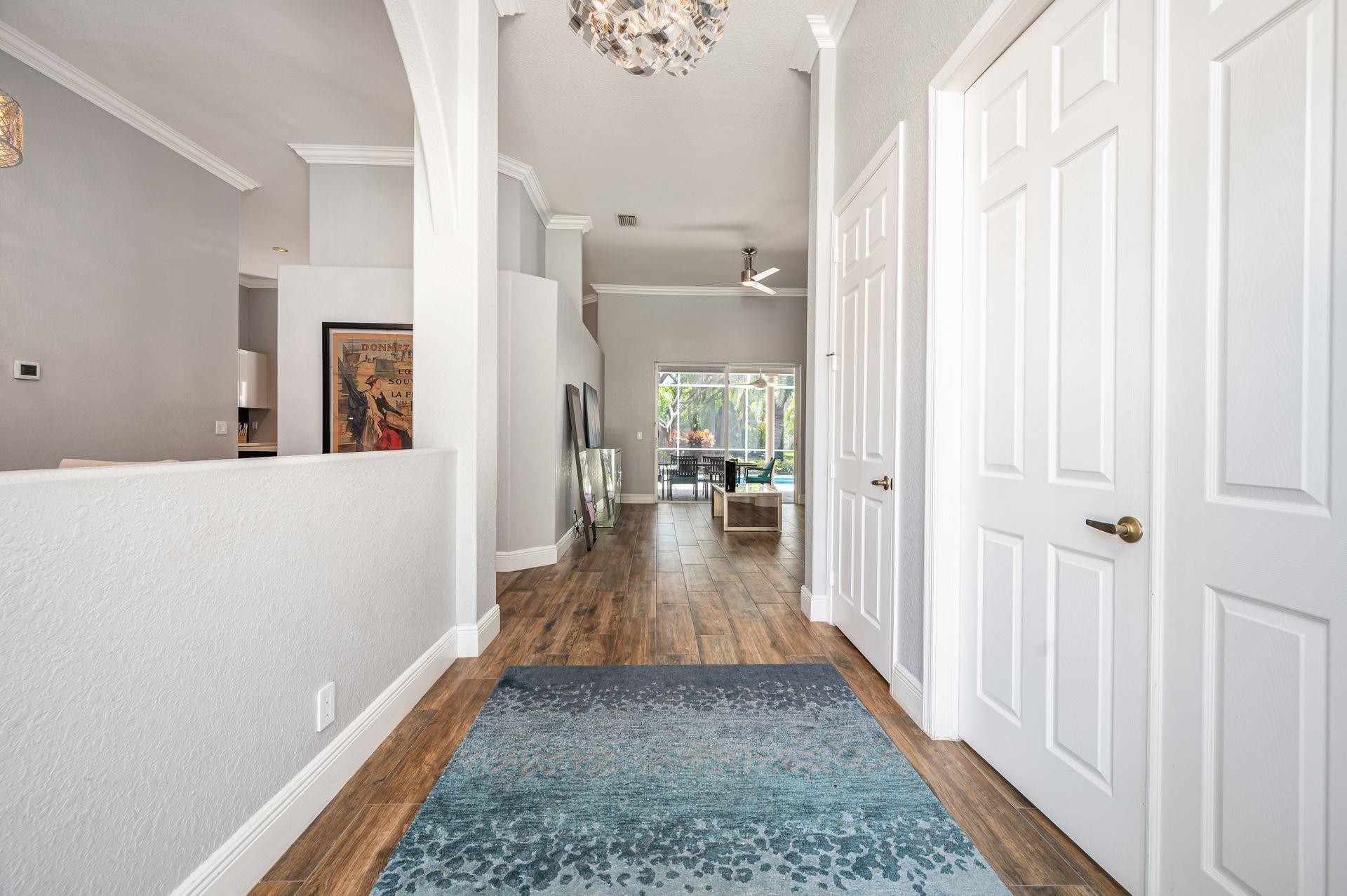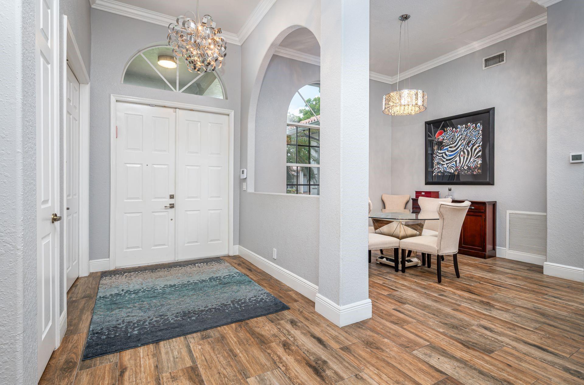 UPDATE! NEW ROOF COMING!!! Discover your dream home in this stunning one-story home offering 4 spacious bedrooms + large office or play room. Perfectly situated on a peaceful cul-de-sac, this property boasts water views and a thoughtfully designed split floor plan that provides both privacy and functionality. Step inside to find soaring high ceilings and sleek porcelain tile floors that flow throughout the home. The updated kitchen is a chef’s delight, featuring modern appliances, elegant lighting fixtures, and stylish finishes. All 3 baths have been beautifully updated and the A/C is brand new! Enjoy indoor-outdoor living with a screened-in pool and patio, perfect for entertaining or relaxing. This home truly has it all-comfort, style, and location.