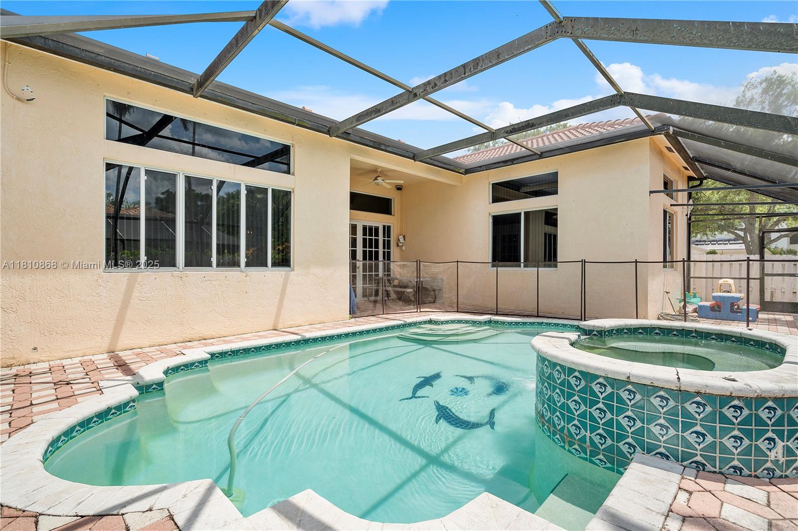 This beautiful 4 bed/3bath Large Corner Lot Home is located in gorgeous Camellia Island in Weston, Fl. Home offers a beautiful heated pool and spa with covered lanai. Open kitchen concept with white cabinetary, tile floors throughout. Roof was replaced in 2015 has brand new AC and water heater. Large master bed and bath and plenty of closet space, 2 car garage. Best A Rated School district, close to hospital, restaurant and local shopping. One of the safest gated communities in Weston, Fl.