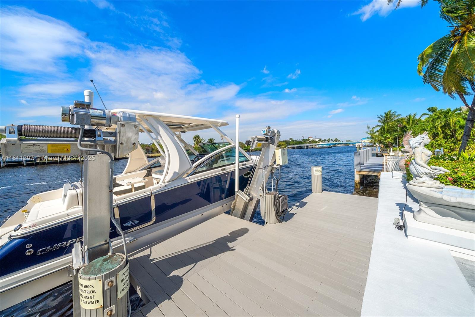 Live the ultimate waterfront lifestyle! This upgraded 3BR/2.5BA coastal retreat sits on the highly desirable east side of the Intracoastal with no fixed bridges and fast access to the ocean. Whether you're an avid boater or just love the water, the brand-new dock and 20,000-lb boat lift make every day feel like a vacation. Step inside to soaring ceilings, fresh finishes, and elegant marble hardscaping that wraps the driveway, backyard, and both sides of the home—designed for beauty and easy maintenance. The new galvanized roof and lush landscaping add curb appeal and peace of mind. All this, just minutes from the beach, fine dining, and top-tier shopping. This is more than a home—it’s a lifestyle waiting for you in the heart of Pompano Beach.