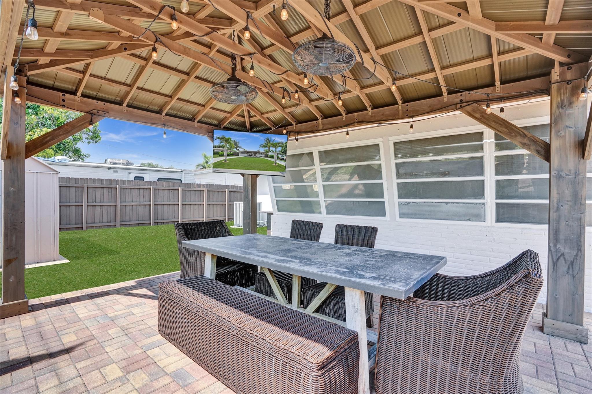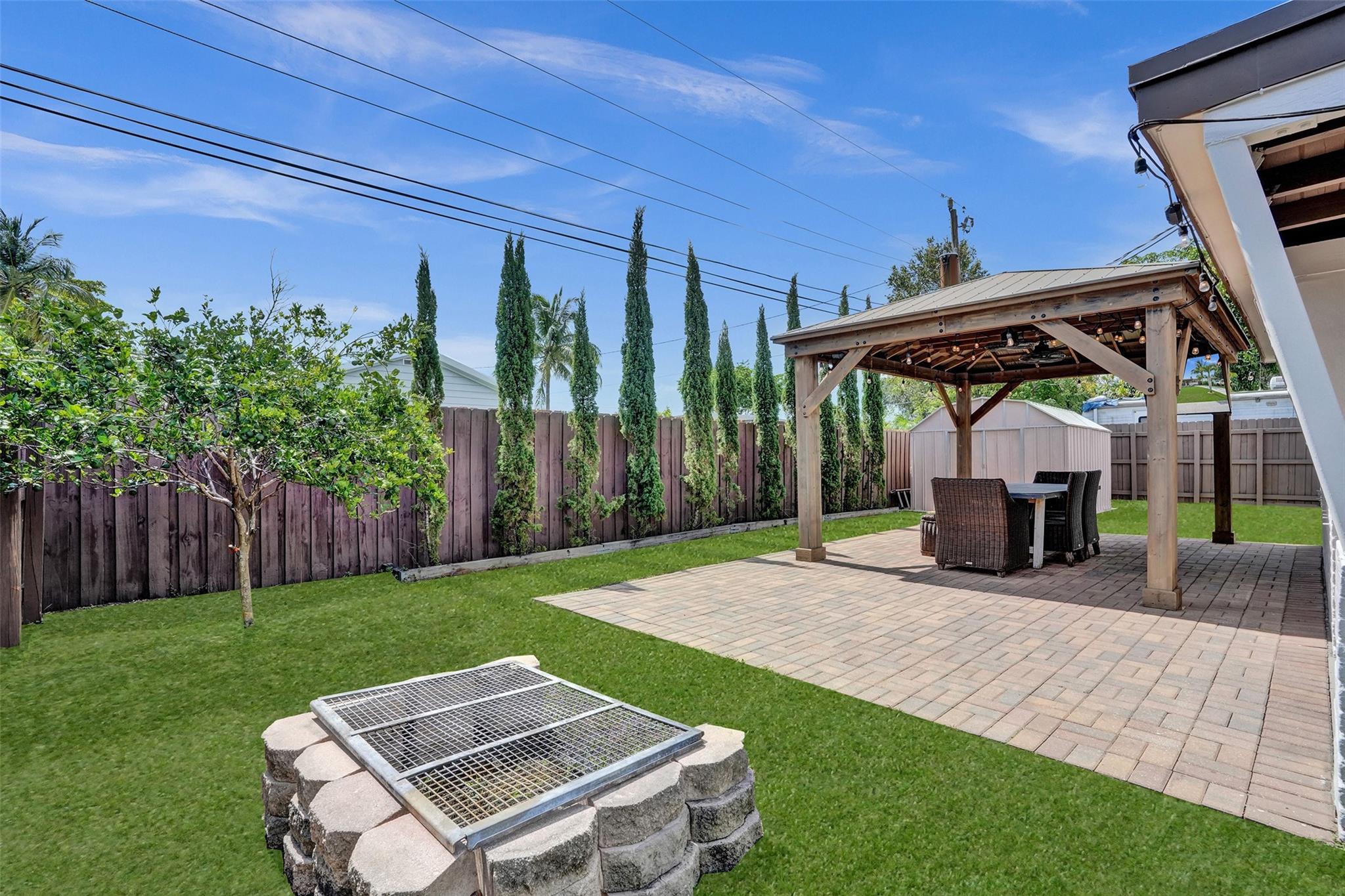 • Exterior Feature:Barbecue, Fence, FruitTrees, Lighting, RoomForPool, Shed, StormSecurityShutters