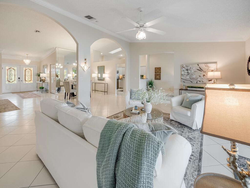 Elegant, Inviting, Well-Maintained Home - This property standouts from the competition. Lovely, spacious home boasts tranquil, panoramic waterviews! Volume ceiling and arched passages add dramatic flair. Largest model in Summer Chase with over 2,300 +sf under air. Updated Kitchen with SS appliances & skylight opens to large family room. Living Room with sliding glass doors to covered patio. Owner's Ensuite bath features whirlpool soaking tub, separate shower, dual sink vanity & his & her closets. Separate laundry room. Tile/Vinyl flooring throughout. Home has been professionally staged and is sure to impress buyers!