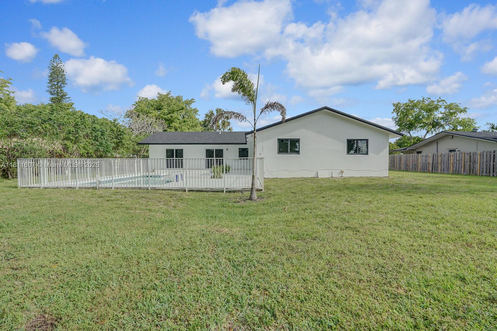 One Story Pool Home, in Plantation Country Club Estates, 4 Bedroom/ 2 Bathroom, 2 Car Garage and Pool Wood Fenced Private Backyard Newly Resurfaced Pool and New Pool Deck, brand New A/C Units And approx. 1/2 Acres land. This Beautiful Home offers peace of mind and timeless appeal with beautiful marble Floors, nice new designed Kitchen with all new stainless appliances, Impact Windows and Doors, brand new Roof & Beautiful wood blinds included. 2 blocks from country club golf course.