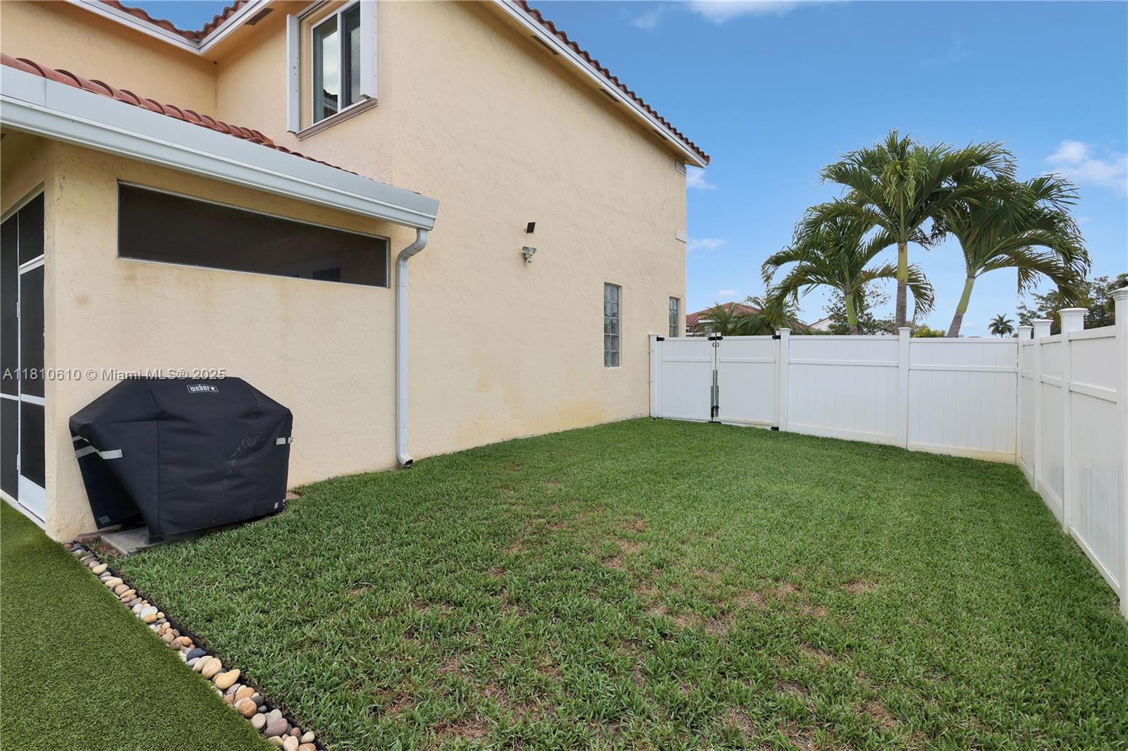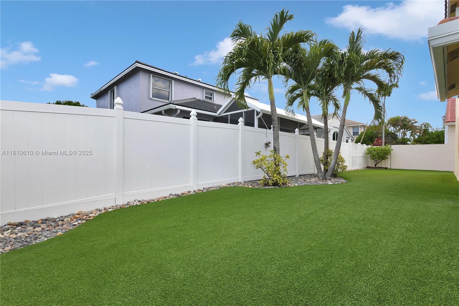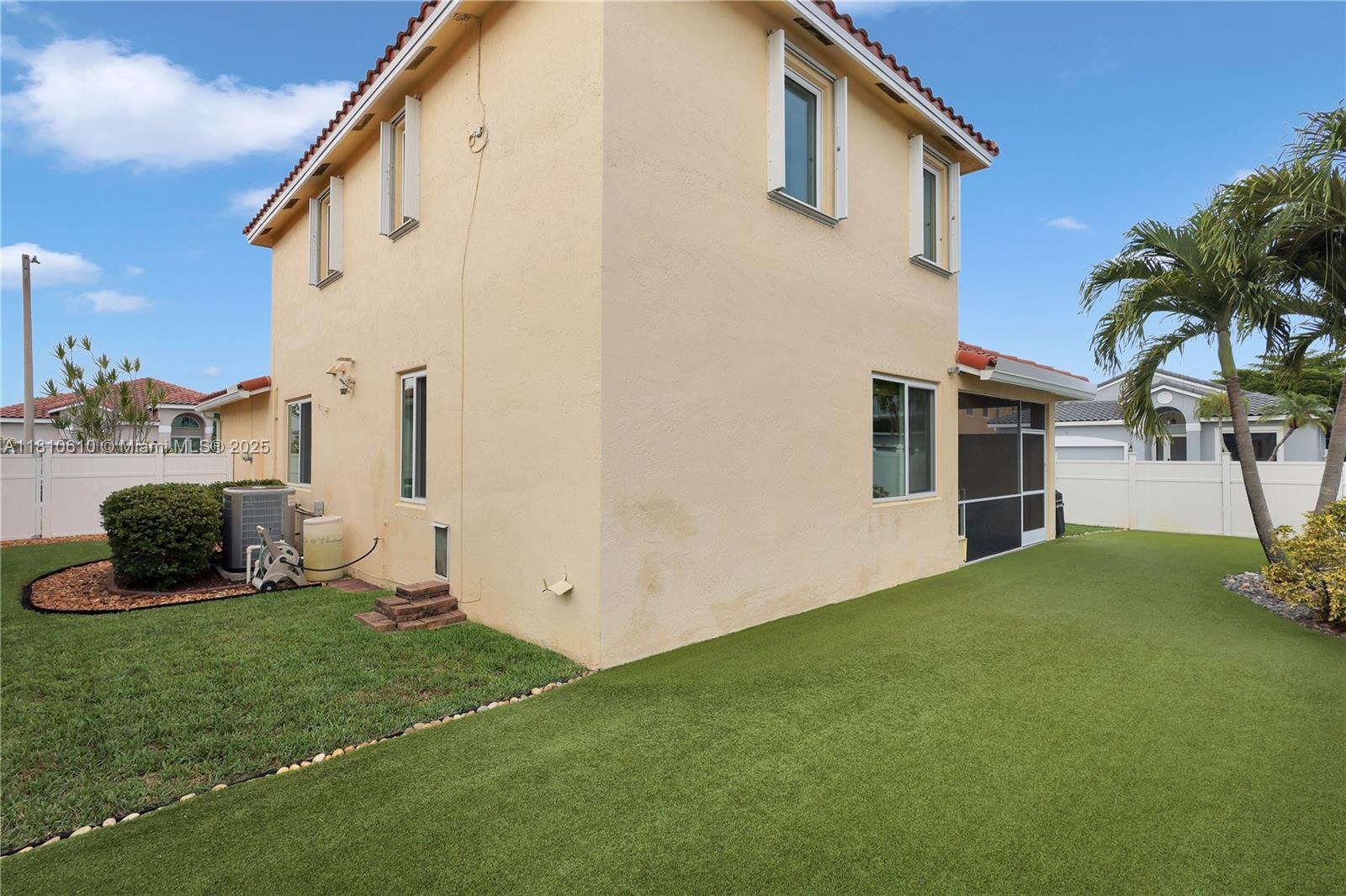 Incredible 4 bedroom, 2.5 bathroom home in the desirable Parkside at Spring Valley Community, seated on a spacious corner lot. Home has been beautifully maintained with tile floors throughout, custom wood cabinets and granite countertops in the kitchen, impact windows and doors, hurricane shutters. Recent updates include Roof replaced in 2017, HVAC replaced in 2010, Plumbing repiped in 2021. CBS first and second floor for extra soundproofing. Beautiful screened porch opens to a large backyard with astro turf and grass and a 6 ft vinyl privacy fence, providing a perfect space for pets, family, and friends. Amenities include community pool and 24 hr guarded security. Conveniently located in a highly rated school zone, and close to shops, restaurants, and major roads.