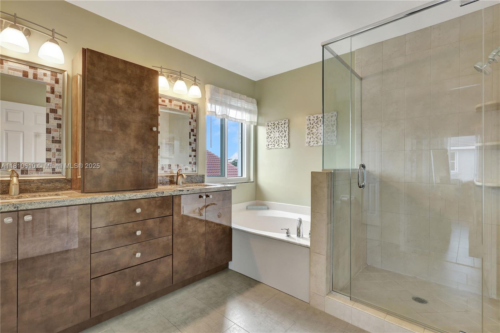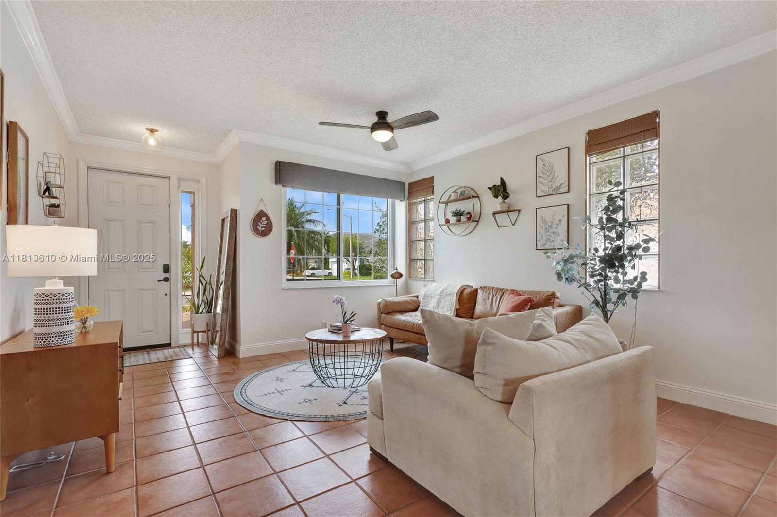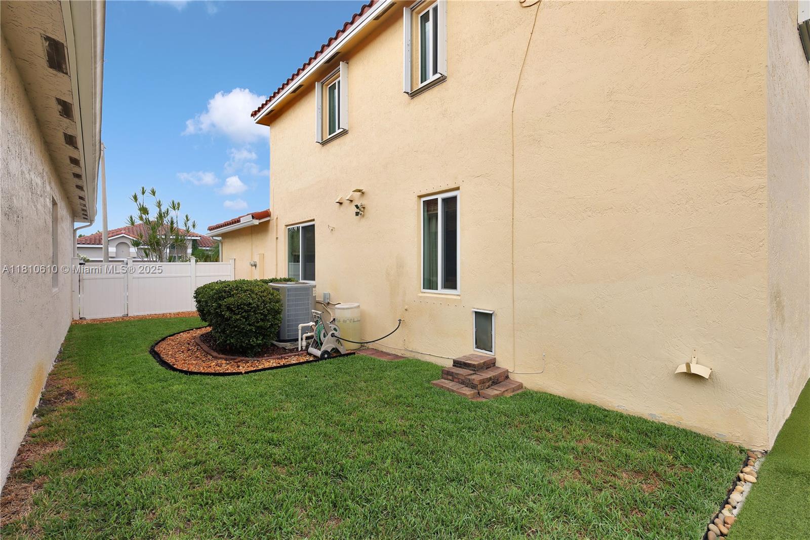 Incredible 4 bedroom, 2.5 bathroom home in the desirable Parkside at Spring Valley Community, seated on a spacious corner lot. Home has been beautifully maintained with tile floors throughout, custom wood cabinets and granite countertops in the kitchen, impact windows and doors, hurricane shutters. Recent updates include Roof replaced in 2017, HVAC replaced in 2010, Plumbing repiped in 2021. CBS first and second floor for extra soundproofing. Beautiful screened porch opens to a large backyard with astro turf and grass and a 6 ft vinyl privacy fence, providing a perfect space for pets, family, and friends. Amenities include community pool and 24 hr guarded security. Conveniently located in a highly rated school zone, and close to shops, restaurants, and major roads.