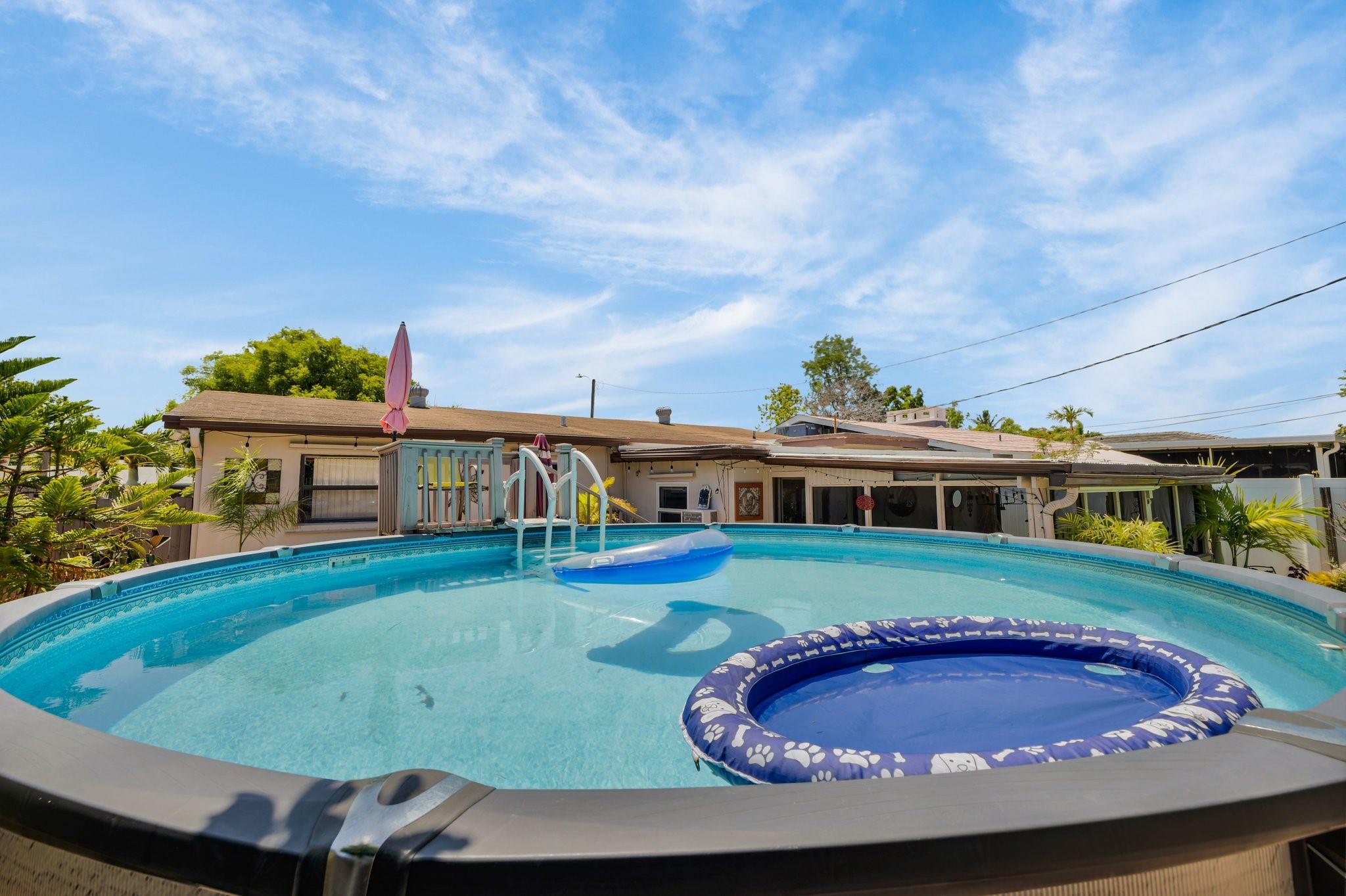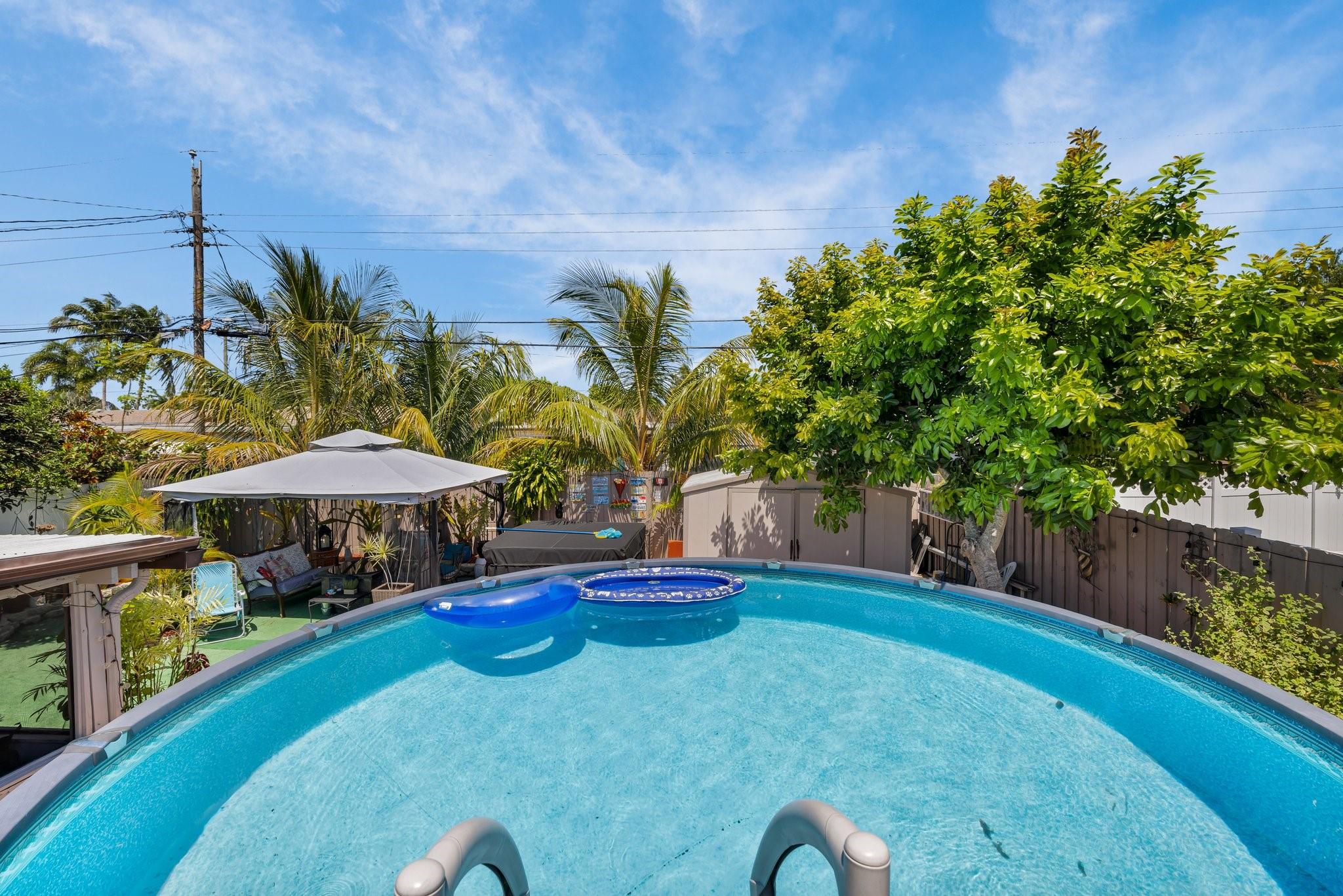 Versatile and Move-In Ready! This charming home features impact windows, a new A/C unit (1 year old), a 2-month-old water heater, giving you peace of mind for years to come. Inside, enjoy laminate flooring throughout, tile in select areas, and a dedicated laundry room for added convenience. The outdoor space is built for relaxation and entertaining, with a covered patio, paved backyard, jacuzzi, and above-ground pool—plus a covered seating area that’s perfect for gatherings. The flexible layout allows you to use the home as a 2-bedroom, 1-bath, a 1-bedroom, 1-bath with private entrance, or a 3-bedroom, 2-bath setup—ideal for in-laws, guests, or additional rental income. Don’t miss this unique opportunity—schedule your showing today!