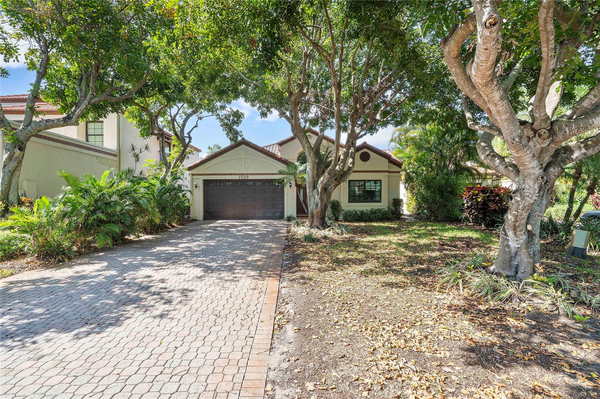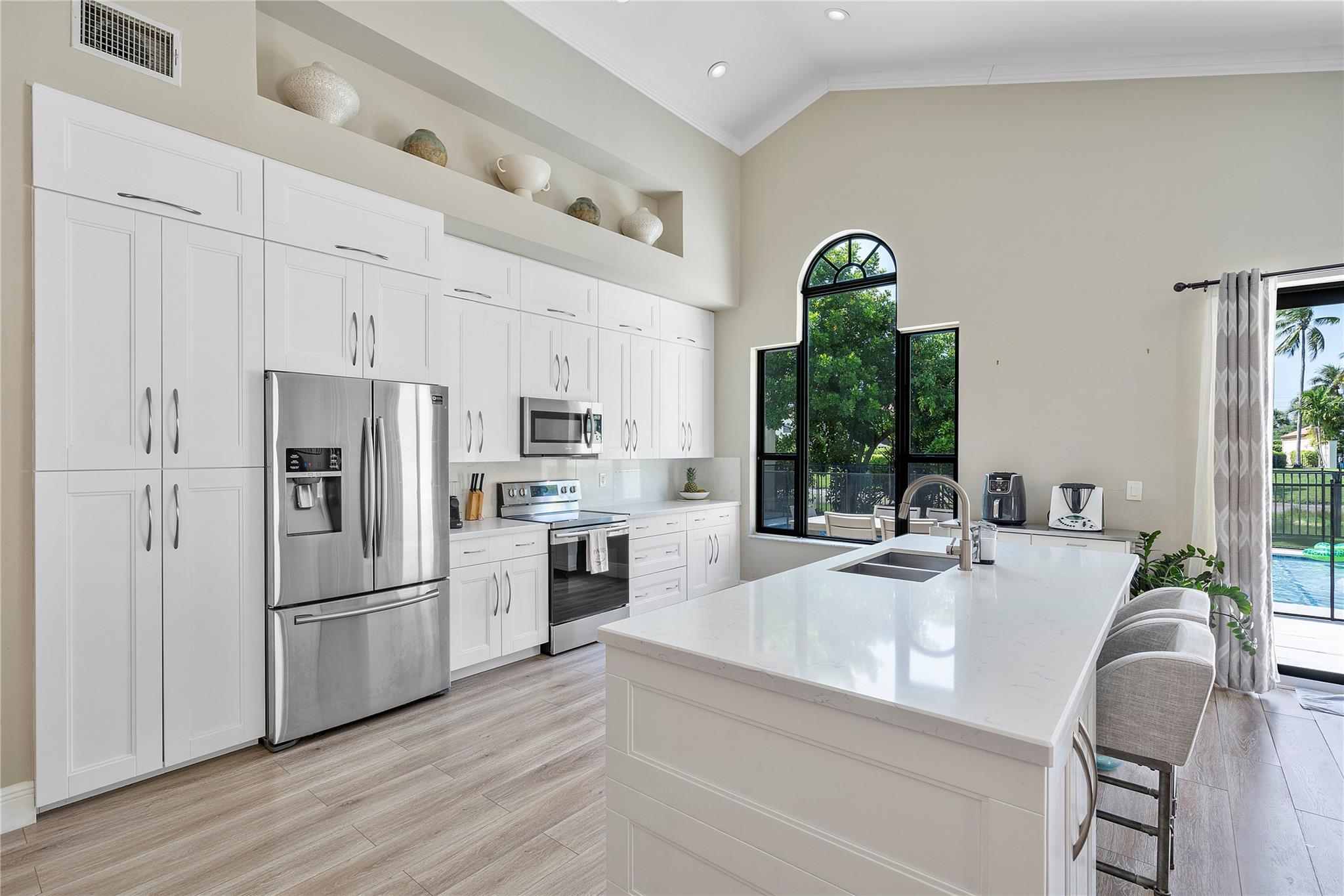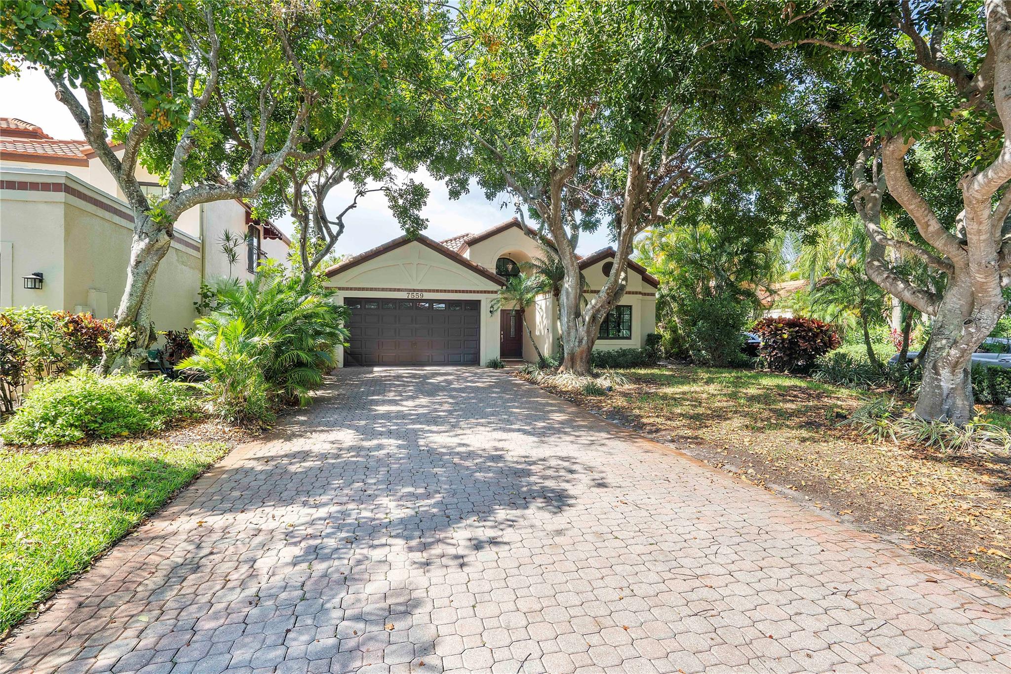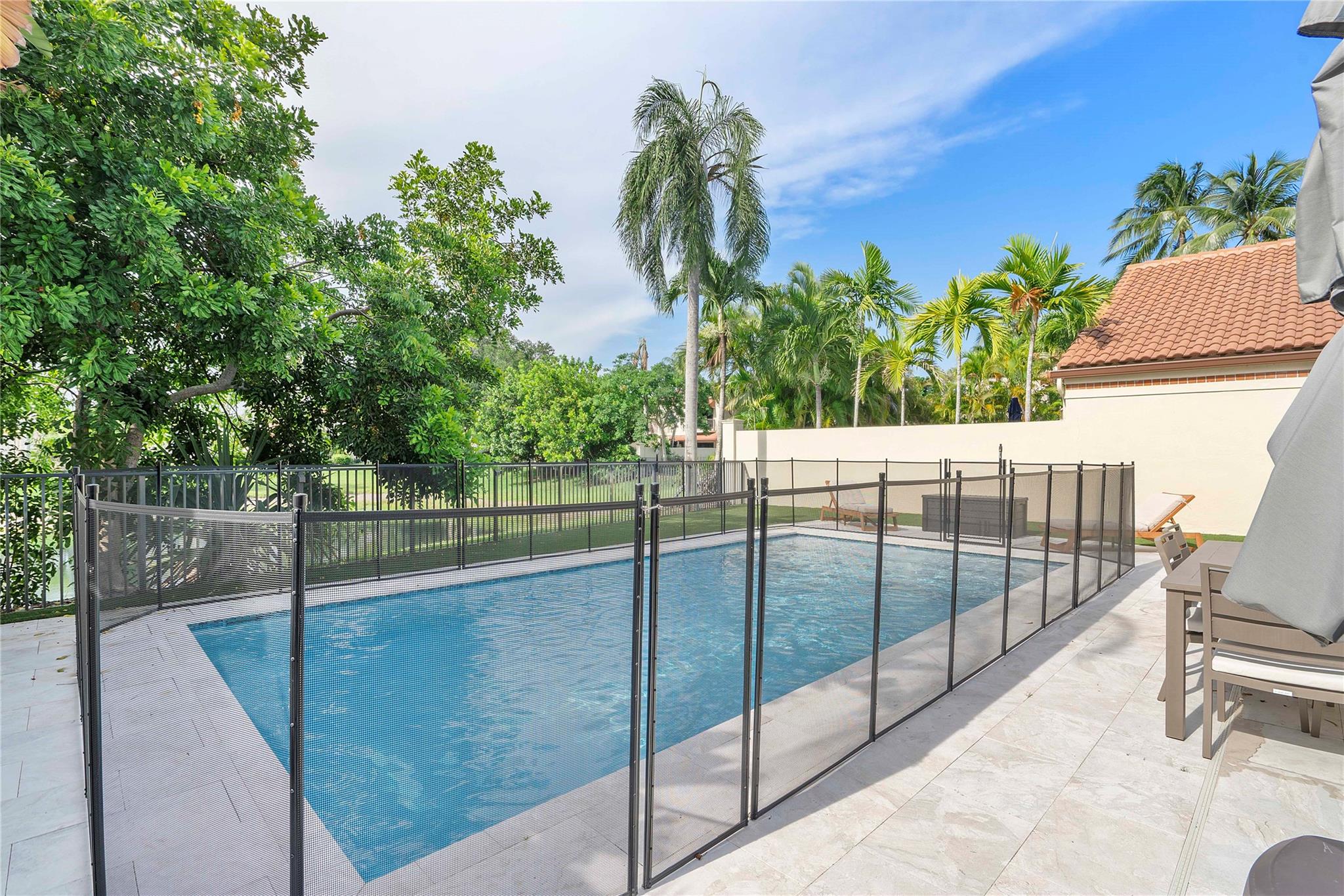 This beautifully renovated 3-bedroom, 2-bathroom home is located in the highly sought-after community of Valencia at Boca Pointe. The roof is from 2009, hvac system was replaced in 2022. Interior features an expansive kitchen with white wood cabinetry, sleek white quartz countertops, and premium stainless steel appliances, high-end laminate flooring throughout and upgraded marble bathrooms by Porcelanosa, including a luxurious master bath with a bidet. The home boasts smooth wall and ceiling finishes with crown moldings and wainscot. Impact windows and doors installed in 2020. The private backyard oasis includes a heated, saltwater pool built in 2023 by Van Kirk, with an expansive marble deck, fully fenced yard that features artificial turf throughout the rear outdoor space done in 2023.