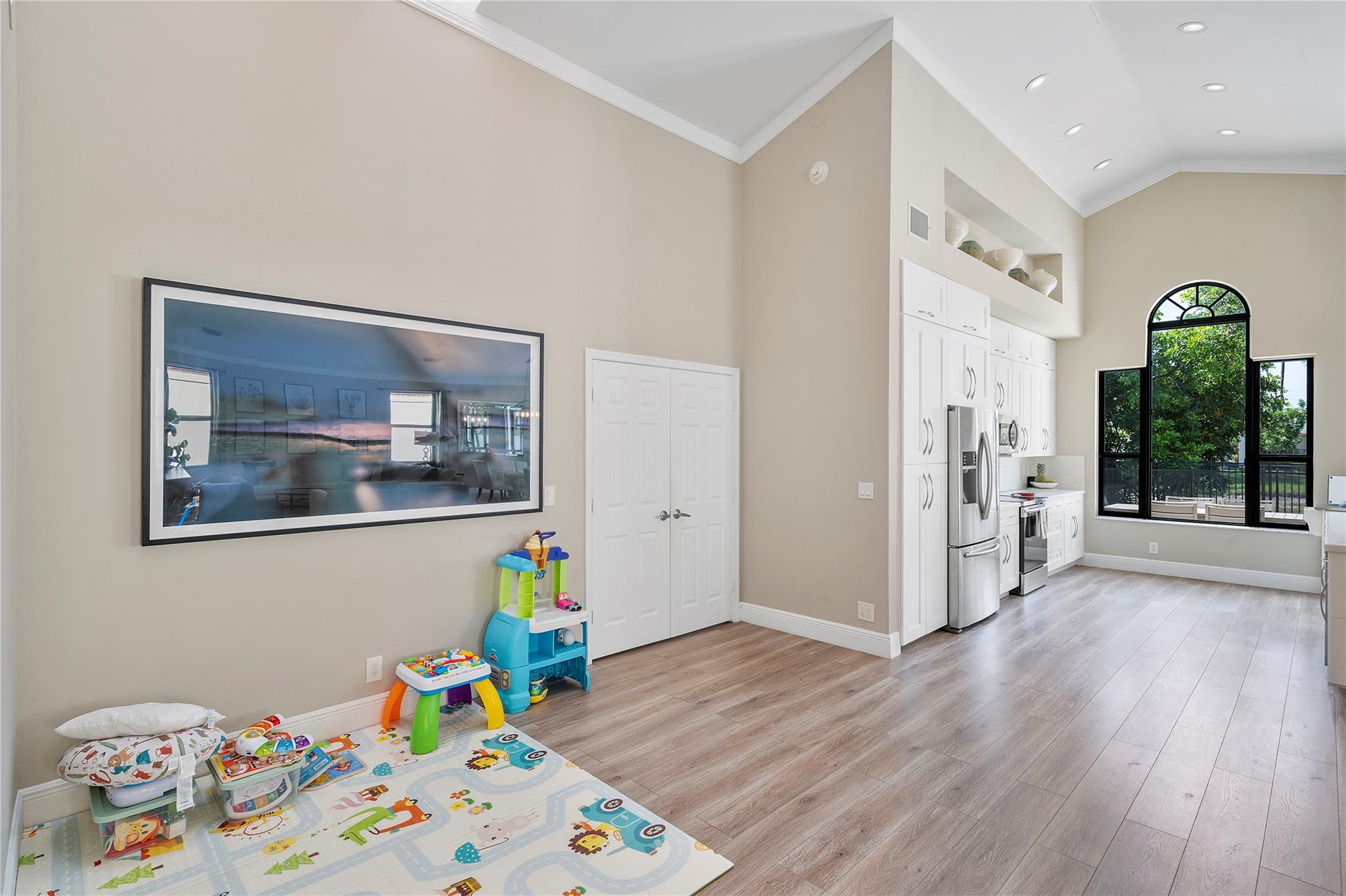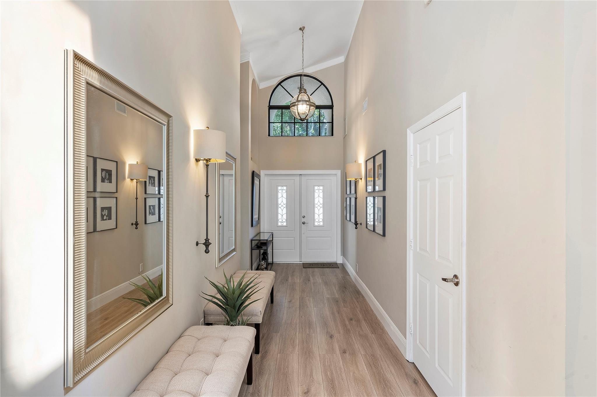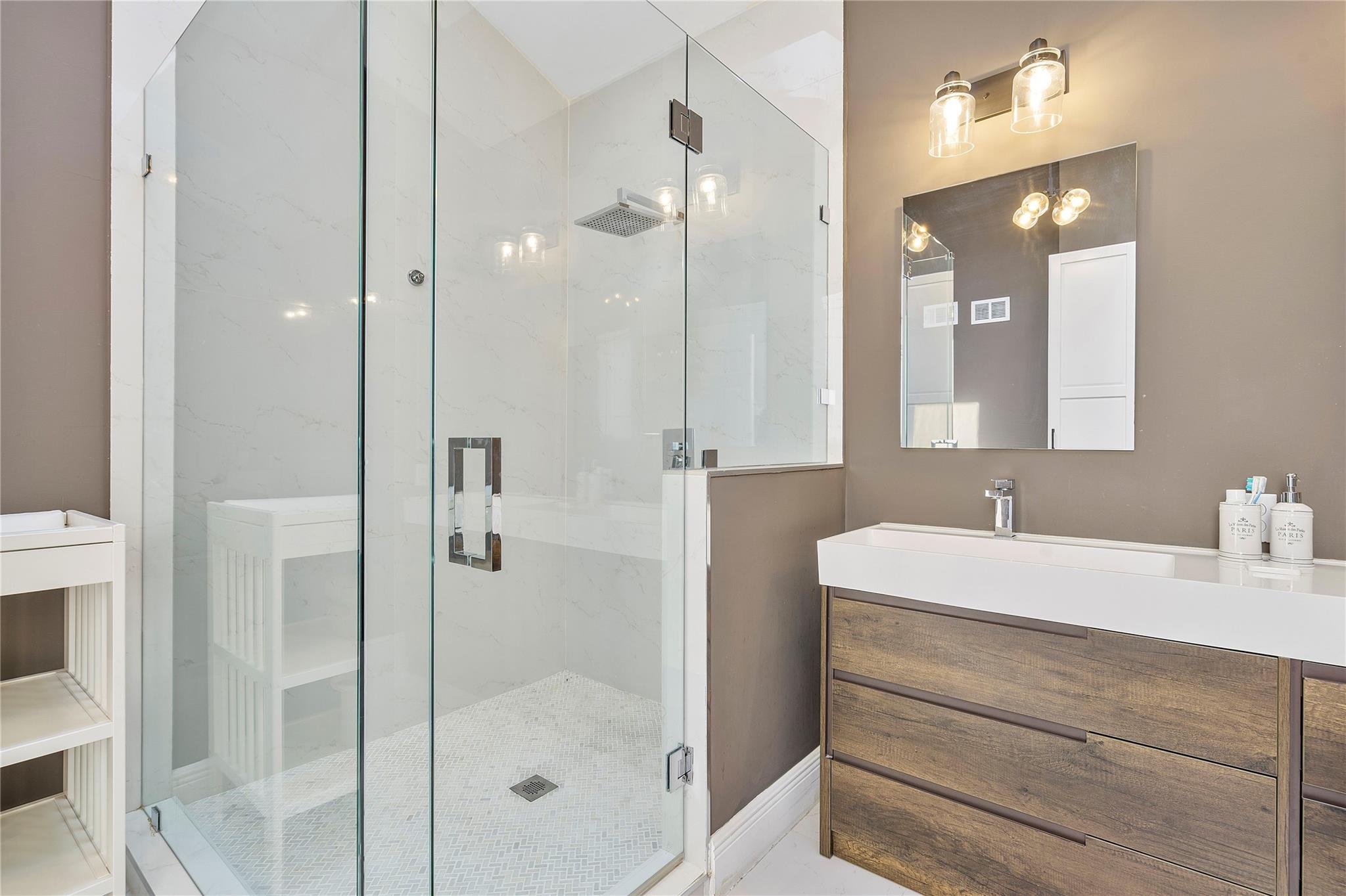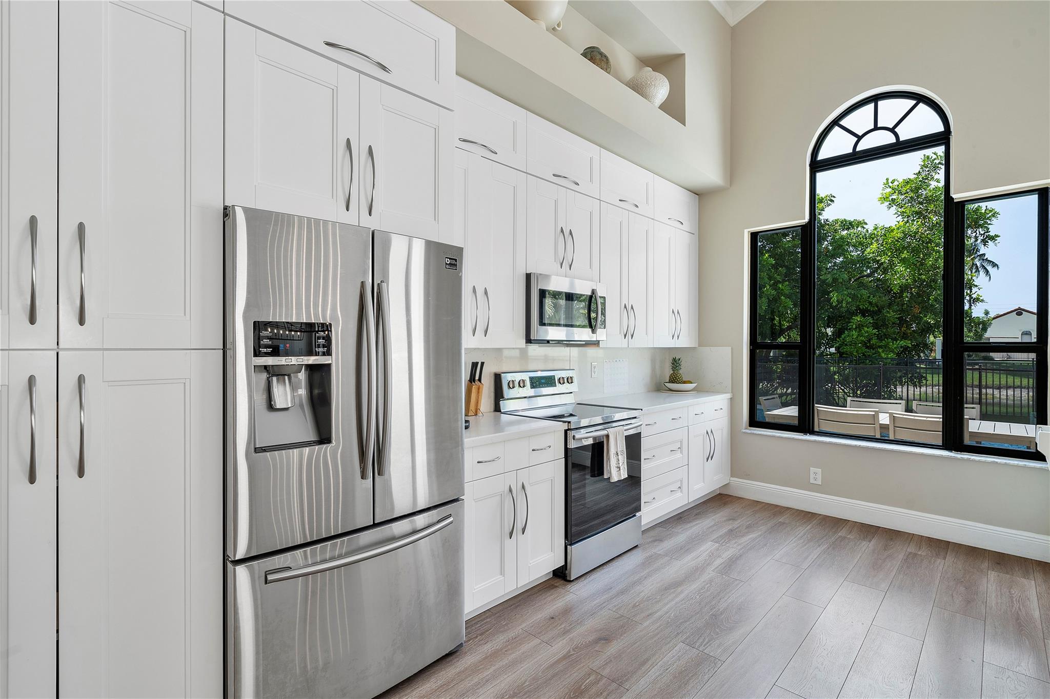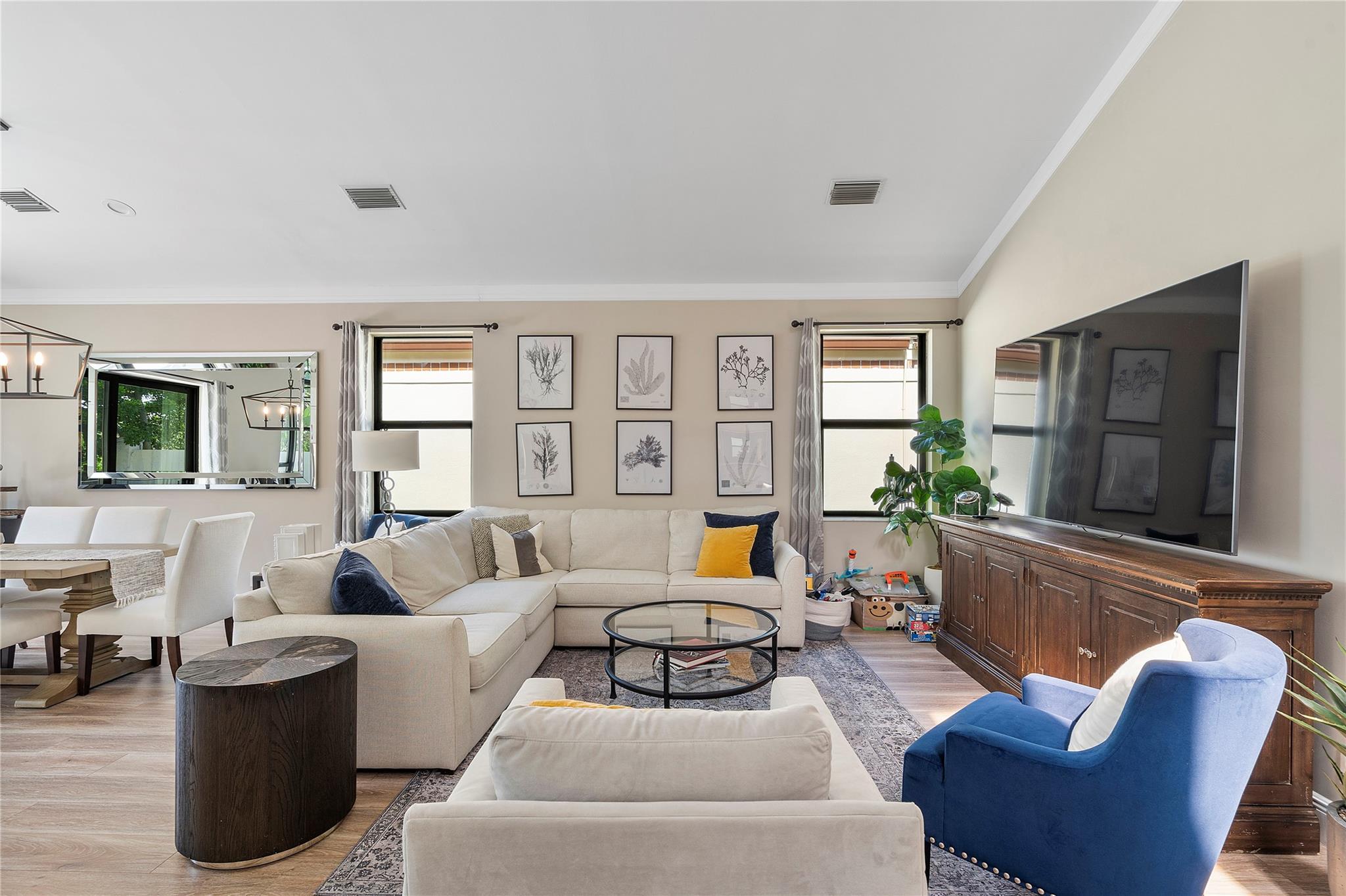 This beautifully renovated 3-bedroom, 2-bathroom home is located in the highly sought-after community of Valencia at Boca Pointe. The roof is from 2009, hvac system was replaced in 2022. Interior features an expansive kitchen with white wood cabinetry, sleek white quartz countertops, and premium stainless steel appliances, high-end laminate flooring throughout and upgraded marble bathrooms by Porcelanosa, including a luxurious master bath with a bidet. The home boasts smooth wall and ceiling finishes with crown moldings and wainscot. Impact windows and doors installed in 2020. The private backyard oasis includes a heated, saltwater pool built in 2023 by Van Kirk, with an expansive marble deck, fully fenced yard that features artificial turf throughout the rear outdoor space done in 2023.