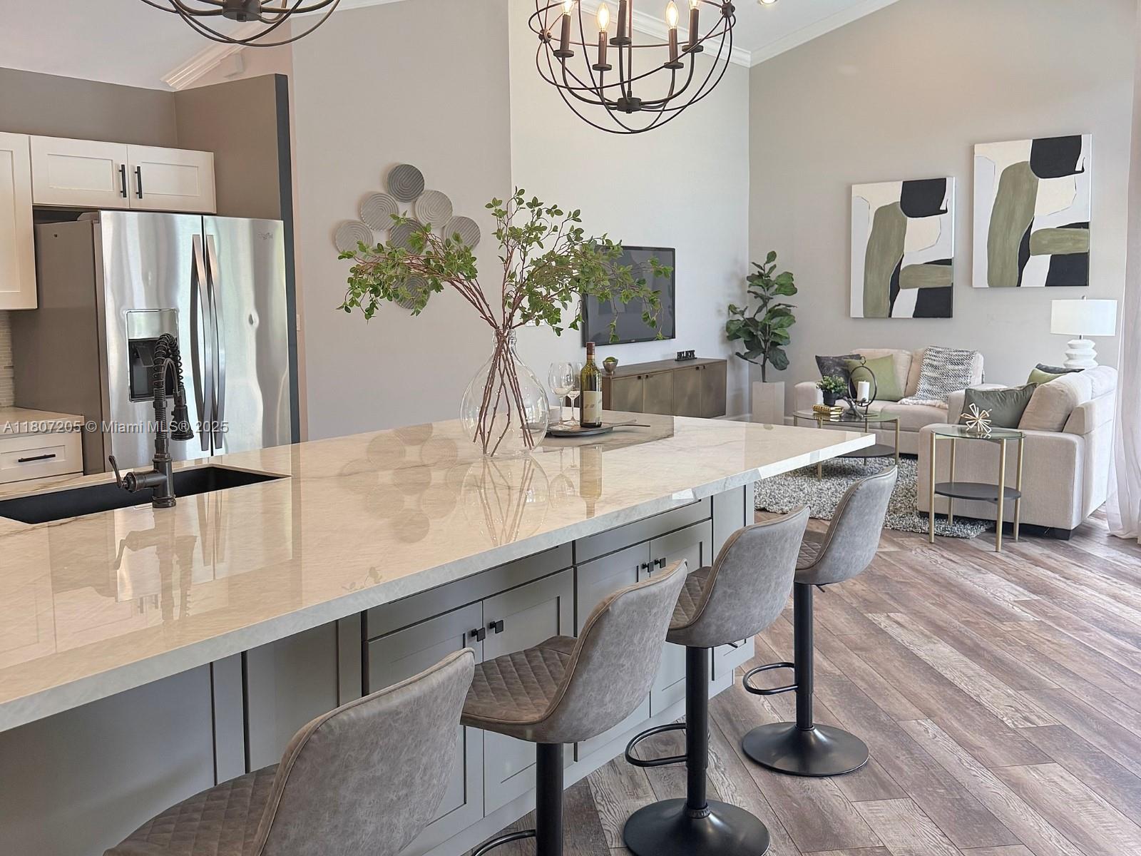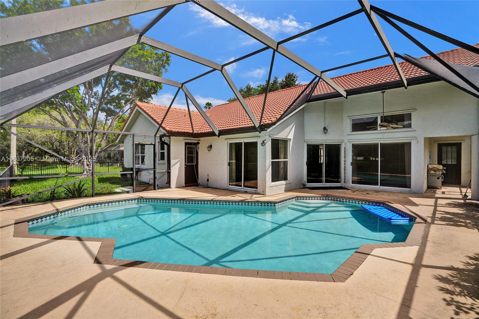 Enjoy serene lake views from this renovated 4 BD, 2.5 BT home in The Oaks II at Country Isles. The home features a screened-in pool and spa, set on an oversized lot, perfect for outdoor relaxation. The gourmet kitchen, updated in 2021, 10x5 center island, porcelain countertops, SS appliances, and a wall oven. Vaulted ceilings and luxury vinyl wood-look flooring flow through the open-concept living areas. Split floor plan offers privacy, with wood flooring in all bedrooms. Additional highlights include new AC (2025), plantation shutters, crown molding, and renovated bathrooms featuring double sinks and stone countertops. Home’s interior is bright and airy, with views of the pool, lake, and lush landscaping. Located within walking distance to Weston Town Center, parks, and local schools.