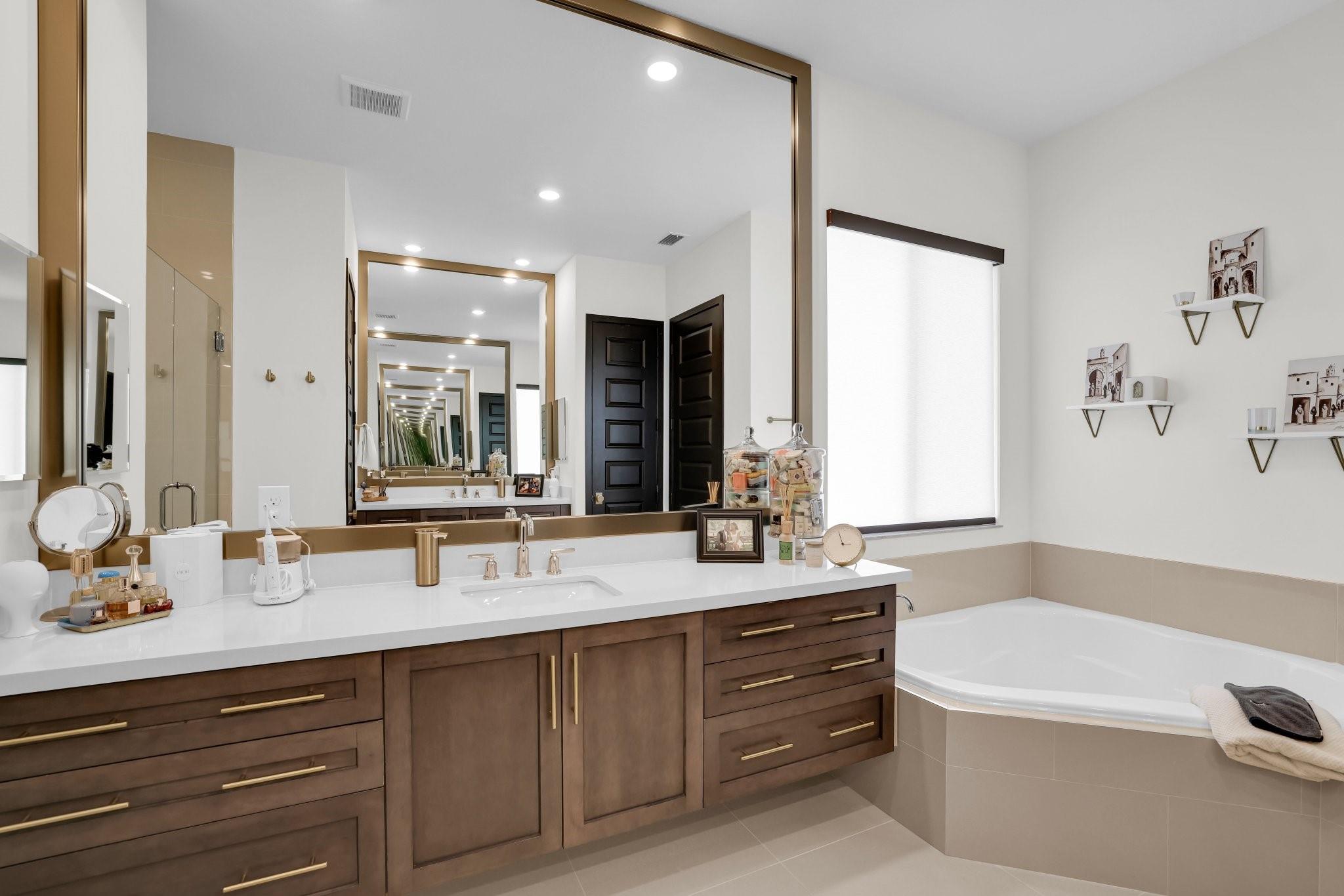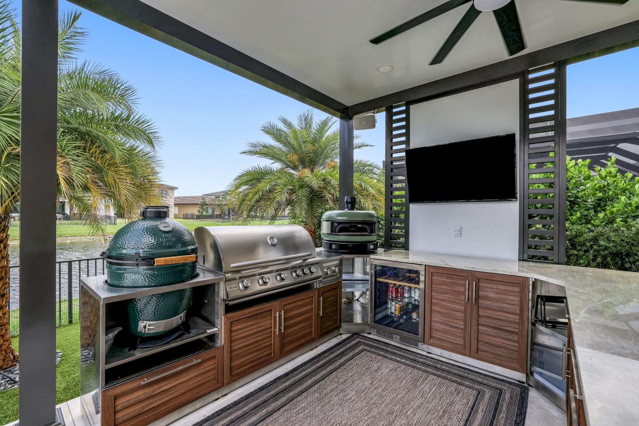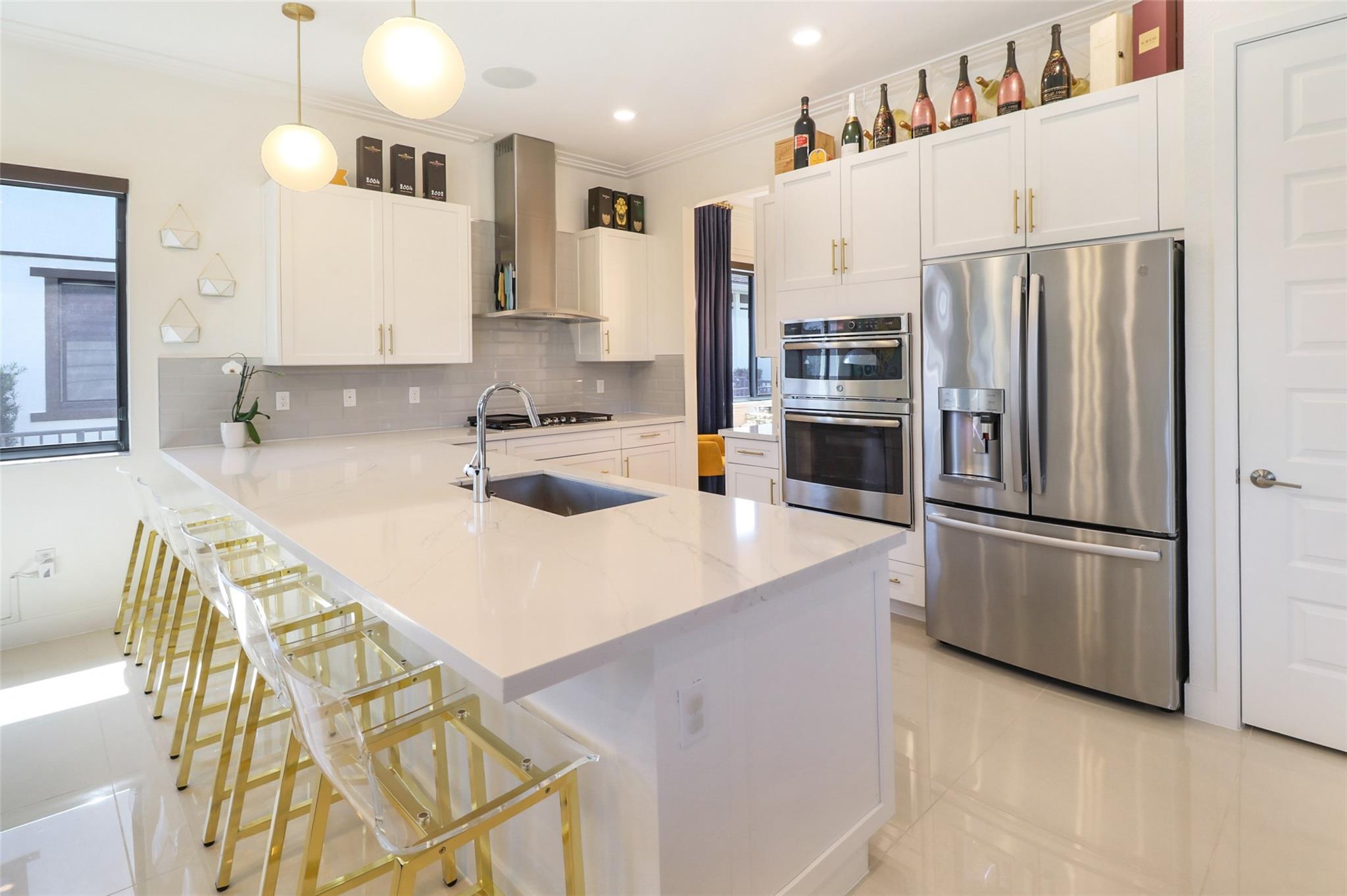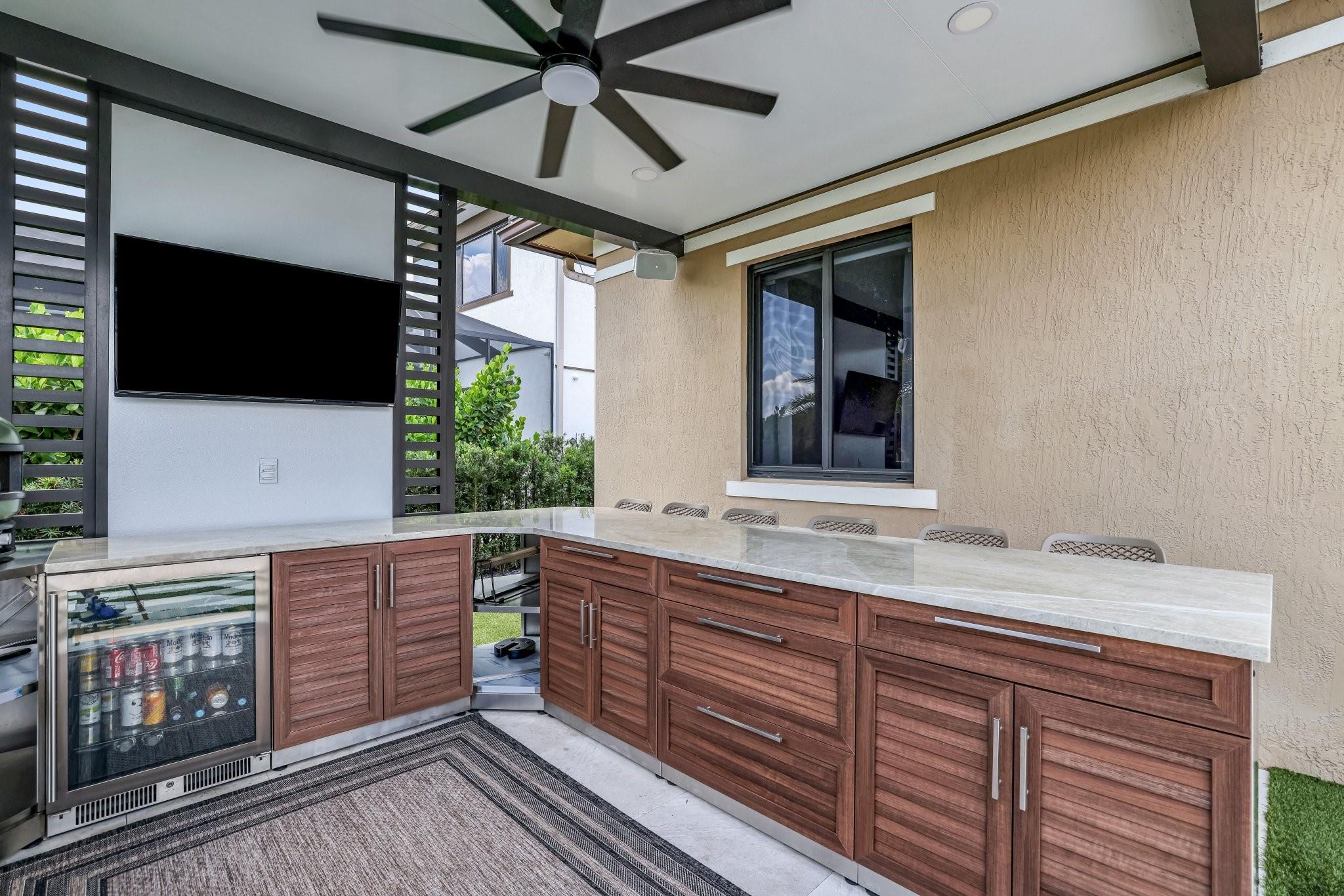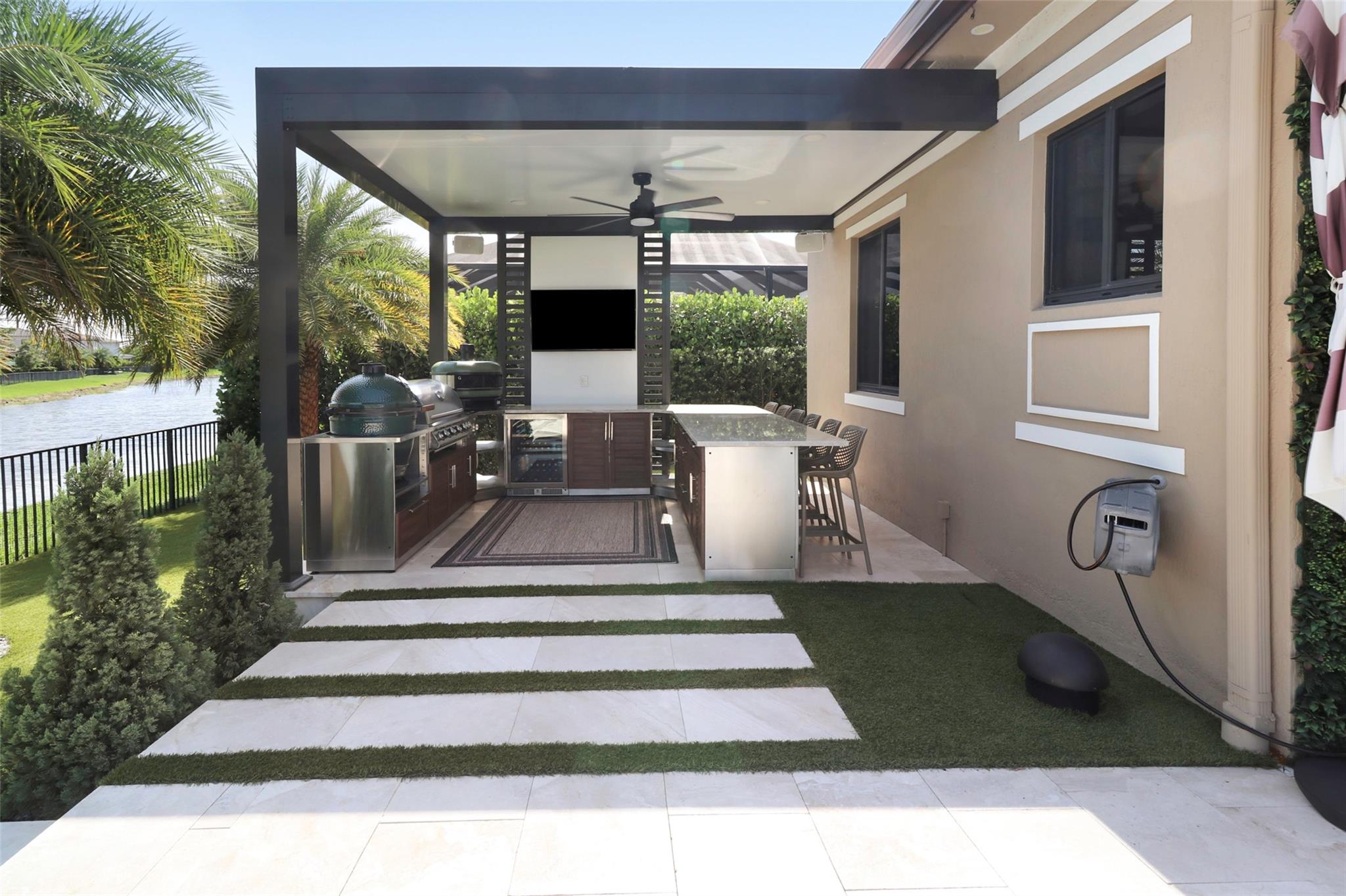 Absolutely stunning! Bring your pickiest of buyers. Over $500K in custom upgrades make this home truly exceptional. Every inch of the home has been meticulously maintained like you've never seen before. Dream backyard features a heated saltwater infinity-edge pool spilling into an oversized spa. Full turf, travertine decking, and a pergola with summer kitchen, built-in grill, and fridge. Surround sound with outdoor subwoofer, 24kW whole-home generator, and Cat 5 wiring to every room. Inside boasts a chef’s kitchen, custom butler’s pantry with 150-bottle dual-zone wine fridge and bar sink, oversized primary suite with custom closets, framed bath mirrors. Built-in speakers throughout, 16-camera CCTV system, and custom art deco moldings and wallpaper. Recently painted inside and out.