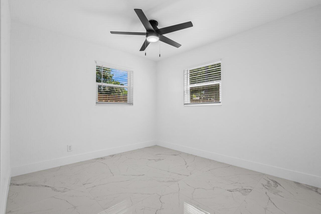 Beautifully updated and modern 4 bedroom, 2 bath single-family home located in a prime area just minutes from stunning beaches. Boasting modern finishes throughout, this home features a brand new roof (installed just one month ago), impact windows and doors, and a new AC system for year-round comfort. The sleek 32x32 ceramic tile flooring flows seamlessly through the entire home, enhancing its contemporary appeal. The chef's kitchen is a true showstopper with white shaker cabinets, quartz countertops, subway tile backsplash, brand new stainless steel appliances, and stylish black hardware. LED recessed lighting throughout provides a clean and bright