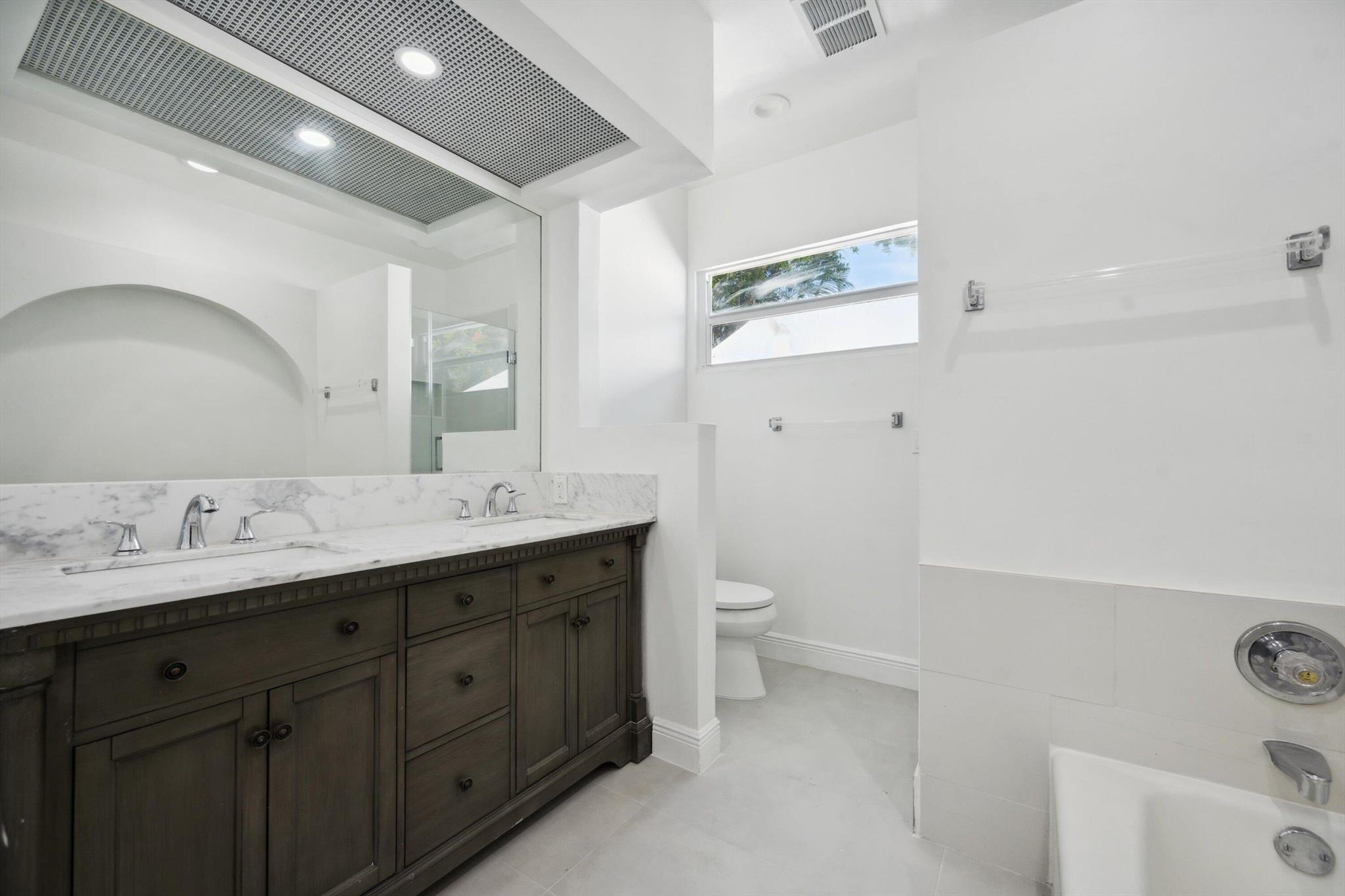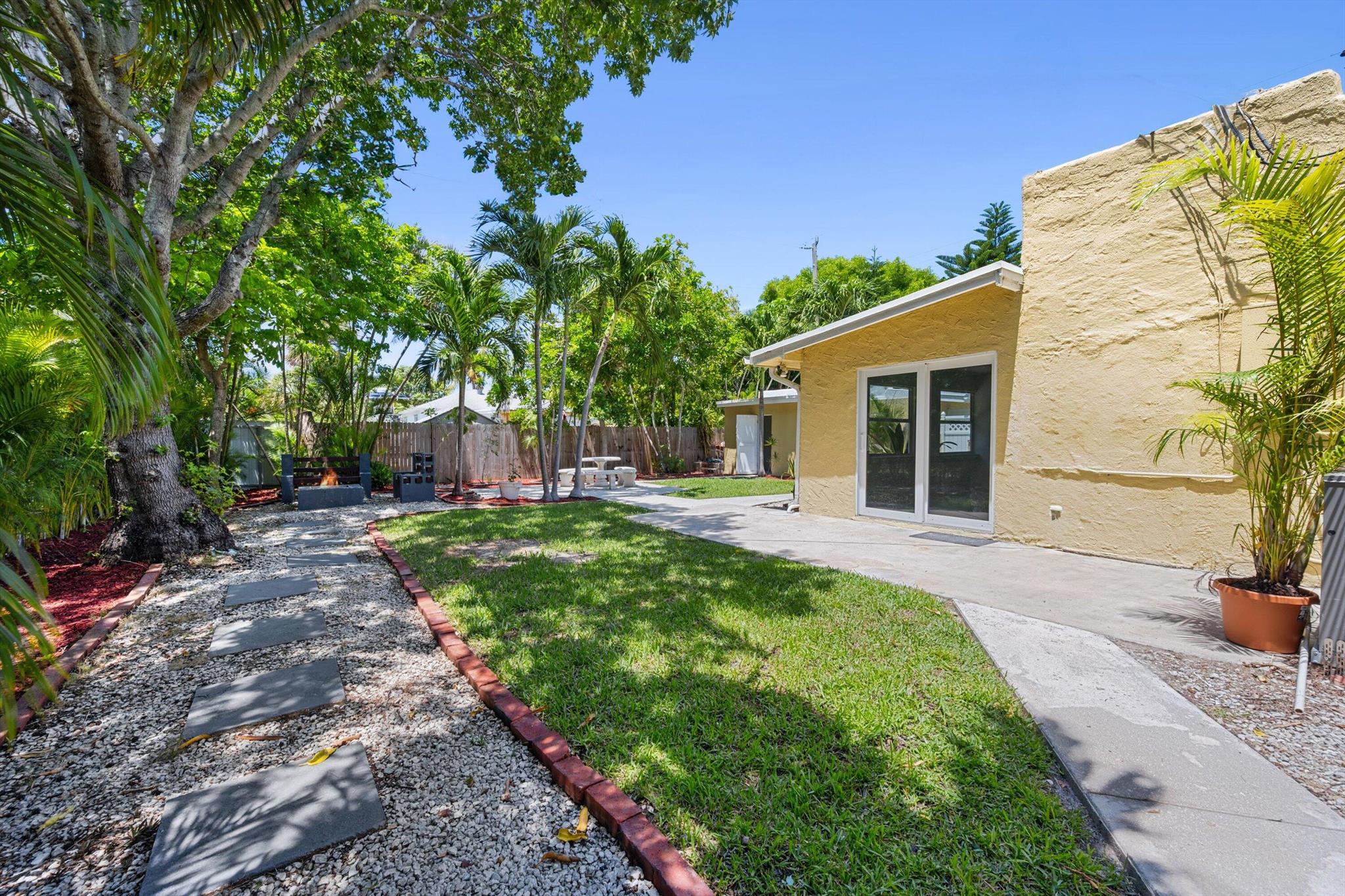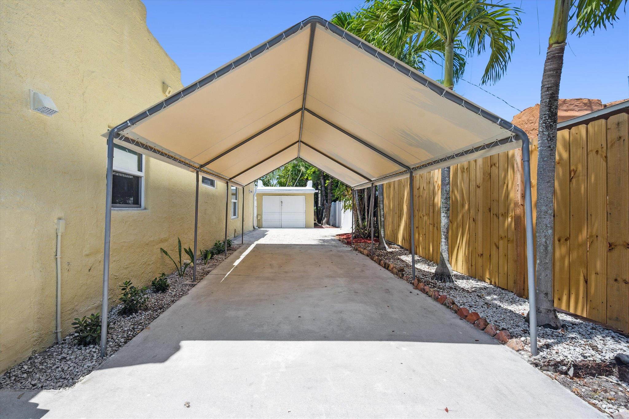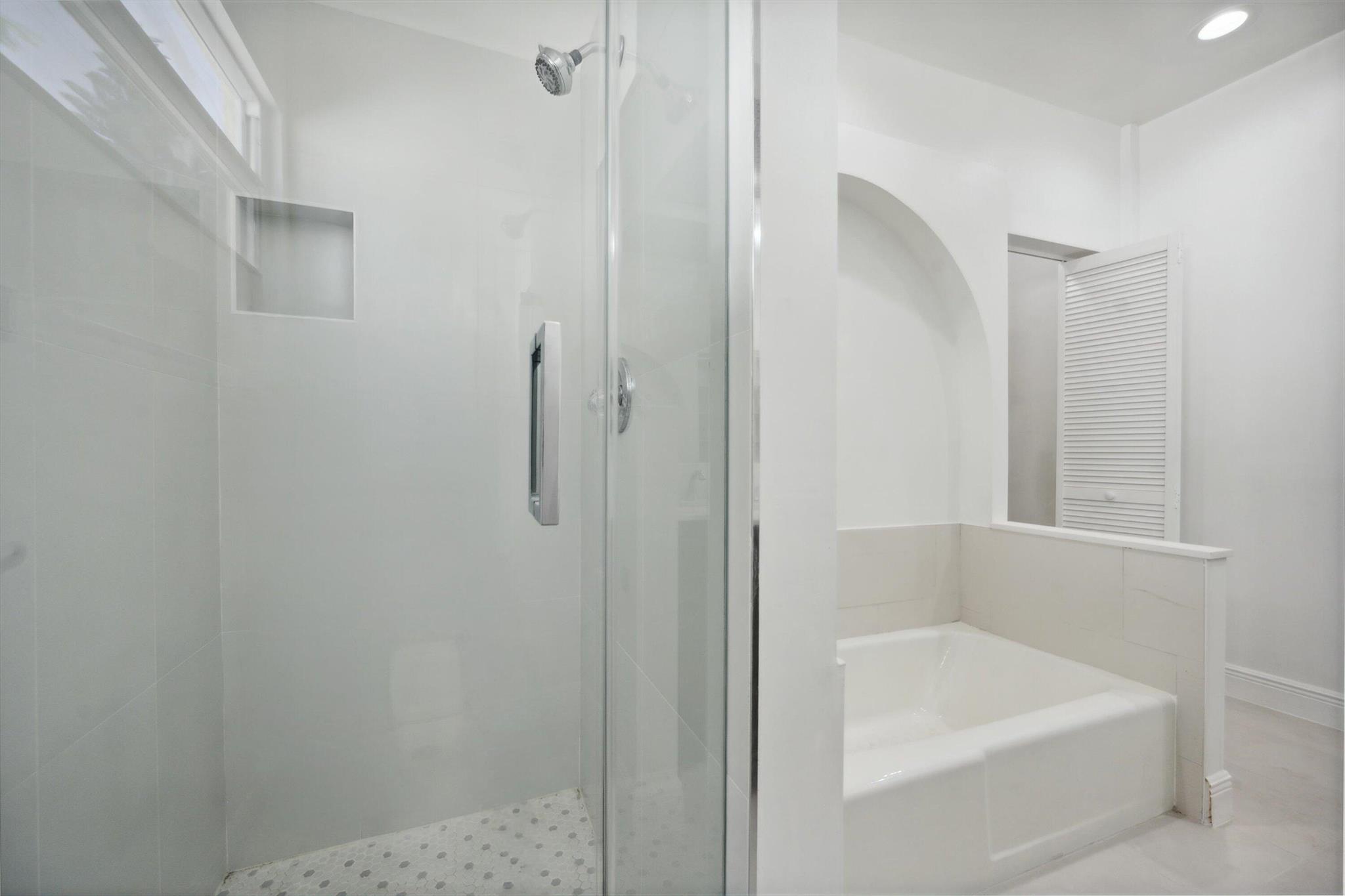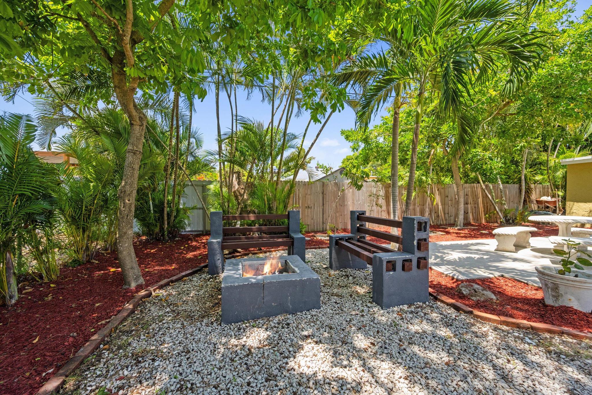 Meticulously remodeled to blend historic charm with modern luxury, this home features a quaint front porch, hurricane impact windows, a unique spiral staircase, fireplace, updated bathrooms and flooring, a renovated kitchen with stainless steel appliances. Each bedroom feels like a master suite with its own bath. The large master suite's bath includes a double sink vanity, and a separate tub and shower.Updated bathroom features a modern, clean design with white shaker-style vanity cabinetry, elegant marble countertops, and spacious walk-in glass showers.A private exotic and relaxing fenced backyard with a large courtyard, mature trees and a fire pit area. A detached garage with electricity, offering potential for a guest suite, creative studio, or home office.