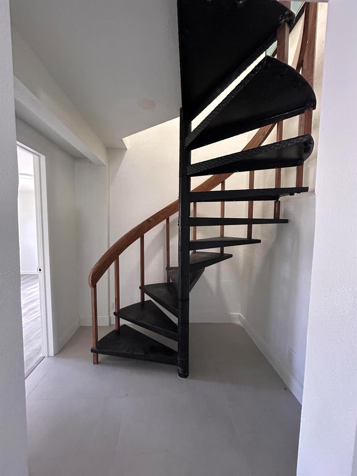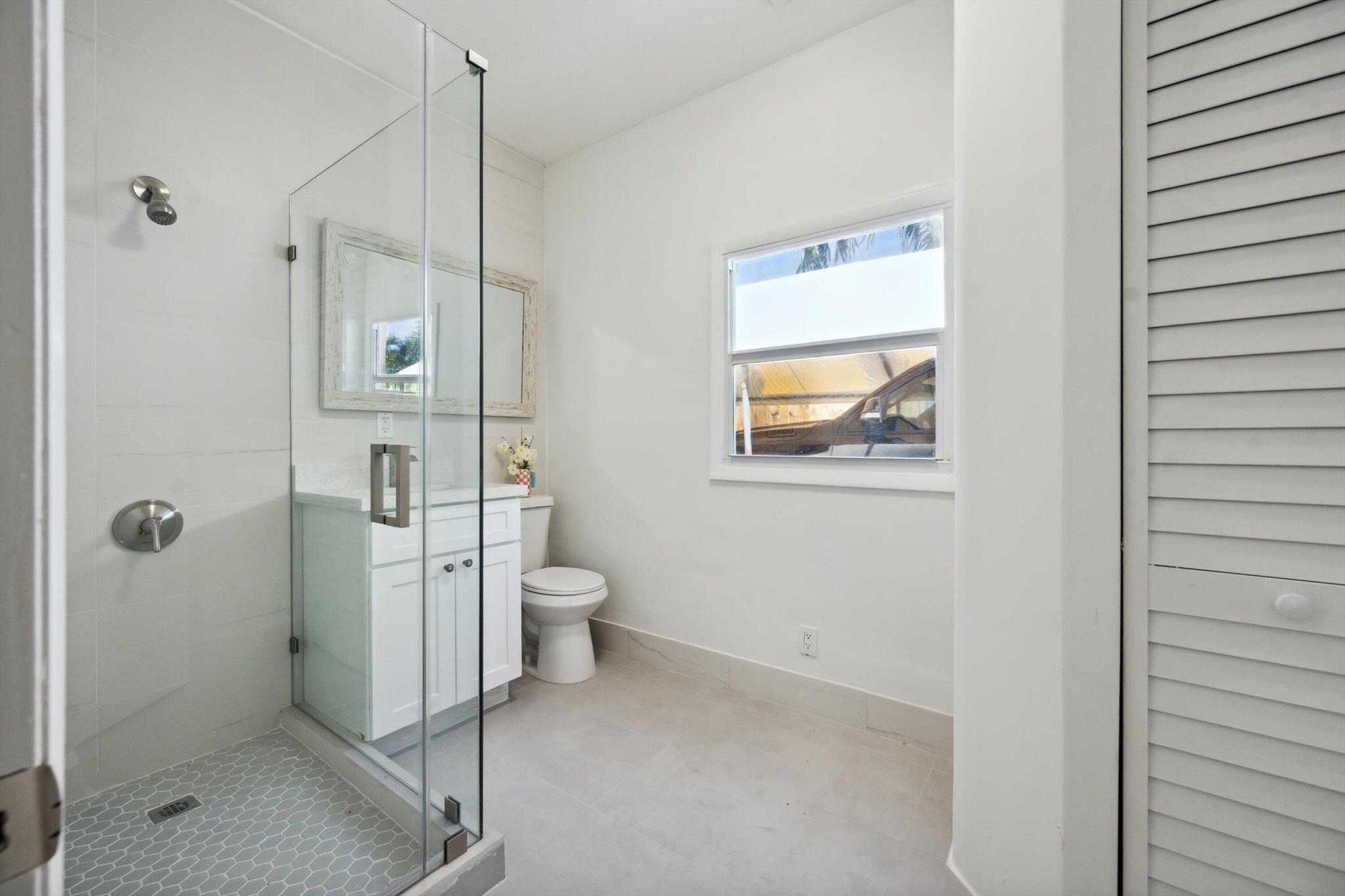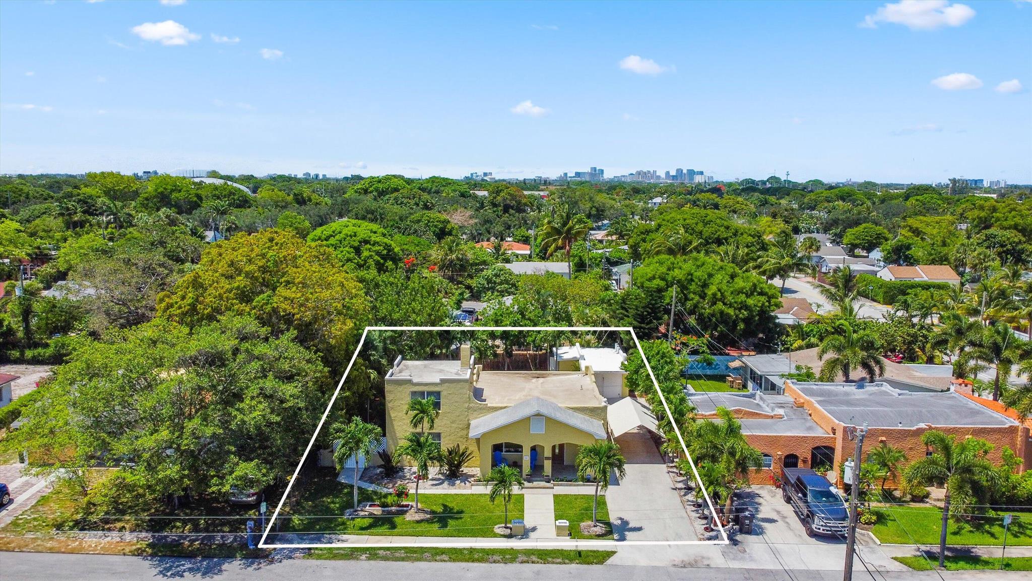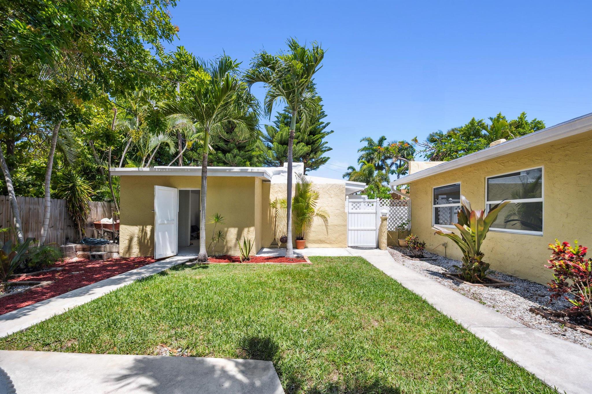 Meticulously remodeled to blend historic charm with modern luxury, this home features a quaint front porch, hurricane impact windows, a unique spiral staircase, fireplace, updated bathrooms and flooring, a renovated kitchen with stainless steel appliances. Each bedroom feels like a master suite with its own bath. The large master suite's bath includes a double sink vanity, and a separate tub and shower.Updated bathroom features a modern, clean design with white shaker-style vanity cabinetry, elegant marble countertops, and spacious walk-in glass showers.A private exotic and relaxing fenced backyard with a large courtyard, mature trees and a fire pit area. A detached garage with electricity, offering potential for a guest suite, creative studio, or home office.