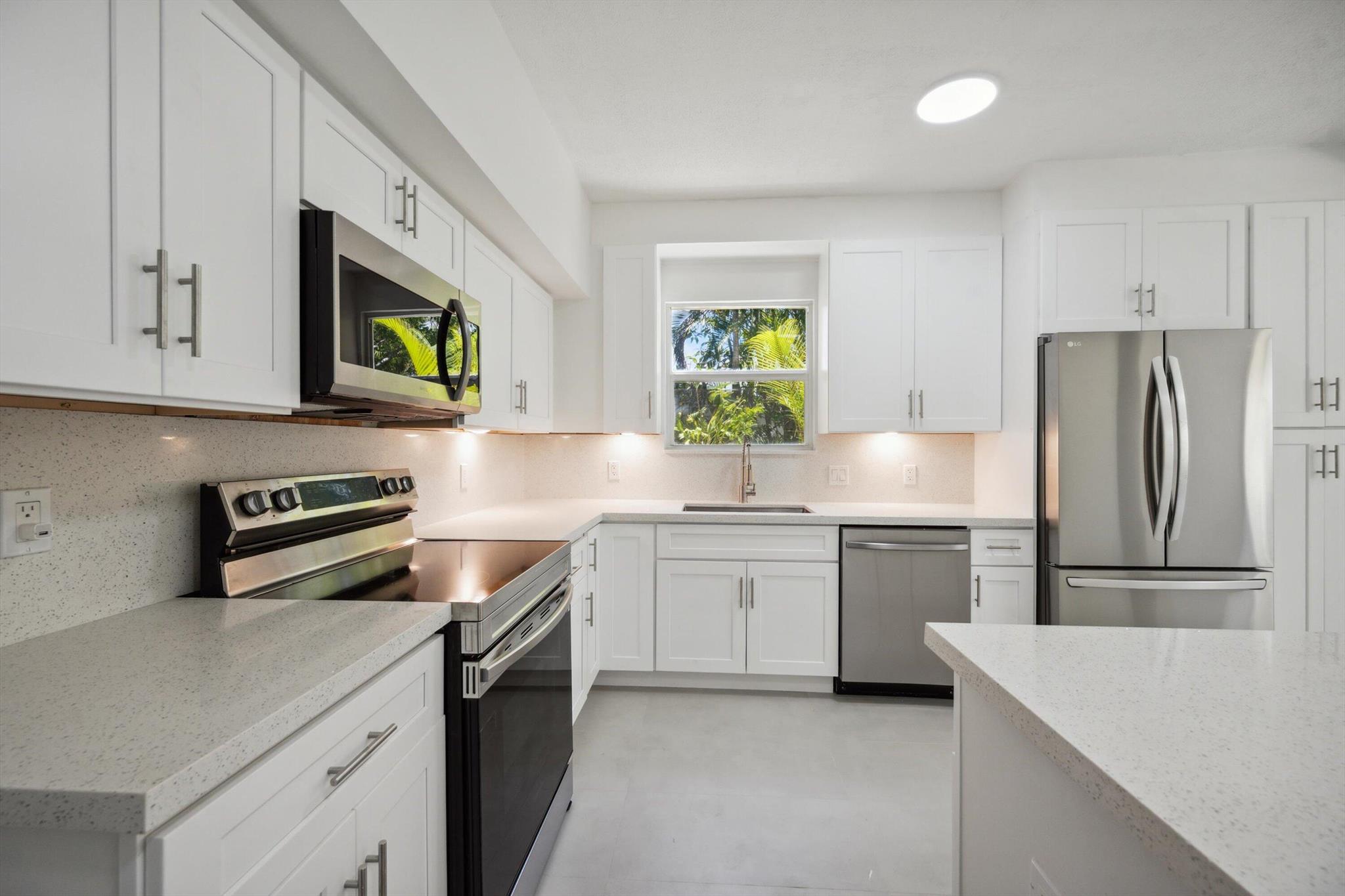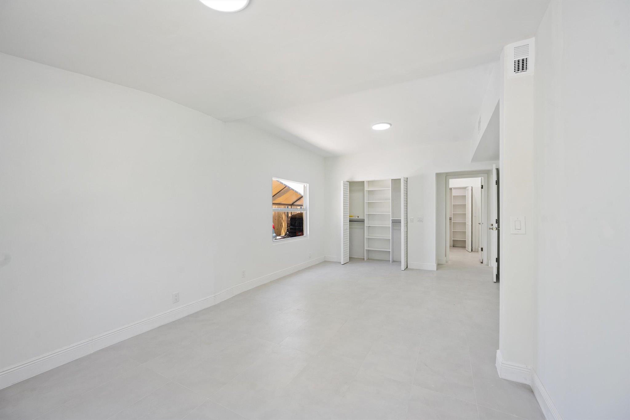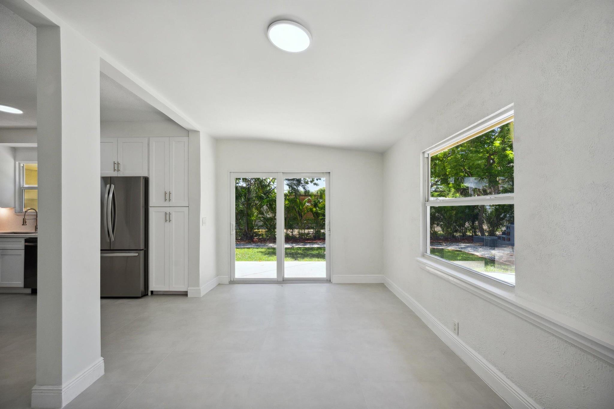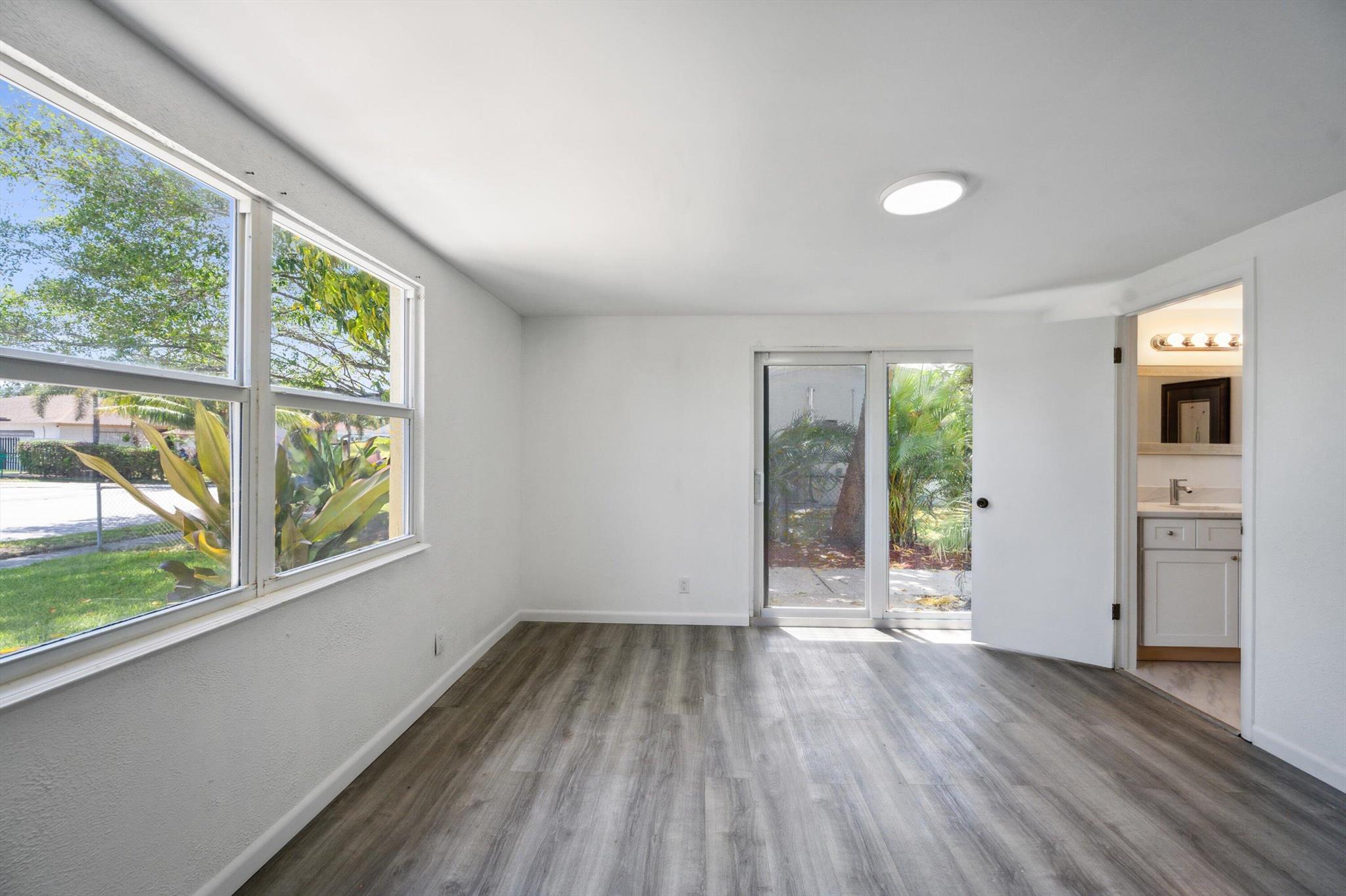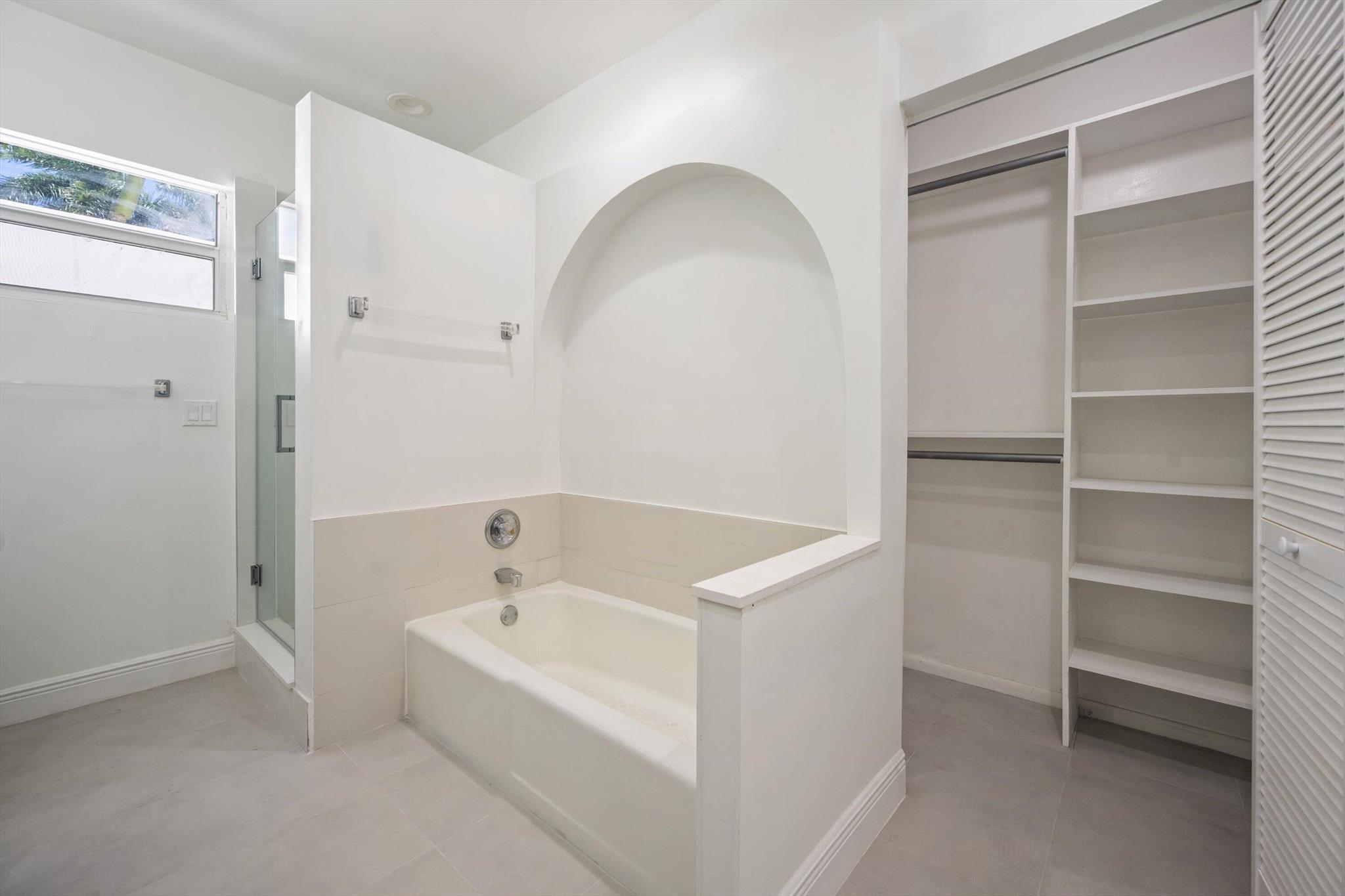 Meticulously remodeled to blend historic charm with modern luxury, this home features a quaint front porch, hurricane impact windows, a unique spiral staircase, fireplace, updated bathrooms and flooring, a renovated kitchen with stainless steel appliances. Each bedroom feels like a master suite with its own bath. The large master suite's bath includes a double sink vanity, and a separate tub and shower.Updated bathroom features a modern, clean design with white shaker-style vanity cabinetry, elegant marble countertops, and spacious walk-in glass showers.A private exotic and relaxing fenced backyard with a large courtyard, mature trees and a fire pit area. A detached garage with electricity, offering potential for a guest suite, creative studio, or home office.