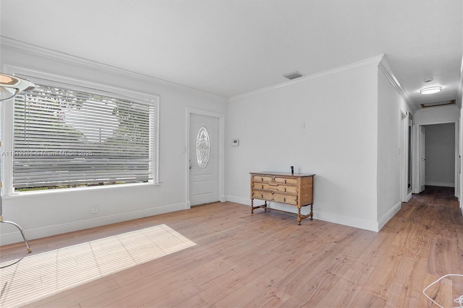 SINGLE FAMILY HOME IN HOLLYWOOD - Recently updated kitchen with gas stove, high-end countertops, and cabinets. Renovated bathroom. Features include laminate wood flooring throughout, crown molding, and impact windows. No popcorn ceiling! The spacious layout features both a family room and a living room. Fully fenced yard provides privacy and includes a large workshop. Central location with convenient access to local amenities and major roads. Functional updates throughout. Located in an established Hollywood neighborhood with easy commute options. Ready for occupancy. Contact for viewing.