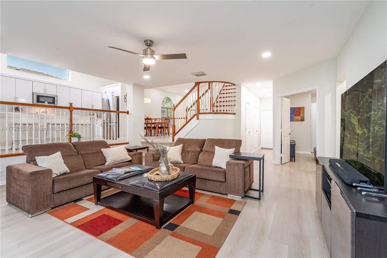 WELCOME TO THIS FULLY UPDATED 4 BED, 3 BATH HOME IN THE SOUGHT AFTER COMMUNITY OF RIVIERA ISLES. *CAMBRIA MODEL WITH OVER $140K IN UPGRADES AND STUNNING LAKEVIEWS FROM ALMOST EVERY WINDOW. *BRAND NEW ROOF AND LUXURY VINYL FLOORING IN THE MAIN LIVING AREA. *RENOVATED KITCHEN BOASTS QUARTZ COUNTERTOPS, STAINLESS STEEL APPLIANCES, AND MODERN WHITE CABINETRY. *SPACIOUS PRIMARY SUITE FEATURES A PRIVATE OFFICE/SITTING AREA AND A LARGE WALK-IN CLOSET. *ALL BATHROOMS HAVE BEEN FULLY RENOVATED WITH A SOPHISTICATED, LUXURIOUS DESIGN. *ONE BEDROOM AND FULL BATHROOM ARE CONVENIENTLY LOCATED DOWNSTAIRS. *SERENE LAKEVIEWS FROM THE SCREENED-IN PATIO—PERFECT FOR OUTDOOR DINING OR UNWINDING AT SUNSET. *COMMUNITY OFFERS RESORT-STYLE AMENITIES INC. POOL, GYM, TENNIS, PICKLEBALL & BASKETBALL COURTS, AND MORE!