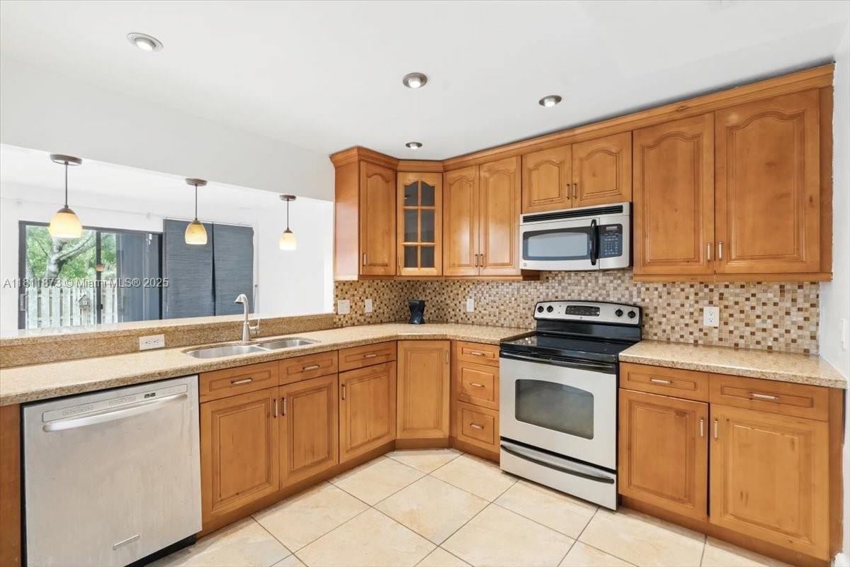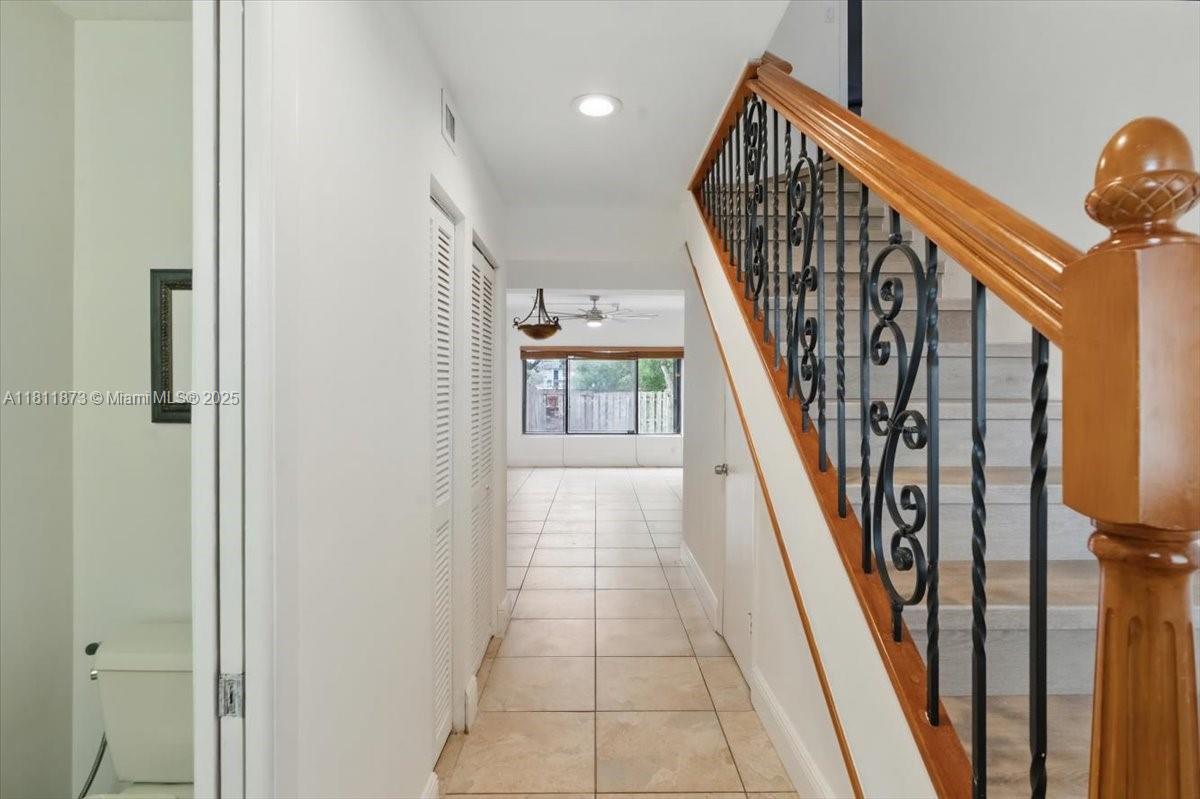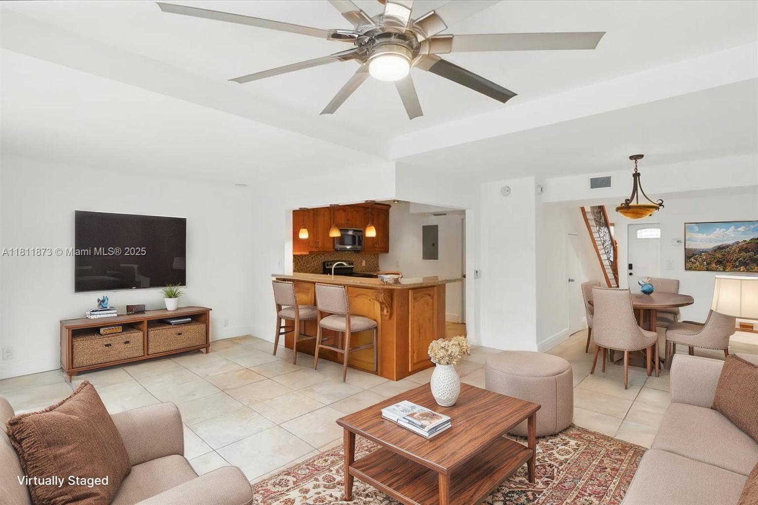 This 2-bedroom, 2.5-bath seldom available corner unit townhouse features brand-new luxury vinyl flooring on staircase & second level for a clean, modern look. Both bedrooms feature an en-suite bathroom, plus main level powder room for guests offering comfort & privacy. Kitchen with wood cabinets, granite countertops & stainless appliances. Enjoy the outdoors on the private back patio close to the community pool or relax on the charming upper deck. Accordion shutters provide peace of mind, one-car garage & large driveway add convenience & storage. Located just minutes from NSU, Hardrock Guitar Hotel, FLL Airport, shops, dining & major highways—this is a prime location! Brand new updated sub & main electrical panels. With just a few updates, this home can truly shine!