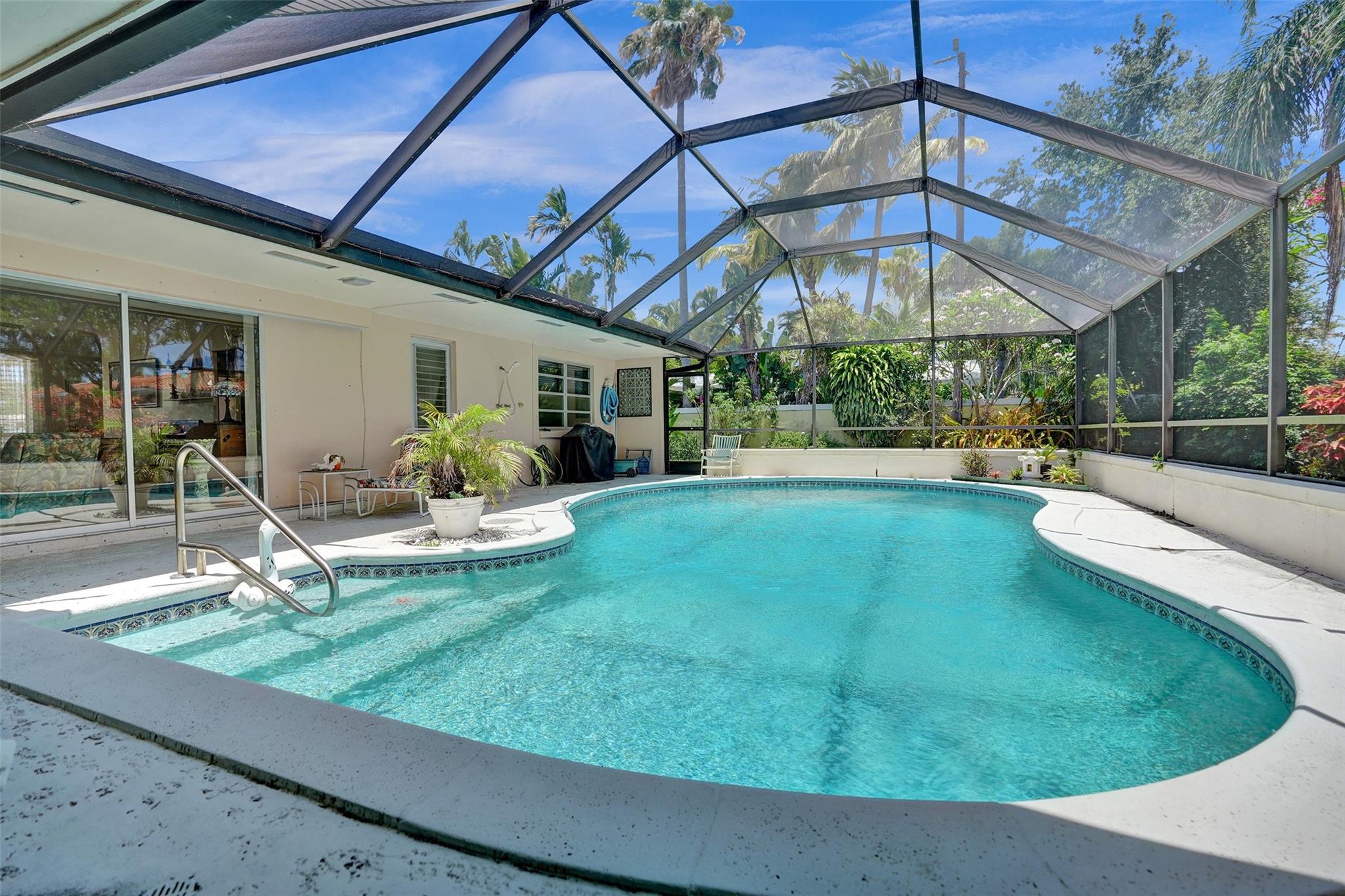 Enjoy ideal southern exposure on a highly sought-after street south of Sample Road in Lighthouse Point. This lovingly maintained original home features 3 bedrooms, 2 bathrooms, a split-bedroom layout, spacious living and dining areas, and a convenient cabana bath. The backyard is perfect for entertaining, offering a large screened-in pool and patio, along with a tranquil area for gardening. A two-car garage completes this charming residence with plenty of potential.