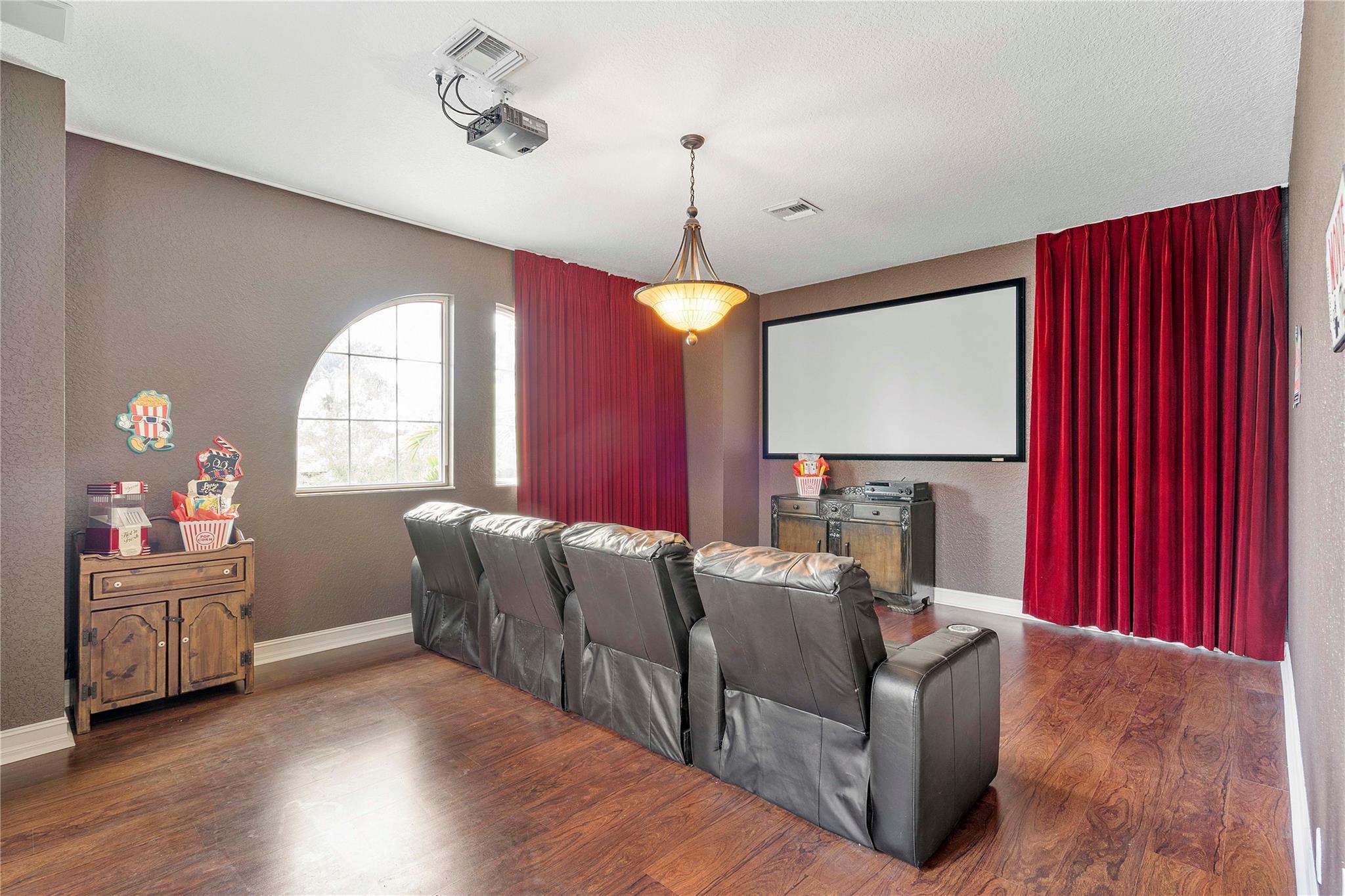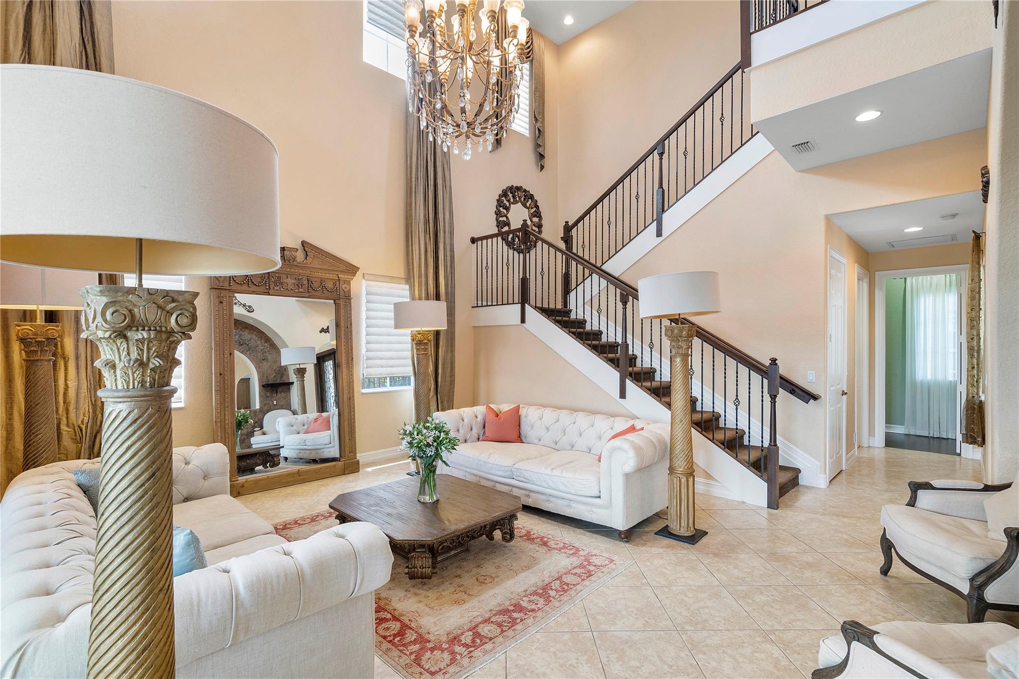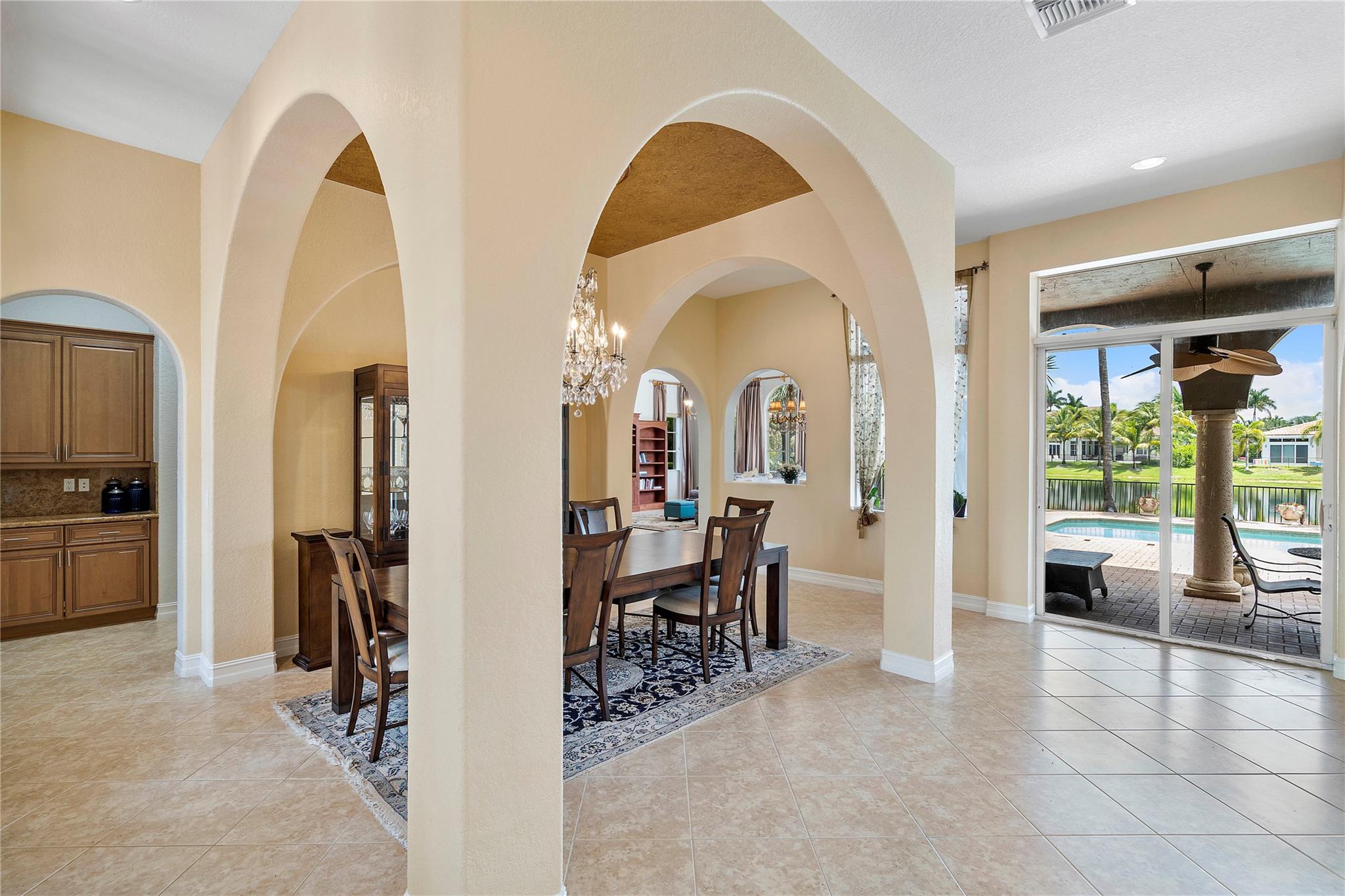 Welcome to this Luxurious HOME in Edgewood at Heron Bay! This waterfront estate features entry courtyard, 6-bedrooms 4.5 baths + 3 garages & tropical pool. This HOME is your castle ~ 5311 total sq ft. Gourmet kitchen perfect for entertaining - wait until you see the island! Tons of storage w/over 30 cabinets, custom pantry, snack bar, granite, stainless steel appliances - open with line of sight to the pool & patio. Royal style primary suite w/private lounging patio & water views. Enjoy movie night in your theater room complete w/red velvet curtains & popcorn maker. One bed & full bath on the 1st floor perfect for guests/home office. A+ Parkland schools, resort clubhouse, community pools, fitness, tennis center, playground, new Splash Pad, basketball, pickleball, event ballroom & more!