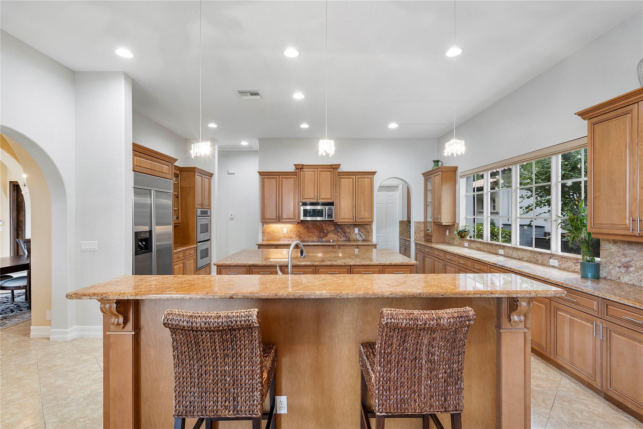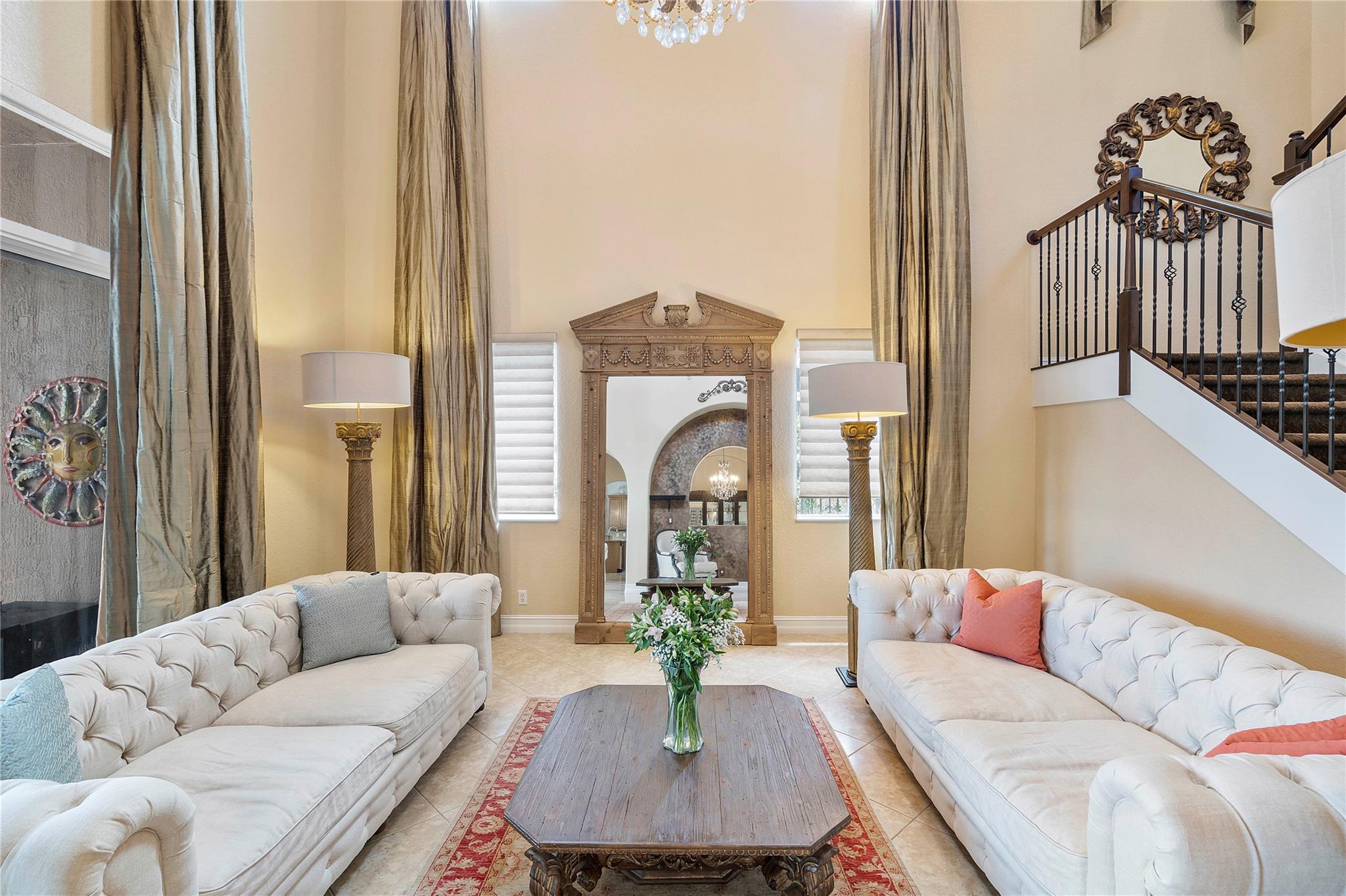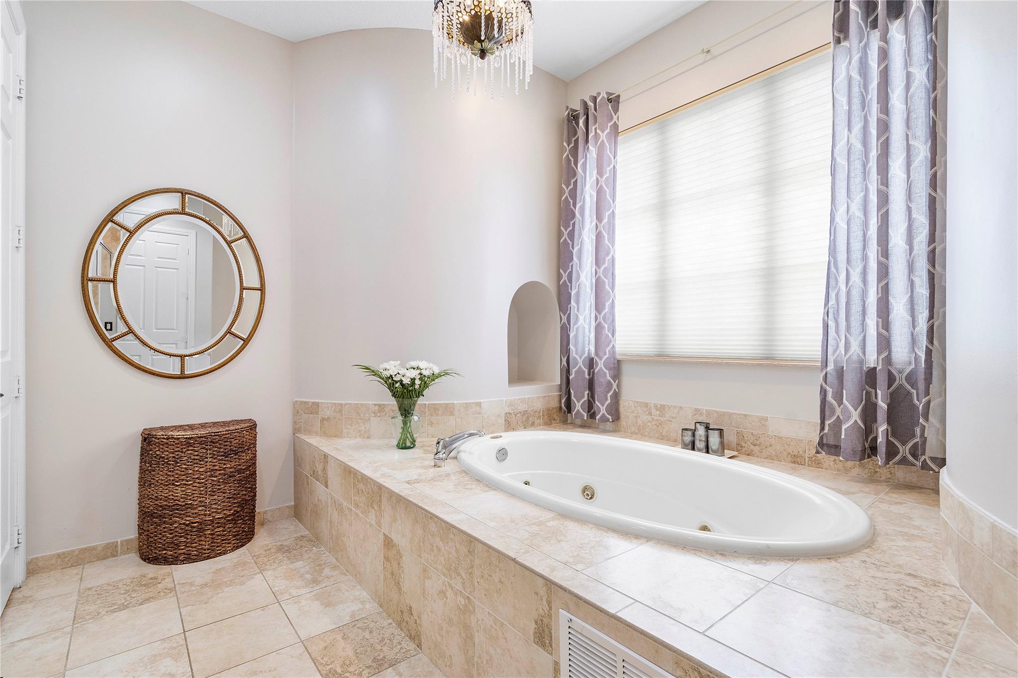 Welcome to this Luxurious HOME in Edgewood at Heron Bay! This waterfront estate features entry courtyard, 6-bedrooms 4.5 baths + 3 garages & tropical pool. This HOME is your castle ~ 5311 total sq ft. Gourmet kitchen perfect for entertaining - wait until you see the island! Tons of storage w/over 30 cabinets, custom pantry, snack bar, granite, stainless steel appliances - open with line of sight to the pool & patio. Royal style primary suite w/private lounging patio & water views. Enjoy movie night in your theater room complete w/red velvet curtains & popcorn maker. One bed & full bath on the 1st floor perfect for guests/home office. A+ Parkland schools, resort clubhouse, community pools, fitness, tennis center, playground, new Splash Pad, basketball, pickleball, event ballroom & more!