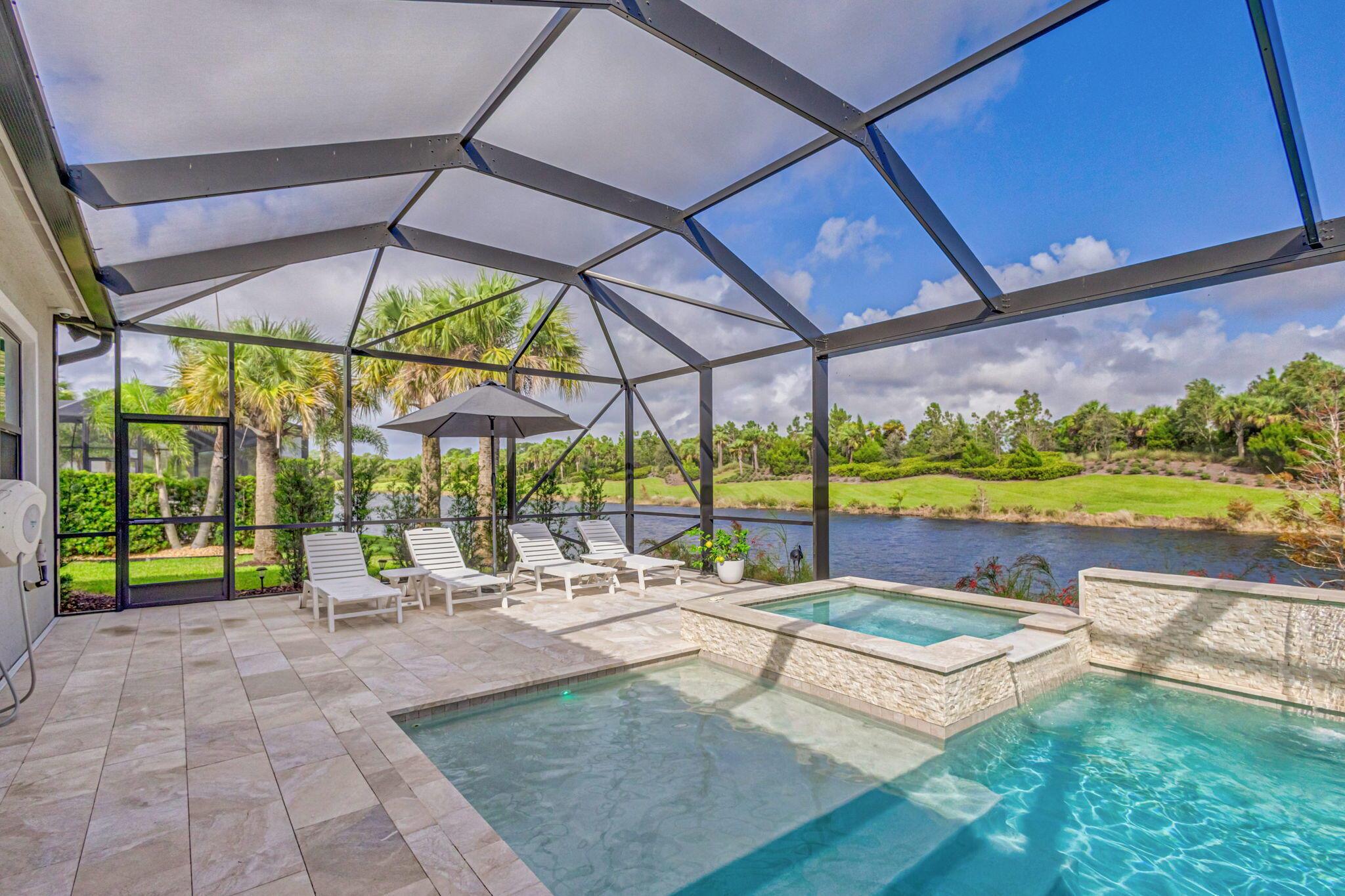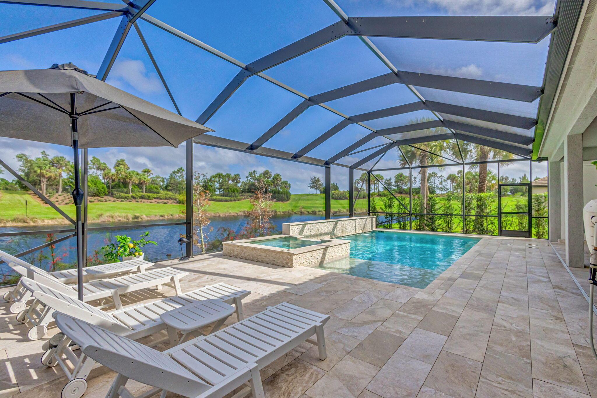 Sought-after single-story 3 bedrooms, 3.5 bathrooms, and a versatile den/office within 2,877 square feet of luxurious living space.Enjoy smart home technology with premium upgrades throughout. The gourmet kitchen includes a walk-in pantry, soft-close drawers, and cabinets. Elfa systems in all closets and the garage to ensure organized storage.The outdoor space is a true oasis, featuring a screened, heated saltwater pool and hot tub, built in 2022, with an Aqualink system, travertine flooring, and a seperate cabana bath. Entertain with the Lynx outdoor summer kitchen, complete with a double refrigerator, sink, and outdoor TV, enhanced by a WiFi extender.Impact doors and windows throughout, tankless water heater and so much more! Resort style amenities within this gated community.