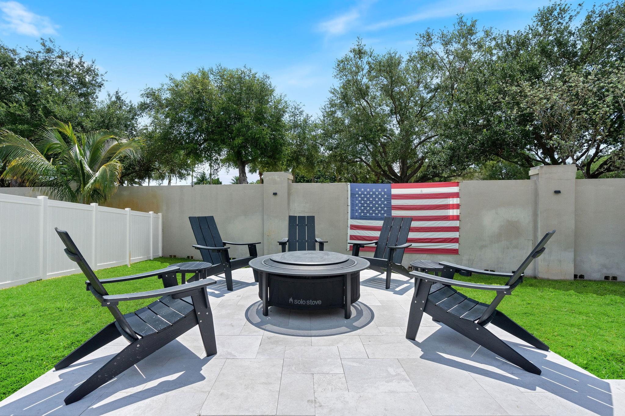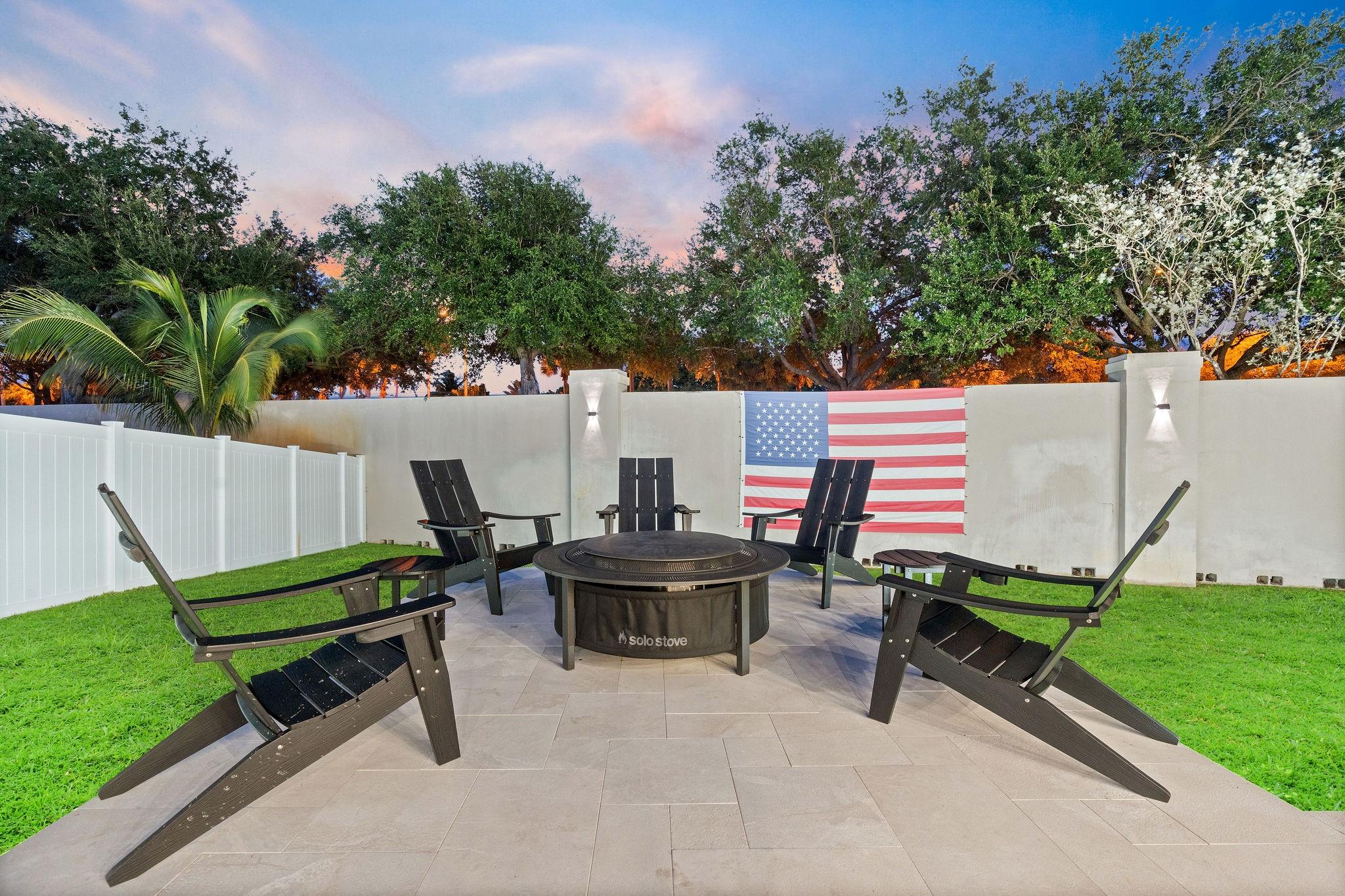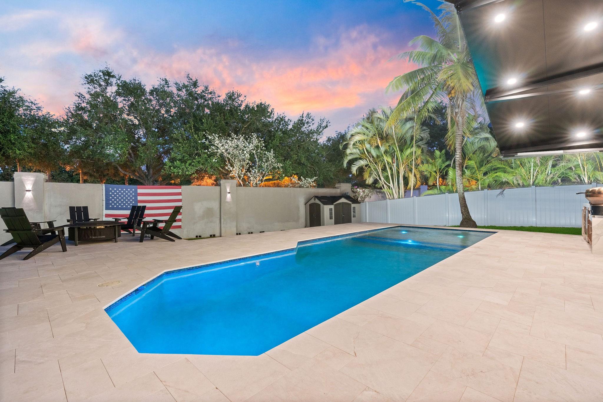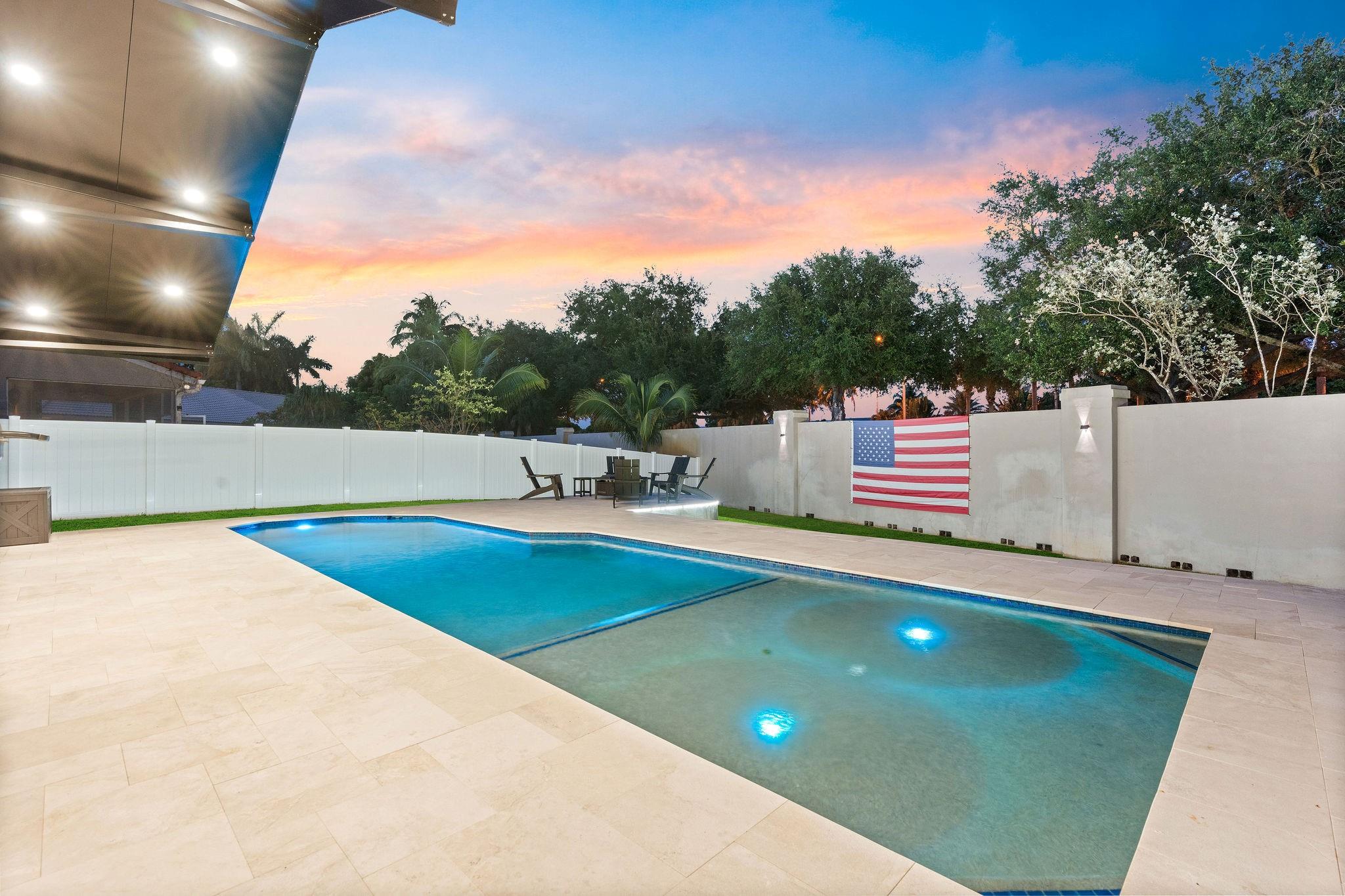 Discover one of the nicest turnkey homes in Stirling Palm Estates, fully renovated and move-in ready. This 3 bed 2 bath gem sits on one of the largest and most private lots with no through traffic. Upgrades include a new roof, impact windows and doors, a remodeled pool and deck with fire pit, outdoor kitchen, Tesla PowerShare home battery back-up, patio awning, and exterior lighting. Inside, enjoy custom wainscoting, LED lighting, an open-concept layout, updated appliances, and a built-in bar perfect for entertaining. The home also features a/c garage, Tesla charger, and modern finishes throughout. Located in a quiet, family-friendly community of just 70 homes with top-rated schools, scenic parks, and nearby police and fire services ideal for those seeking comfort, and peace of mind.