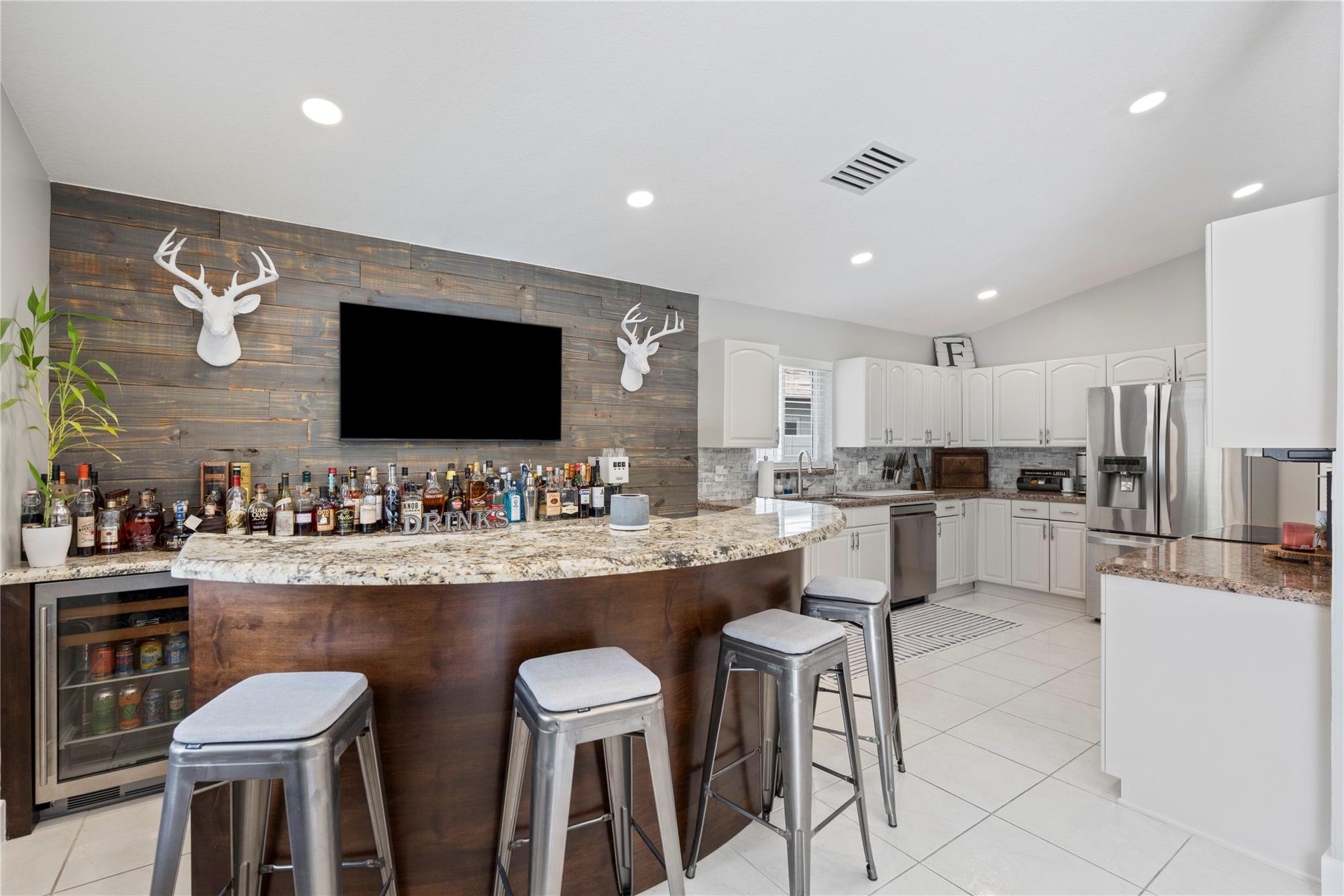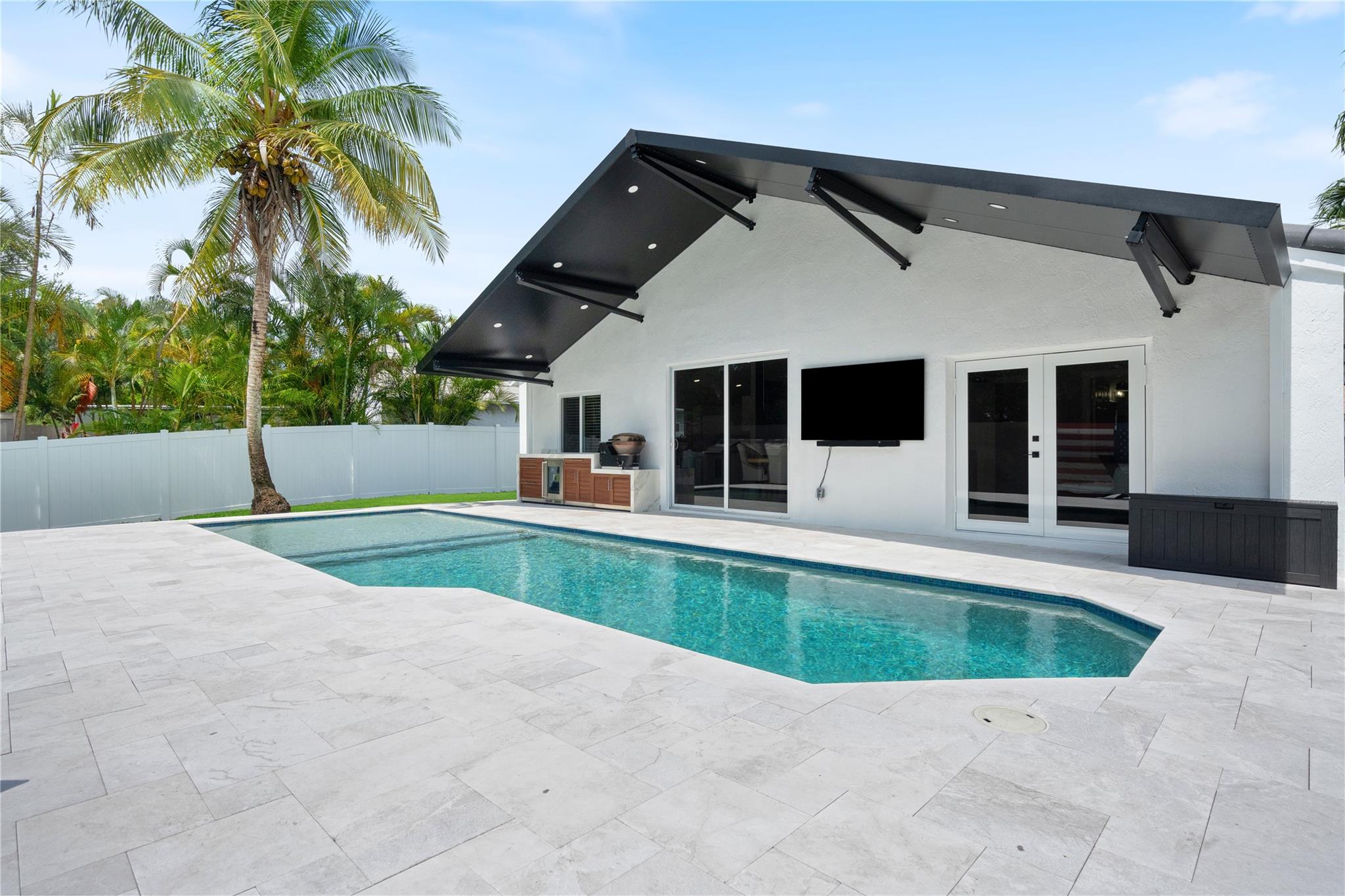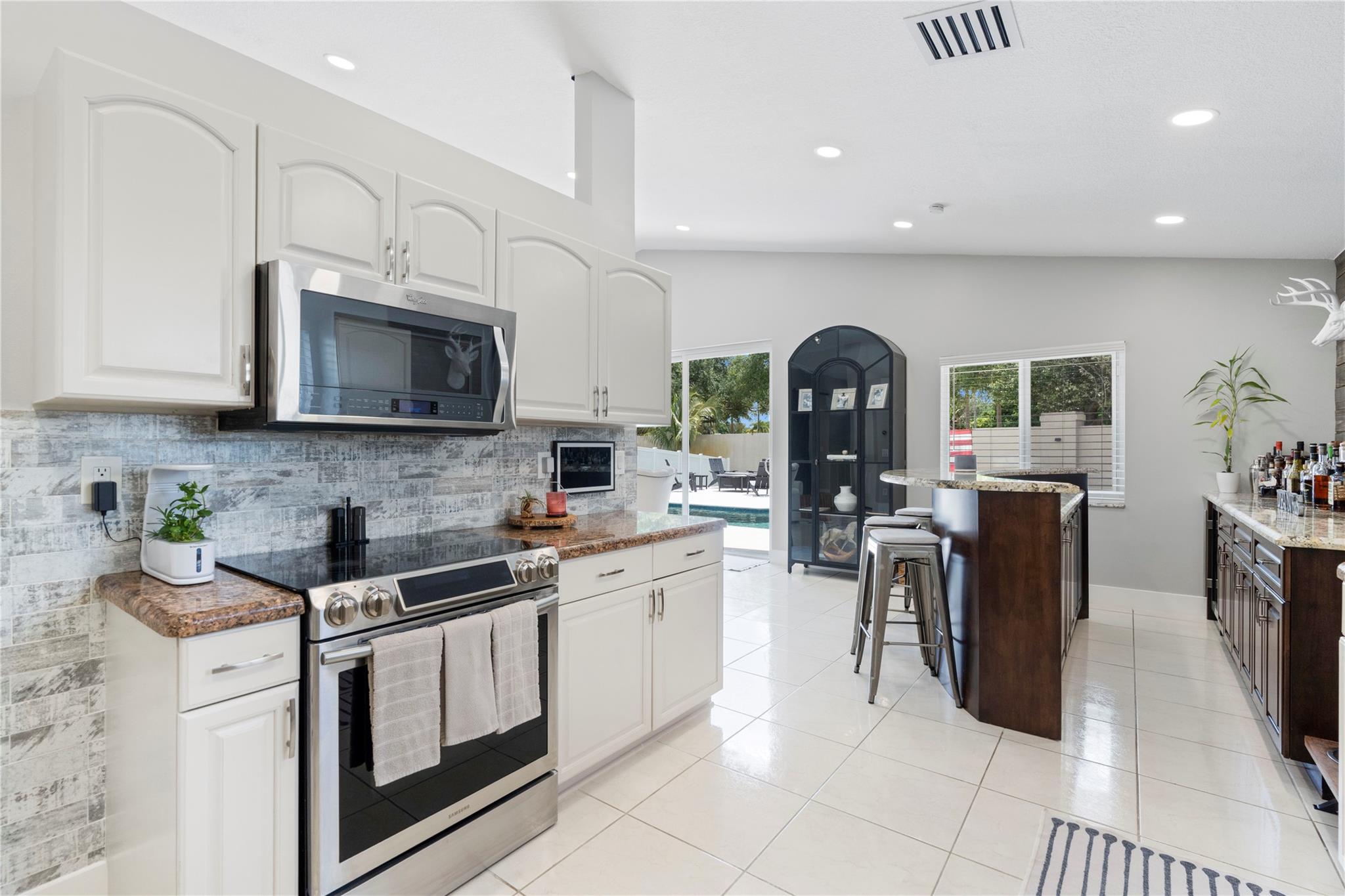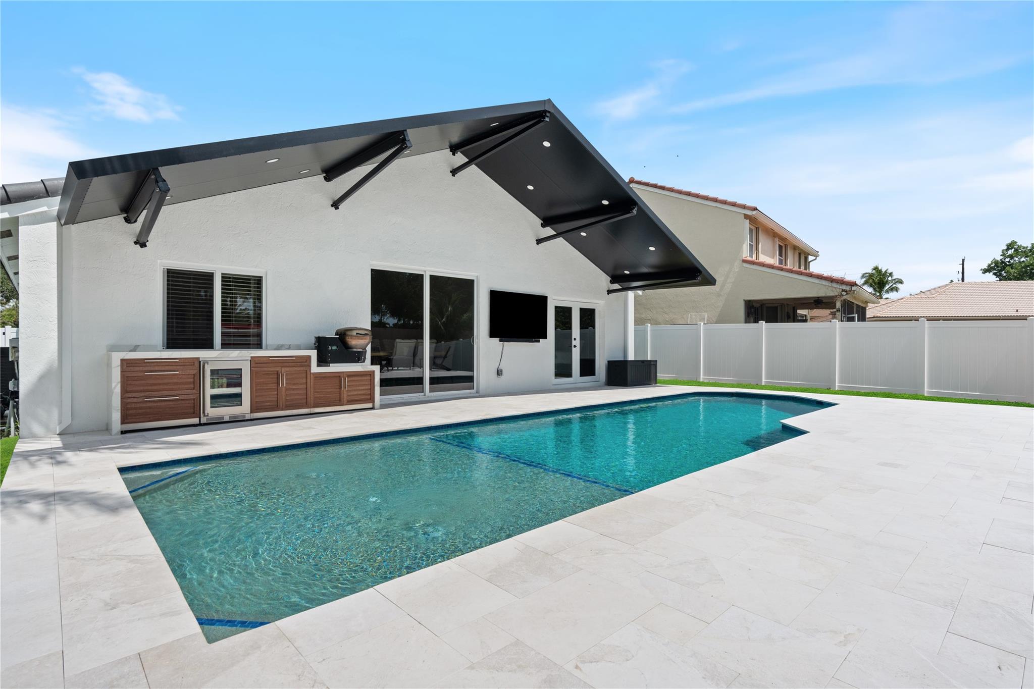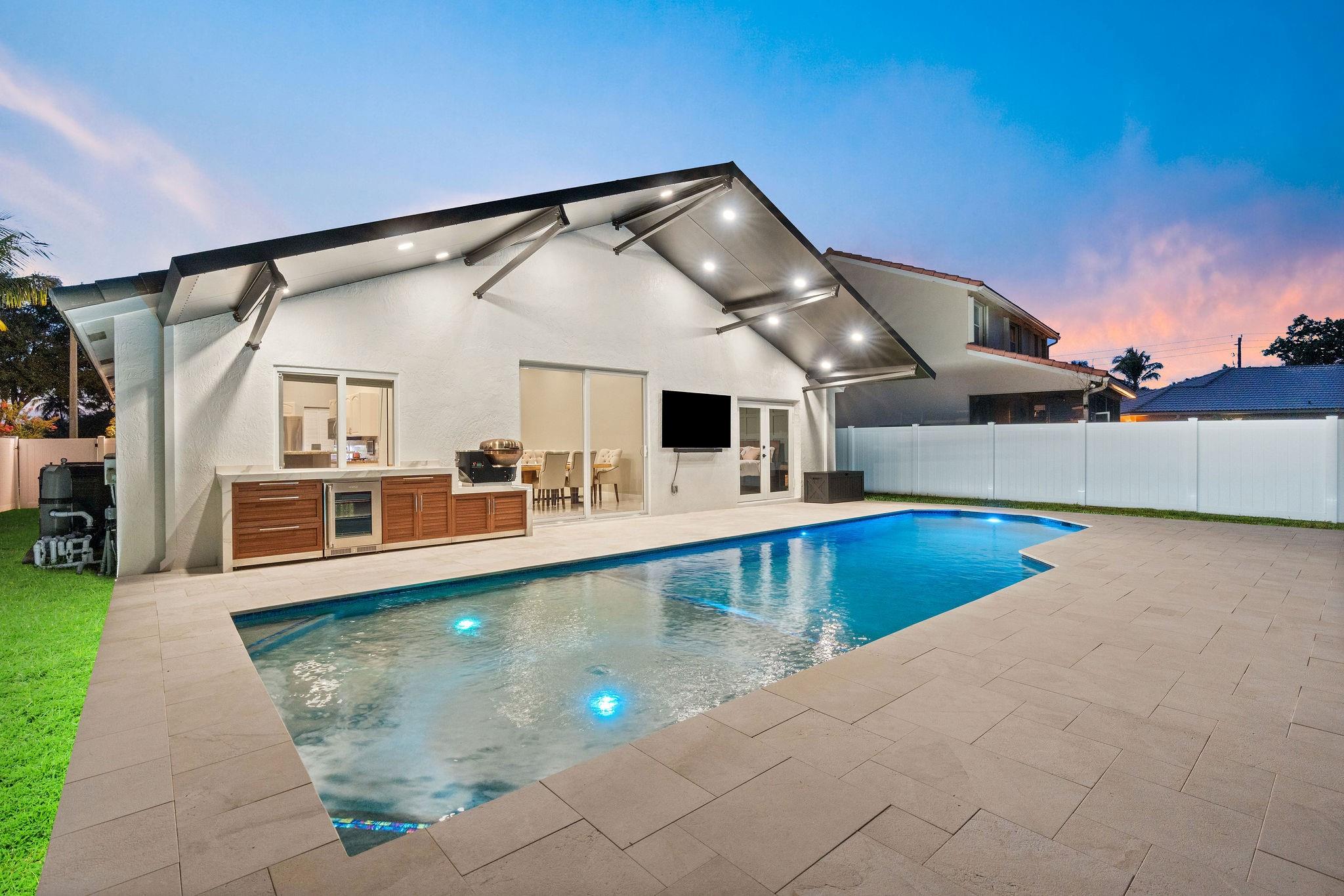 Discover one of the nicest turnkey homes in Stirling Palm Estates, fully renovated and move-in ready. This 3 bed 2 bath gem sits on one of the largest and most private lots with no through traffic. Upgrades include a new roof, impact windows and doors, a remodeled pool and deck with fire pit, outdoor kitchen, Tesla PowerShare home battery back-up, patio awning, and exterior lighting. Inside, enjoy custom wainscoting, LED lighting, an open-concept layout, updated appliances, and a built-in bar perfect for entertaining. The home also features a/c garage, Tesla charger, and modern finishes throughout. Located in a quiet, family-friendly community of just 70 homes with top-rated schools, scenic parks, and nearby police and fire services ideal for those seeking comfort, and peace of mind.
