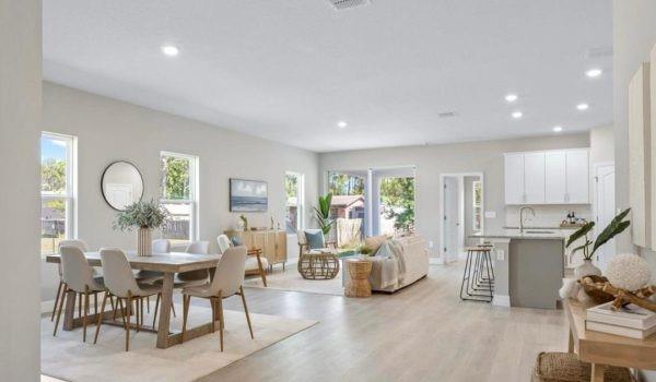 This exquisite 2,092-square-foot residence sits on a 0.24-acre lot fronting a beautiful, wide canal, offering stunning water views and breathtaking sunrises and sunsets. Designed for both comfort and elegance, the home features 4 bedrooms, 3 bathrooms, and a 2-car garage, setting a new standard for refined living. Step inside to discover premium finishes throughout. At the heart of the home is a chef’s kitchen outfitted with Samsung stainless steel appliances, a spacious center island, and striking Bengal Granite countertops paired with classic subway tile backsplashes. Beautiful Reef Gold vinyl plank flooring runs seamlessly throughout the home, replacing carpet. Soaring 9’4” ceilings enhance the airy atmosphere, highlighted by Maxim lighting fixtures and Moen Chateau Chrome accents.