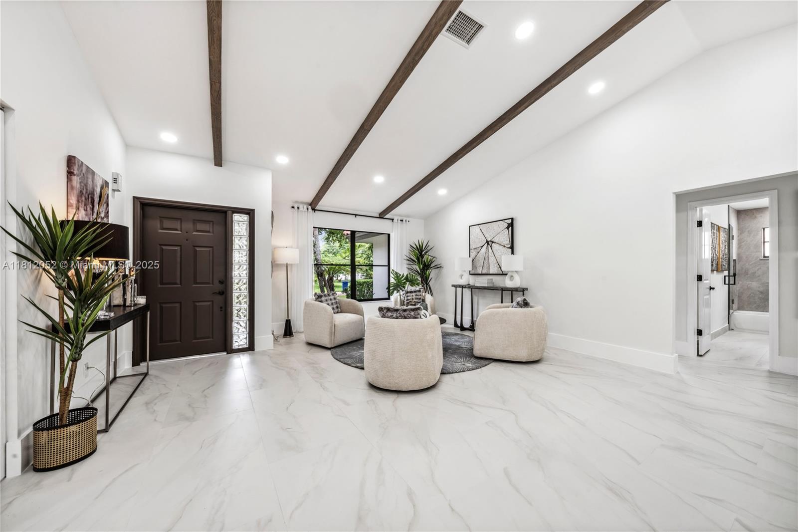 BACK ON MARKET DUE TO BUYER FINANCING FALLING THROUGH. Welcome to your dream home in the heart of Coral Springs! This stunning 4BD/2BA pool home has been beautifully renovated w/ high-end finishes & thoughtful upgrades throughout. Enjoy an open-concept layout w/ wood-beamed ceilings, brand new floors, LED lighting & designer chandeliers. The kitchen features quartz countertops, S.S. appliances & an island w/custom cabinetry. Both bathrooms have been fully remodeled w/ modern finishes. The spacious primary suite offers a walk-in closet & spa-like bathroom. Step outside to your private oasis complete w/ a sparkling pool, pizza oven, built in BBQ & mango trees.Nest A/C & 7-year-old roof. Conveniently located near top-rated schools, parks, dining, & shopping. Don’t miss this one-of-a-kind gem!