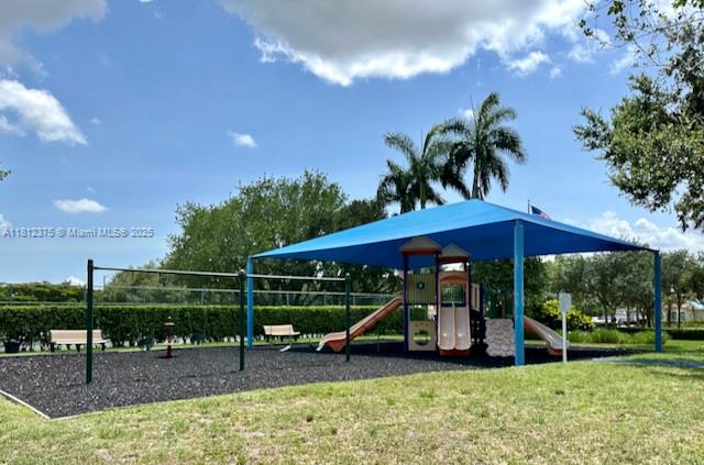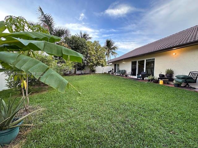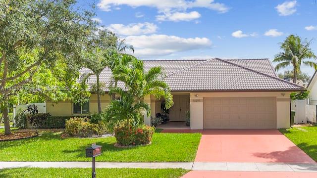 Beautifully maintained 3 bed, 2 bath home on a spacious fully fenced corner lot! Featuring a NEW 2024 roof, brand-new impact windows and doors, new A/C, recent interior and exterior paint, and stylish darkening dual shades. This one-story home offers high vaulted ceilings, tile floors throughout, custom built-in closets, and a large open living/dining area. The grand backyard is filled with fruit trees and has plenty of space to add a pool. Enjoy community amenities like a pool, tennis/pickleball and basketball courts, kids playground, and 24-hr guarded security. Conveniently located in a top-rated school zone, close to shops, restaurants, and major roads. Features a House Alkaline Water System Filtration System but is not part of the sale.