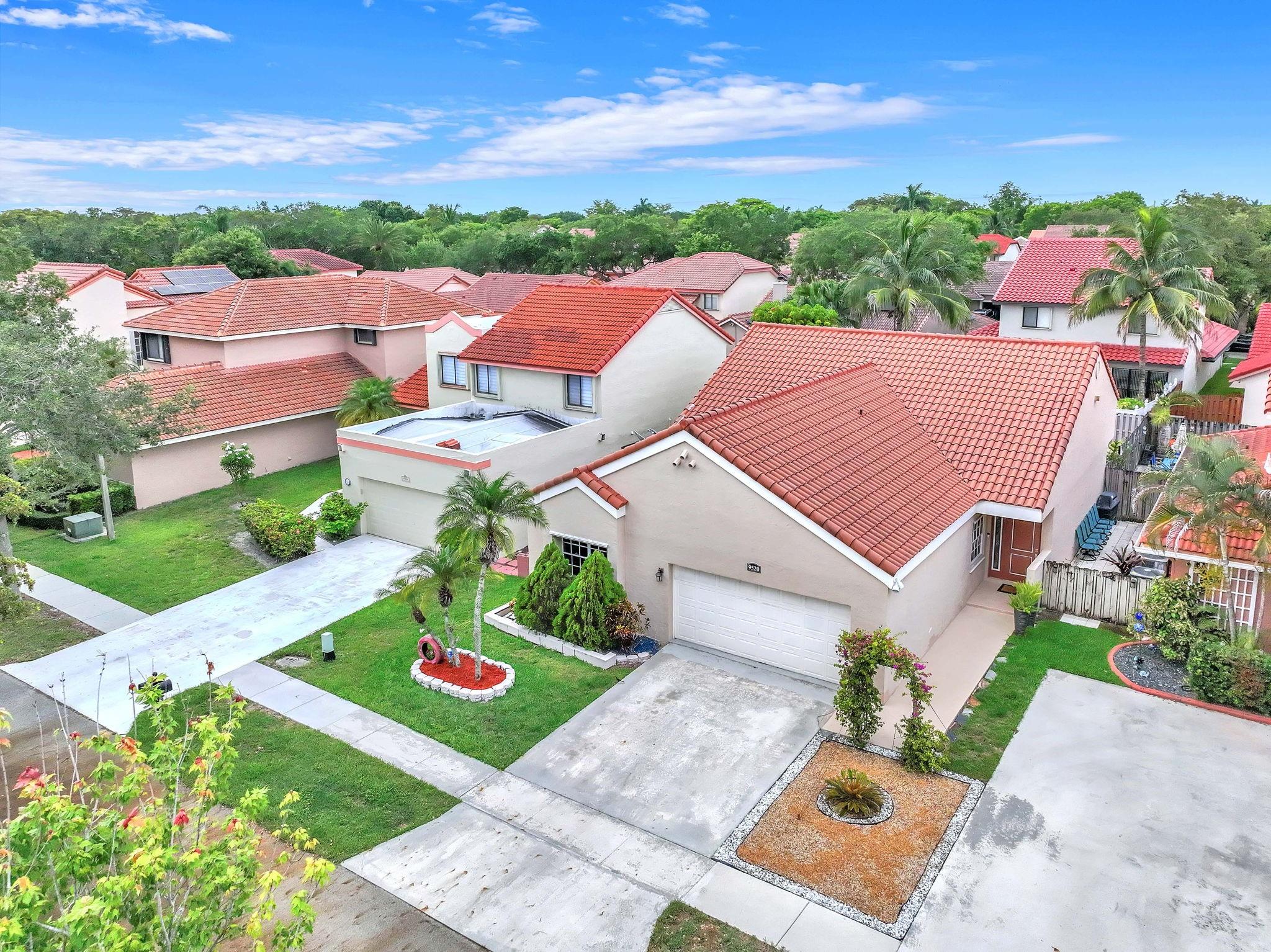 Open concept 3 bed/2 bath w/pool. Step inside to find a naturally light-filled open interior with sliding glass doors opening to a spacious pool deck with a sparkling saltwater pool – perfect for entertaining. The Kitchen has granite counters, updated appliances, recessed lighting and opens into a family/dining room area. The bathrooms feature wood cabinets, granite counters and beautiful tile. A fenced-in yard, astro turf side area, and large pool deck offer ample space to customize and enjoy Florida living. 2012 Roof, Impact front door, Gated community at night. Excellent Location convenient to 595, Sawgrass express & Turnpike.