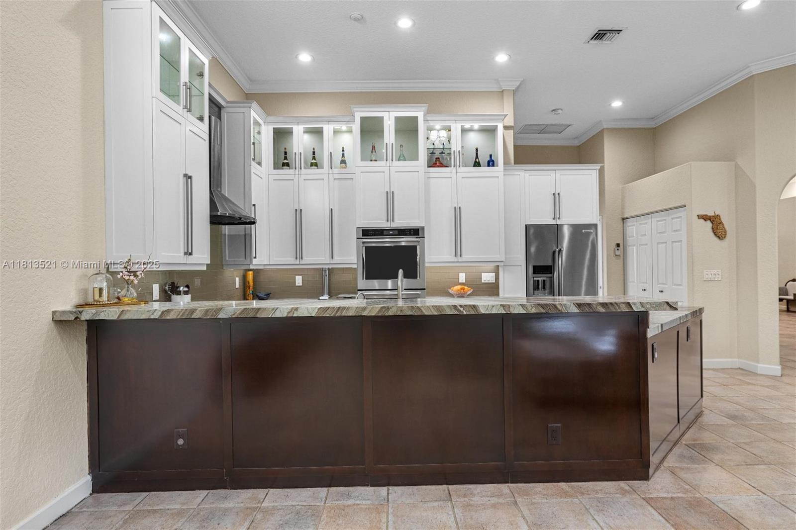 Welcome to this stunning 1-story home in one of Weston’s most desirable 24-hour gated communities- The Islands! Designed for both comfort and entertaining, this immaculate 5 bedroom 3 bathroom residence features soaring ceilings, natural light, and a beautifully remodeled chef’s kitchen with quartz countertops, double ovens, stainless steel appliances, roll-out cabinetry, and a walk-in pantry. Enjoy the open layout flowing into the dining and family rooms. Step outside to a private backyard oasis with a sparkling pool, new travertine deck and fully fenced. New roof, newer A/C, impact windows, and fresh paint make this home move-in ready. Conveniently located near top rated A+ schools, parks, shopping, dining and much more. A rare gem you will not want to miss!